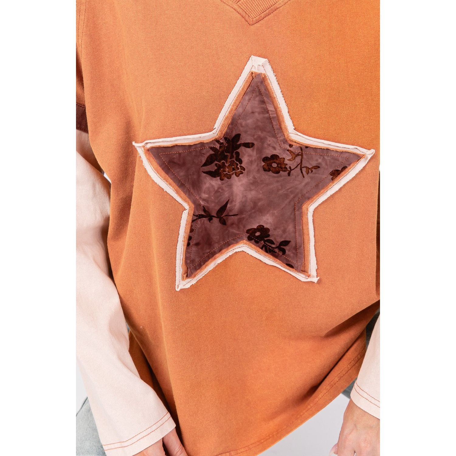 SAGE + FIG Star Patch Long Sleeve Color Block T-Shirt