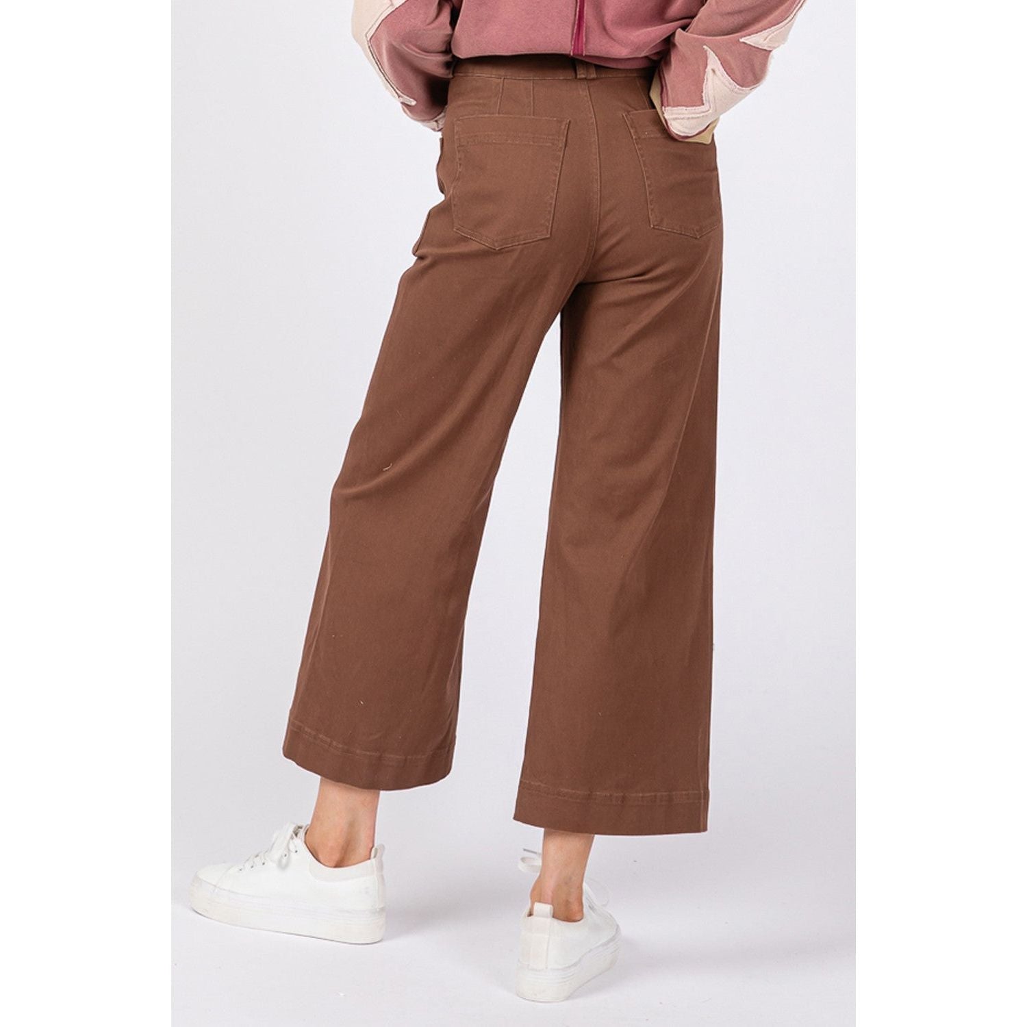 These wide-leg pants with front pockets are designed for both style and comfort. The super-soft feel fabrication ensures a luxurious touch against the skin. With 4 pockets, including front pockets for added convenience, these pants offer both functionality and style. The adjustable button closure allows for a customizable fit, while the wide-leg silhouette adds a modern and flattering look to your outfit. Perfect for a casual yet polished ensemble, these pants are versatile and on-trend for any occasion.
