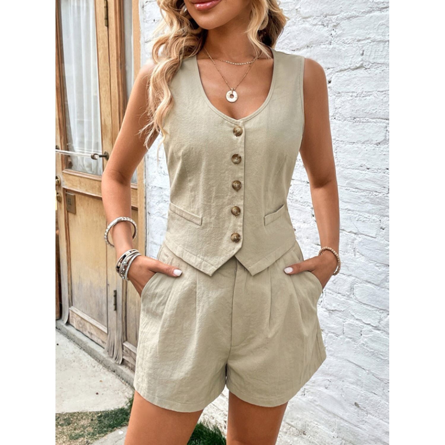 Scoop Neck Sleeveless Top and Shorts Set
