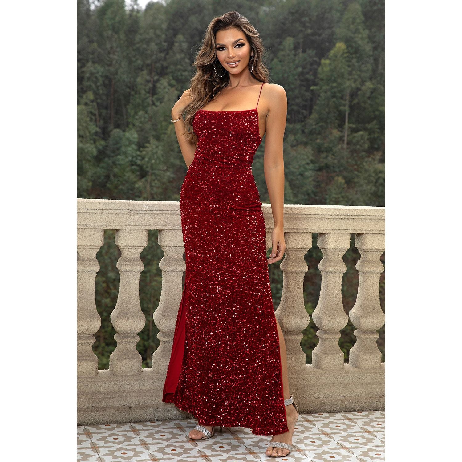 Sequin Backless Split Maxi Dress