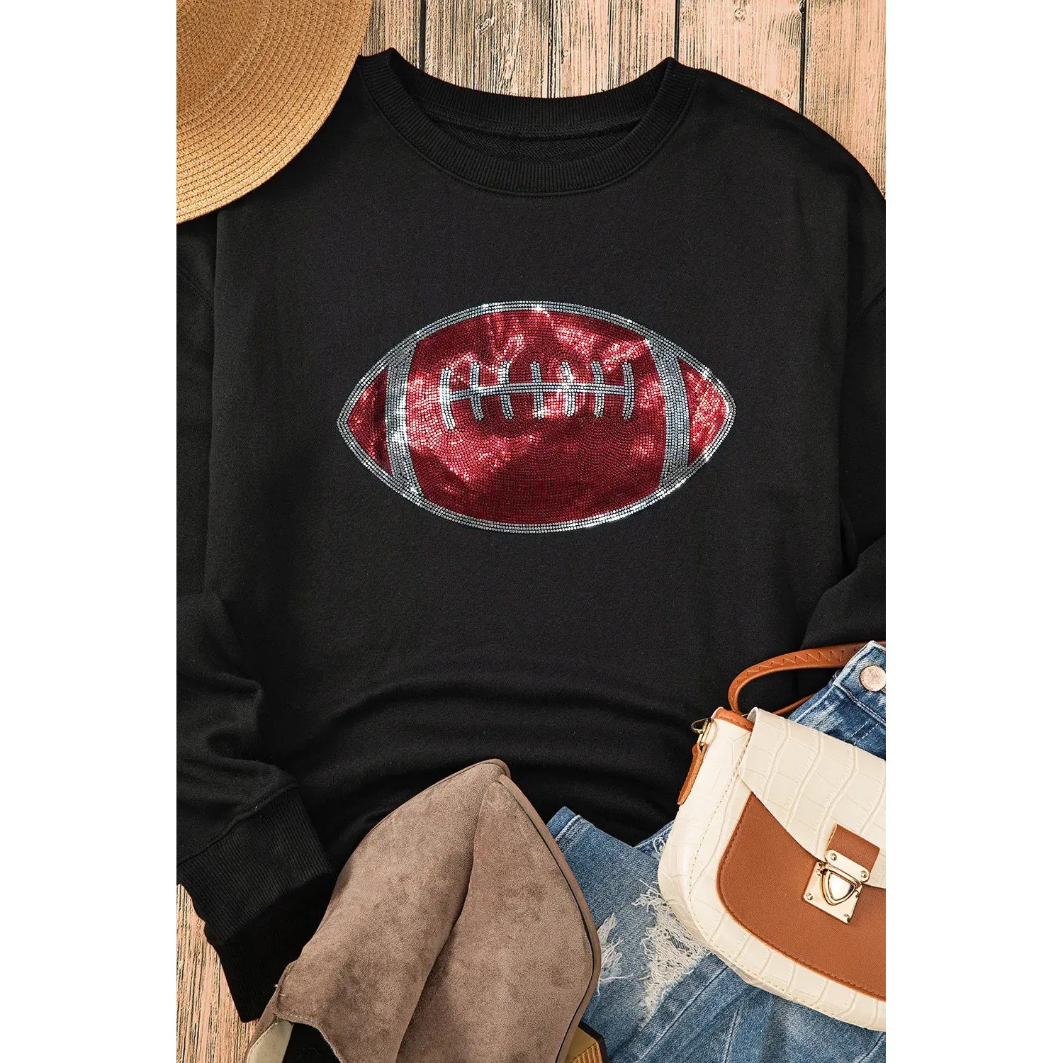 Sequin Football Long Sleeve Sweatshirt