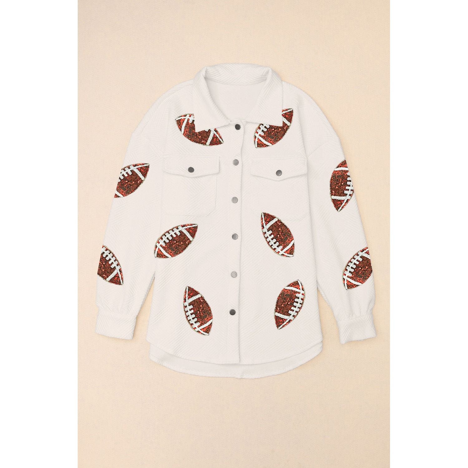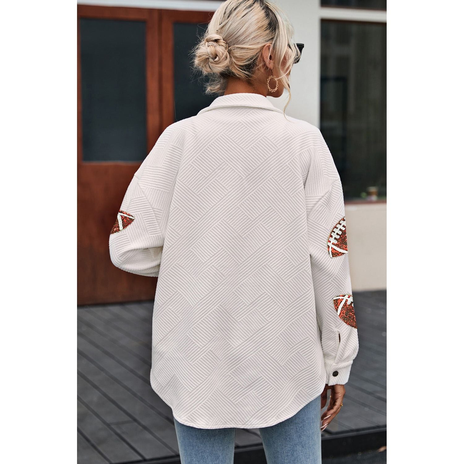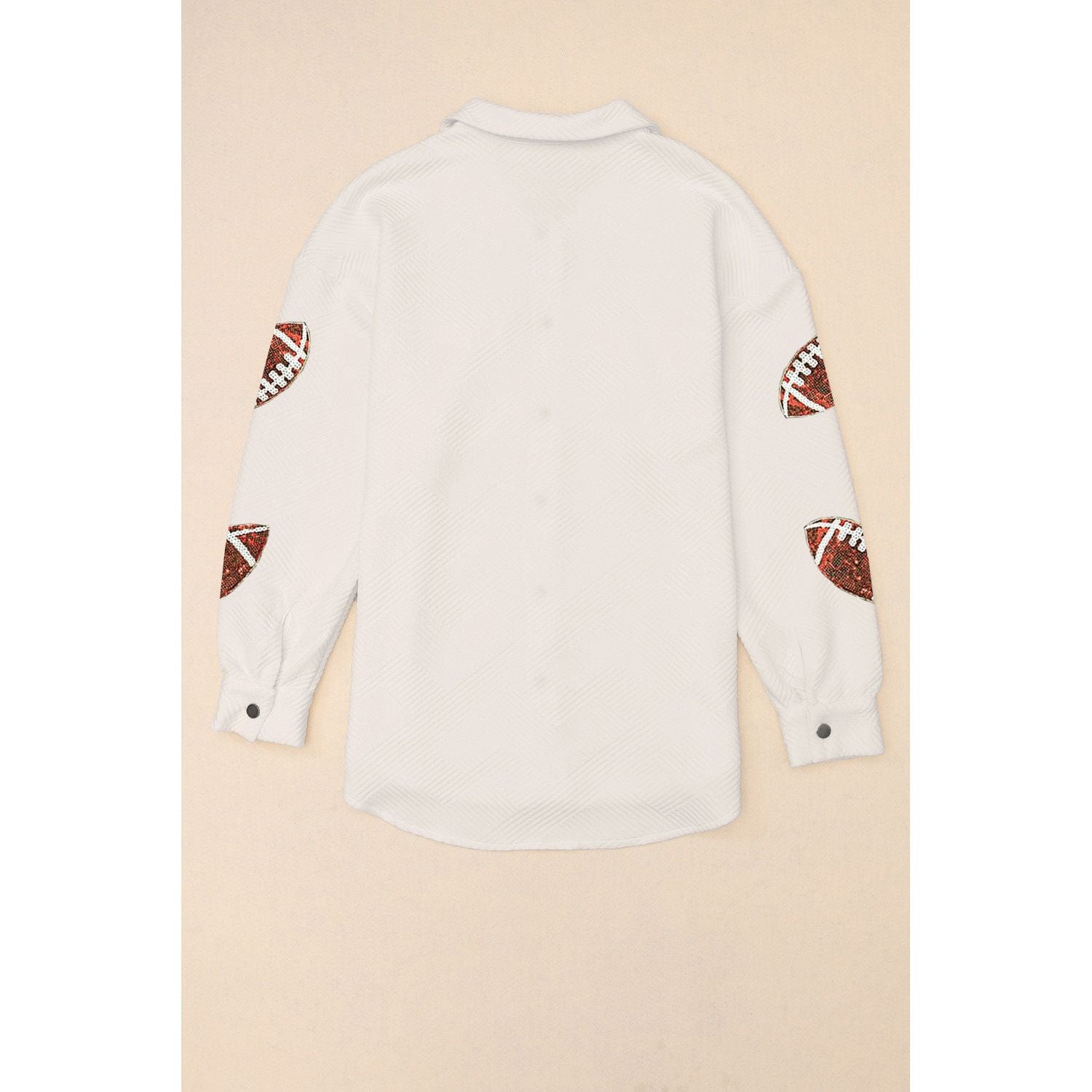 Sequin Football Patch Collared Neck Snap Button Jacket