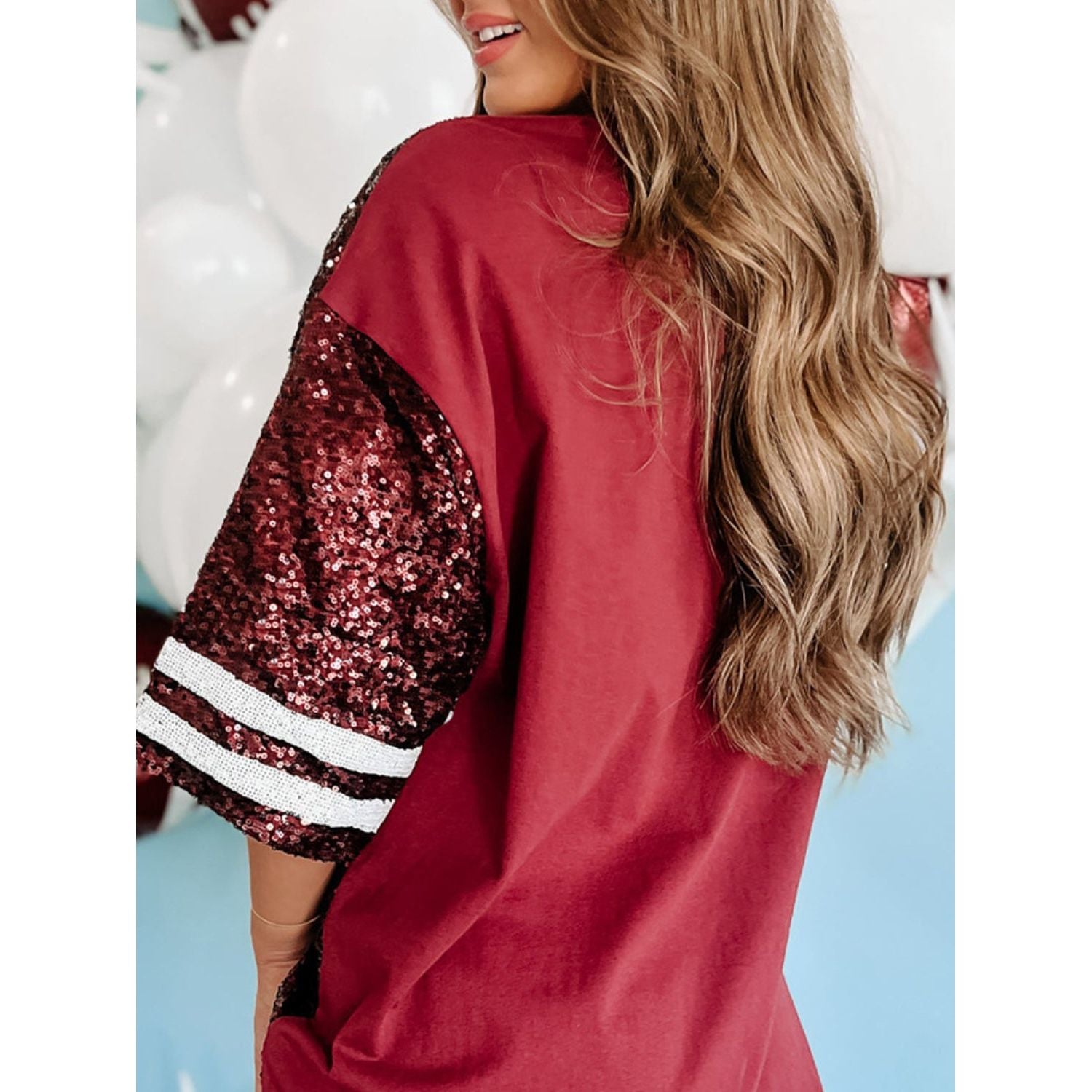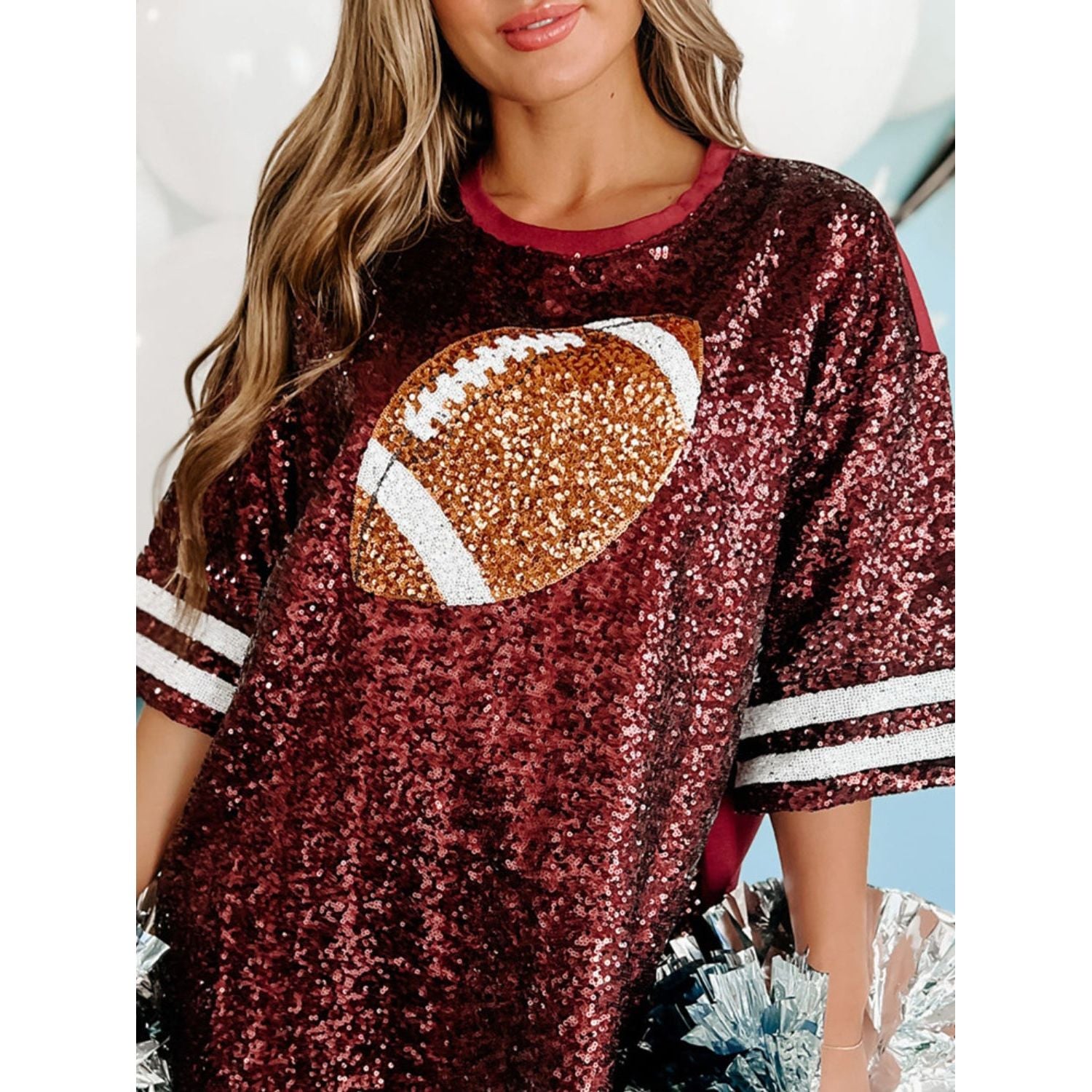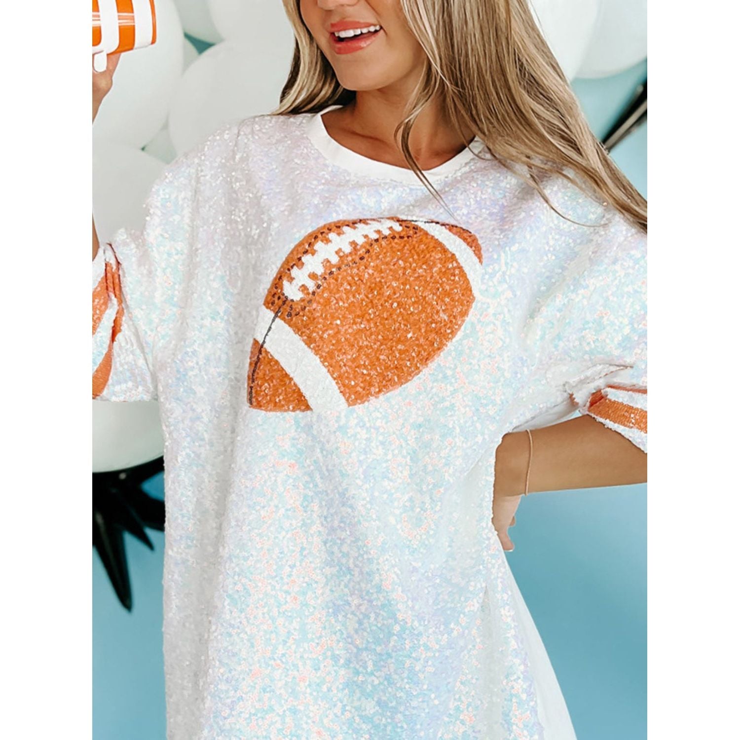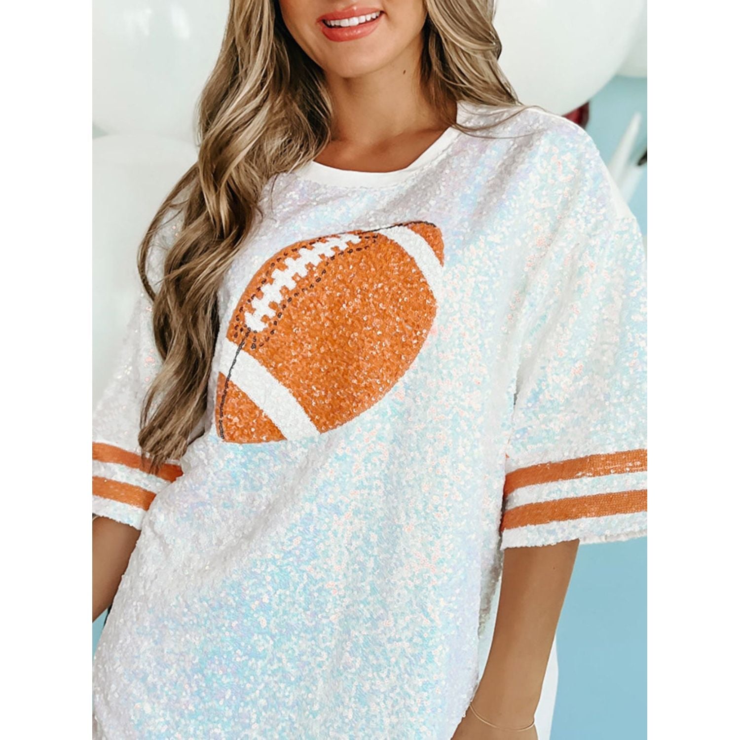 Sequin Football Round Neck Half Sleeve Oversize Top