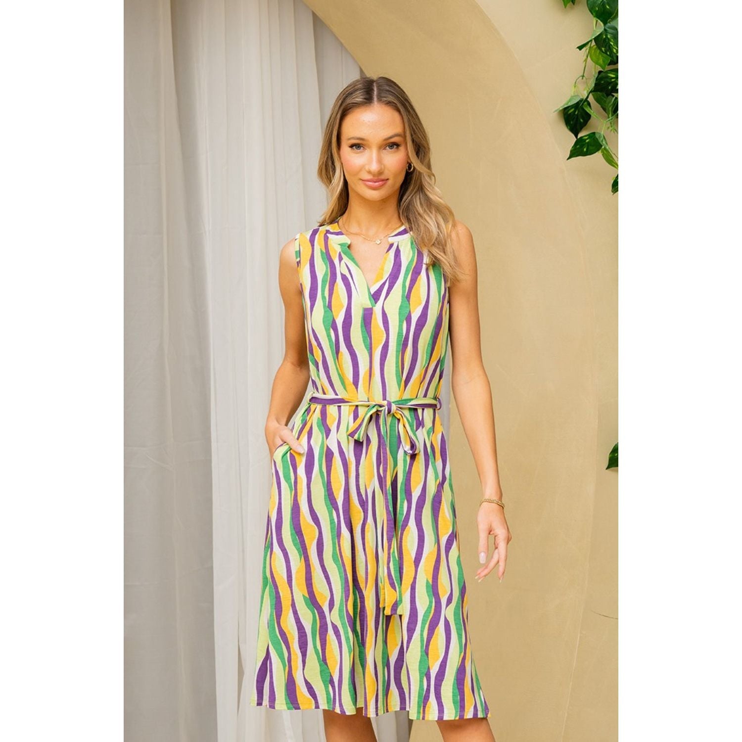 The Stripe Tied Sleeveless Dress with Side Pockets is a versatile and stylish addition to your wardrobe. The striped pattern gives a classic and timeless look to the dress. The tied sleeves add a fun and trendy detail to the design. With side pockets for convenience, this dress is both fashionable and functional. Dress it up with heels for a night out or keep it casual with sneakers for a day of running errands. Stay comfortable and chic in this sleeveless dress that is perfect for any occasion.