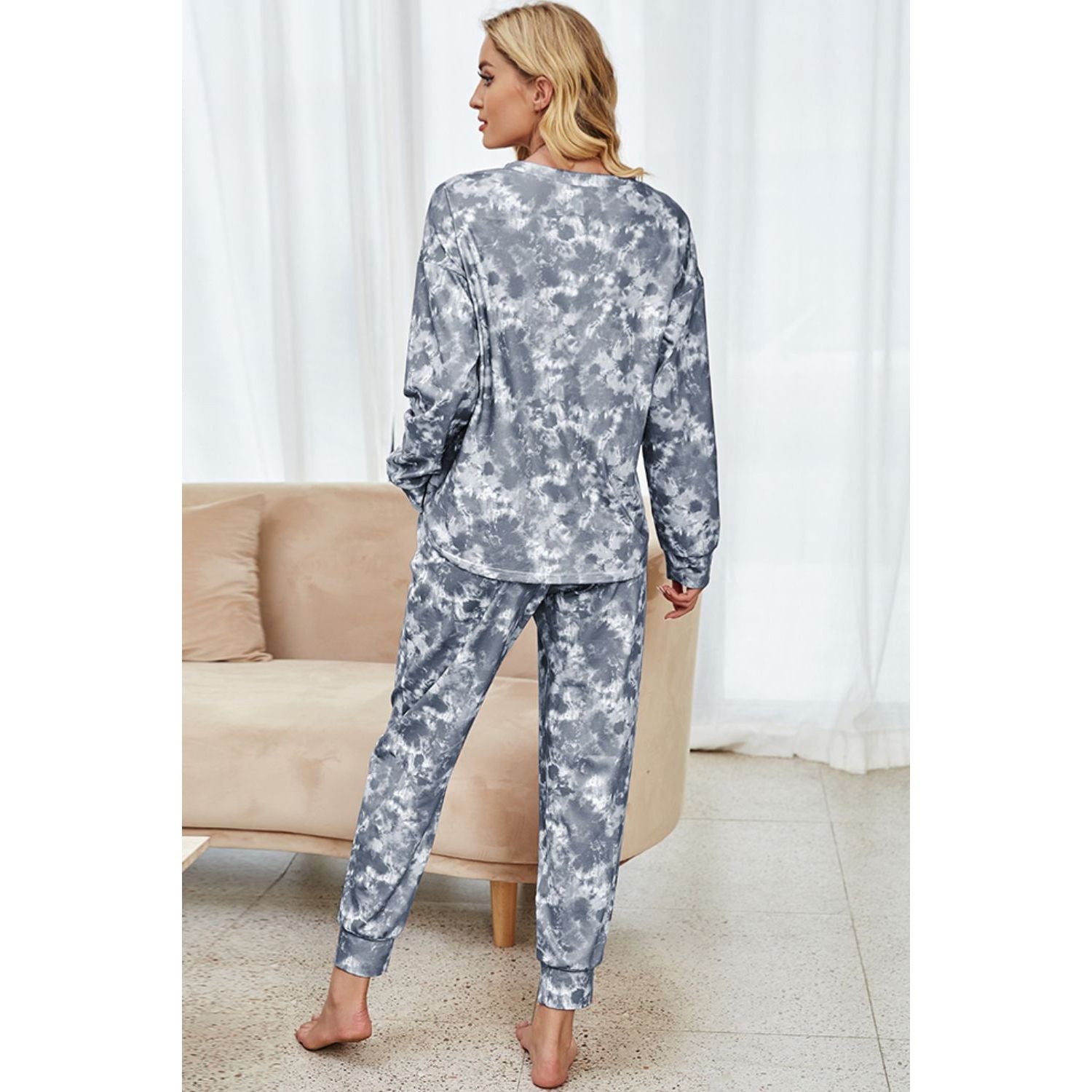 Shiny Tie-Dye Long Sleeve Top and Drawstring Joggers Lounge Set