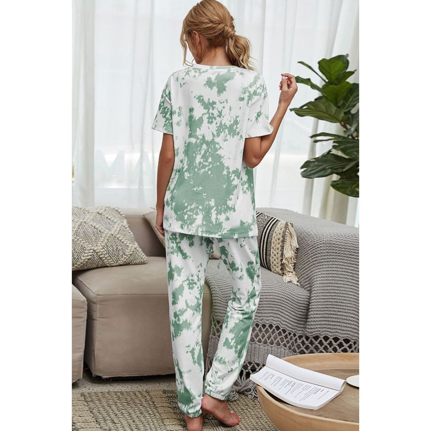 Shiny Tie-Dye Tee and Drawstring Waist Joggers Lounge Set