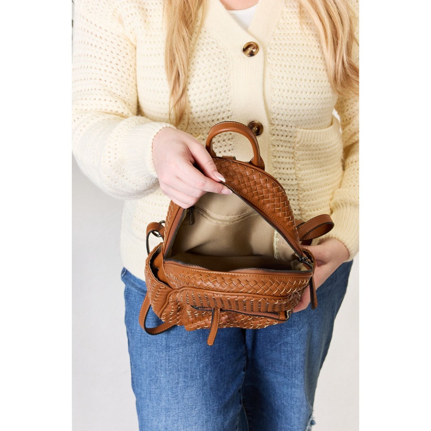 This backpack boasts a mesmerizing woven design that exudes sophistication and style. Its intricate pattern showcases fine craftsmanship, offering a unique and eye-catching appeal.