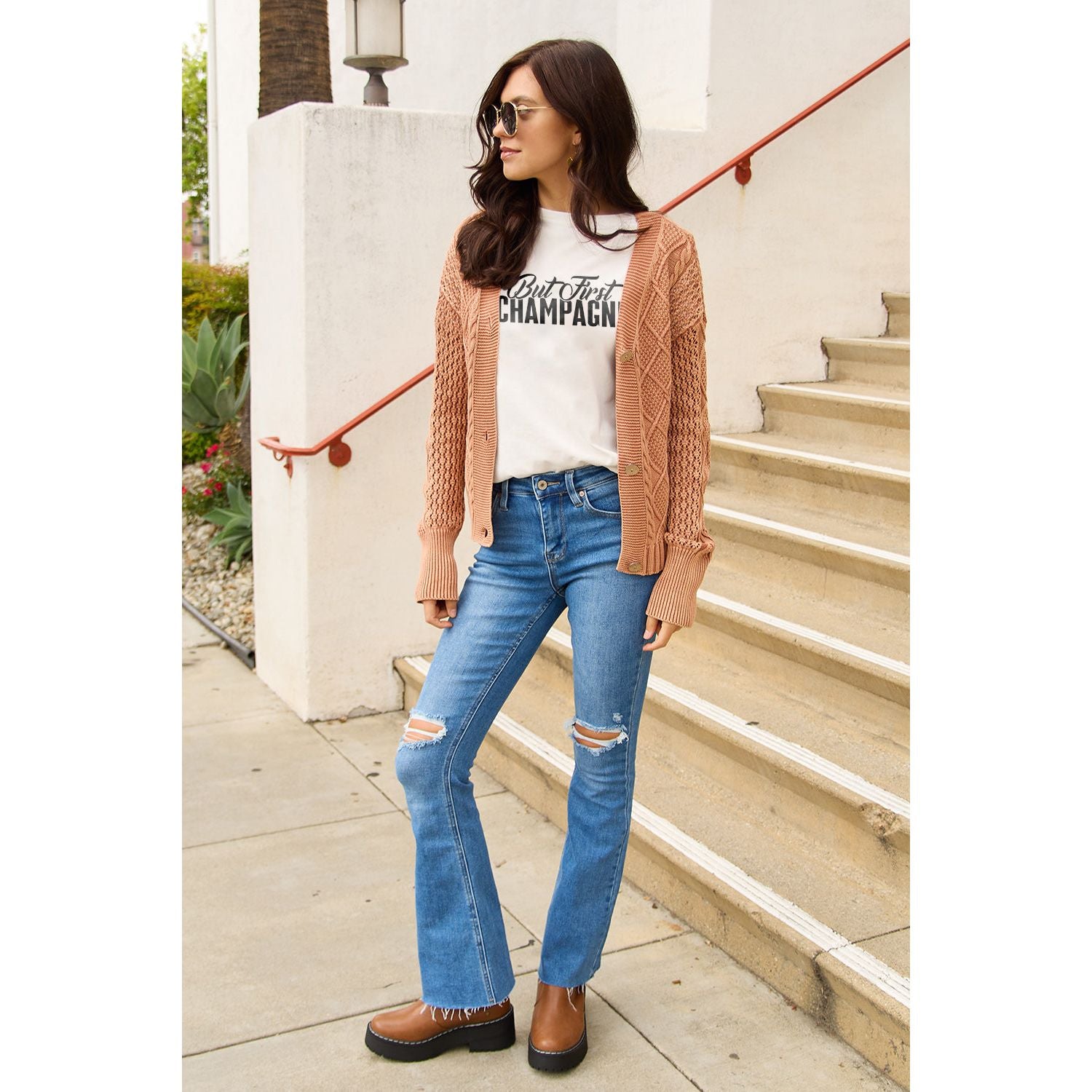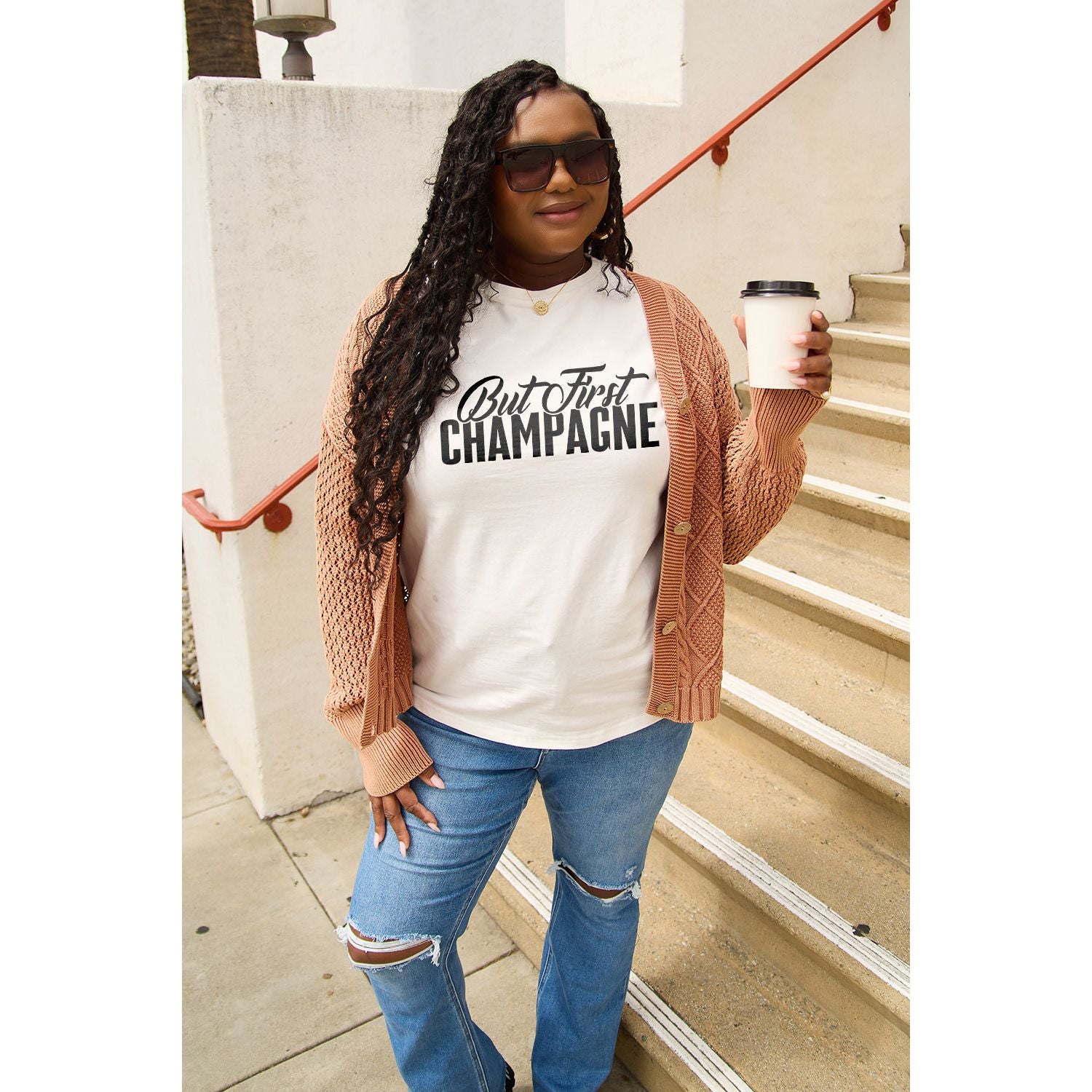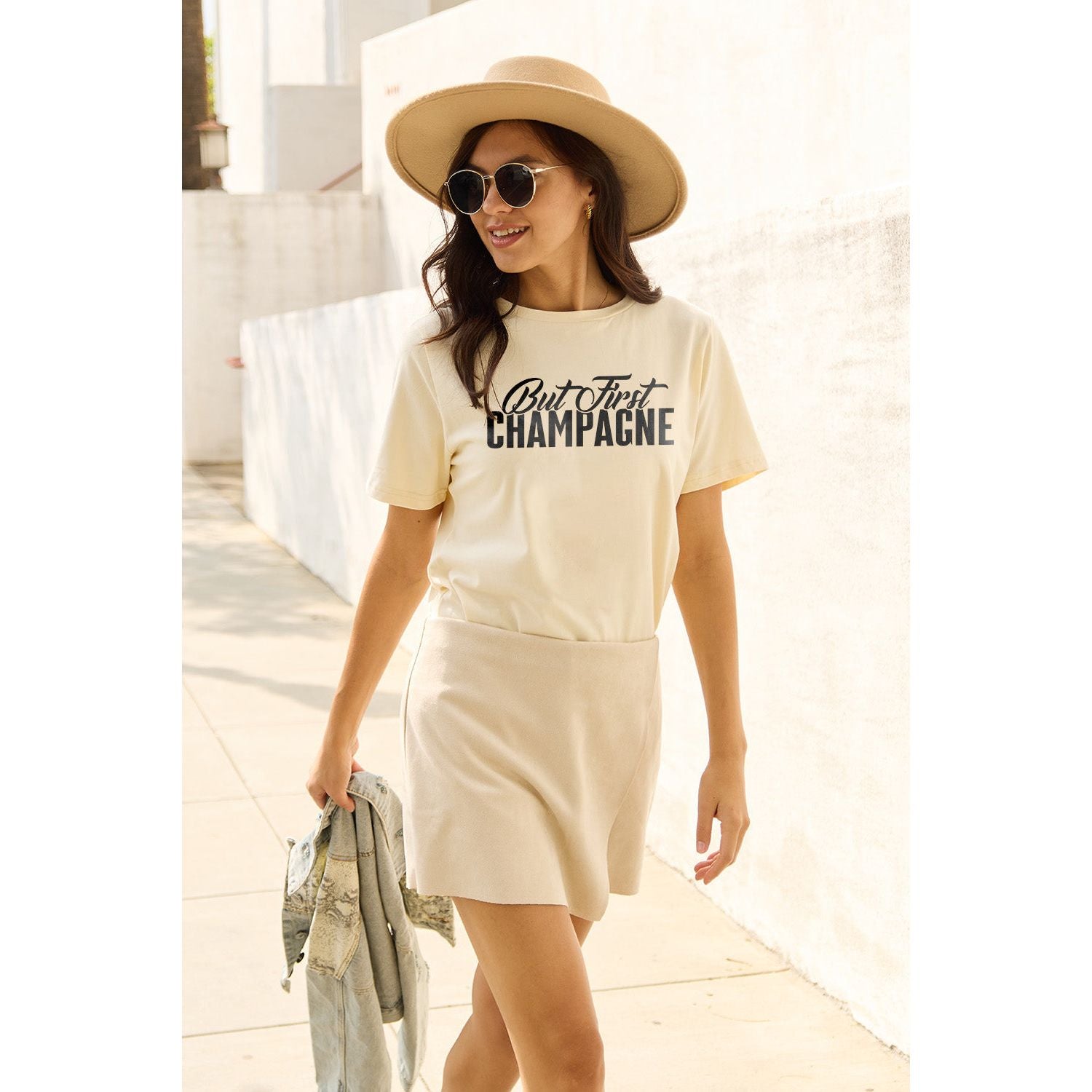 Simply Love Full Size BUT FIRST CHAMPAGNE Round Neck T-Shirt