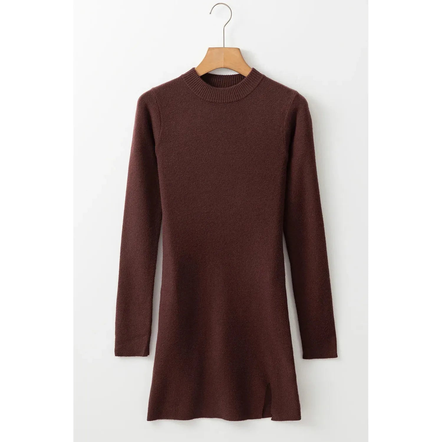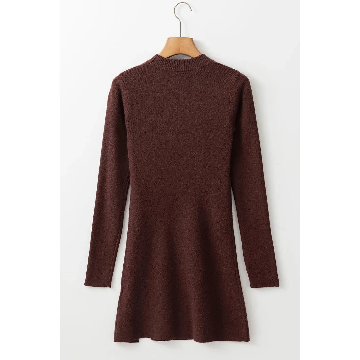 Slit Mock Neck Long Sleeve Wrap Sweater Dress