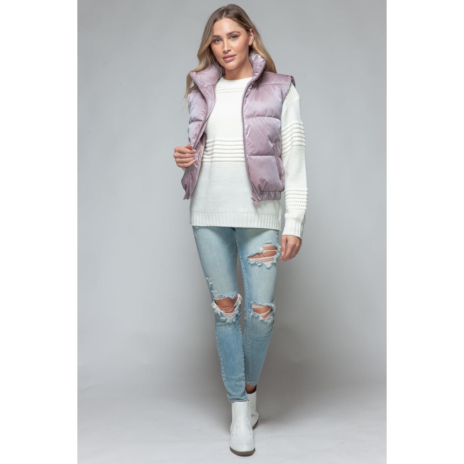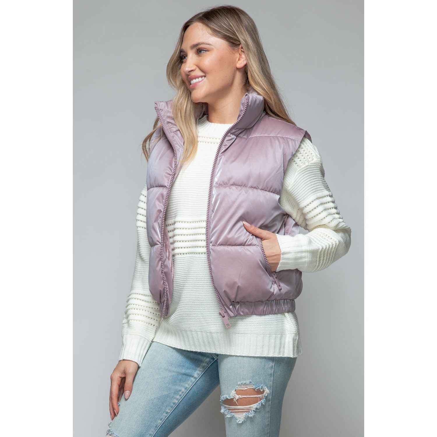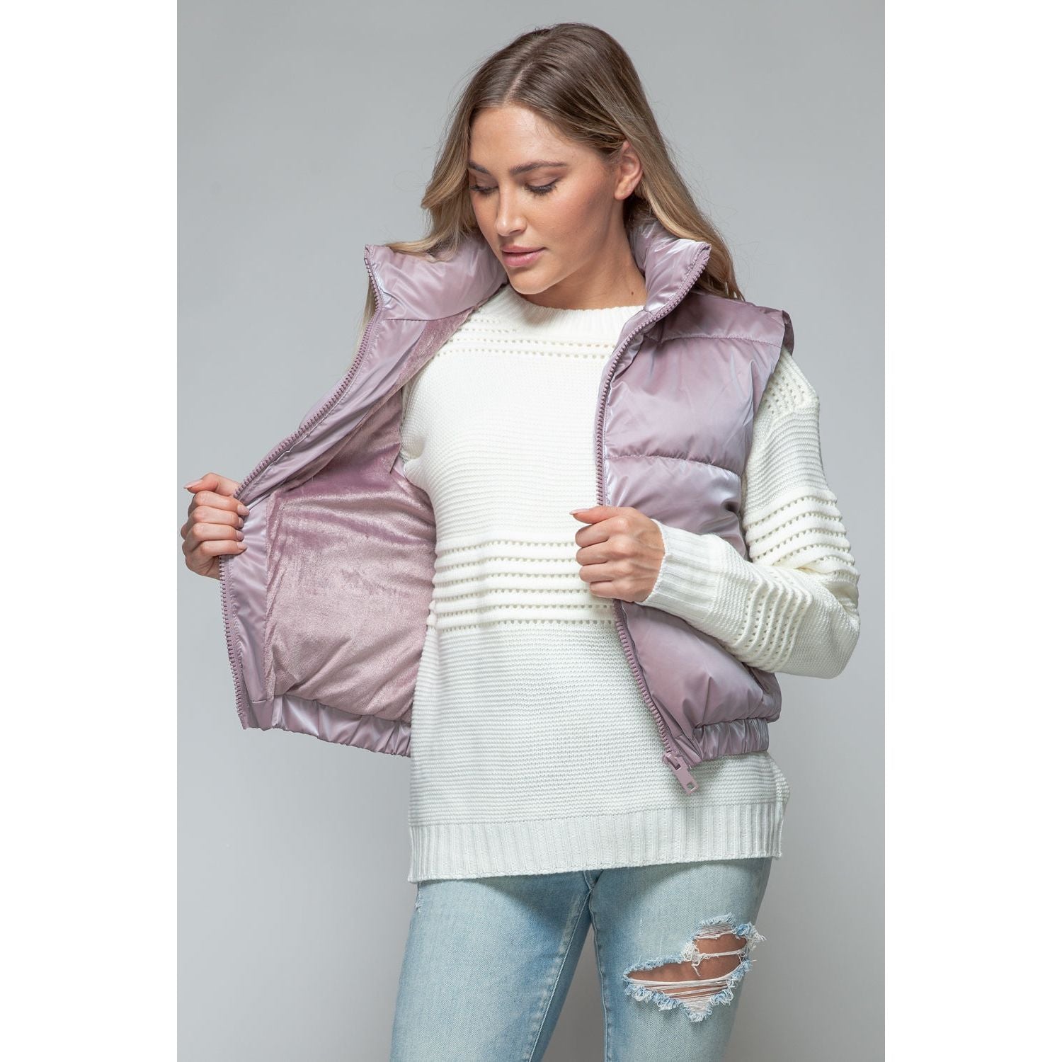 The fine fur lining quilted vest is a stylish and cozy outerwear option for cooler weather. The quilted design adds a touch of texture, while the fur lining provides extra warmth and comfort. Perfect for layering over your favorite outfits for a trendy and functional look.