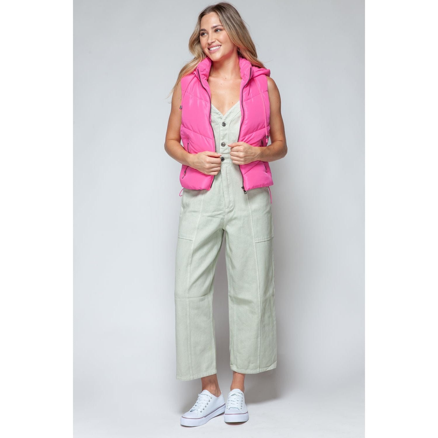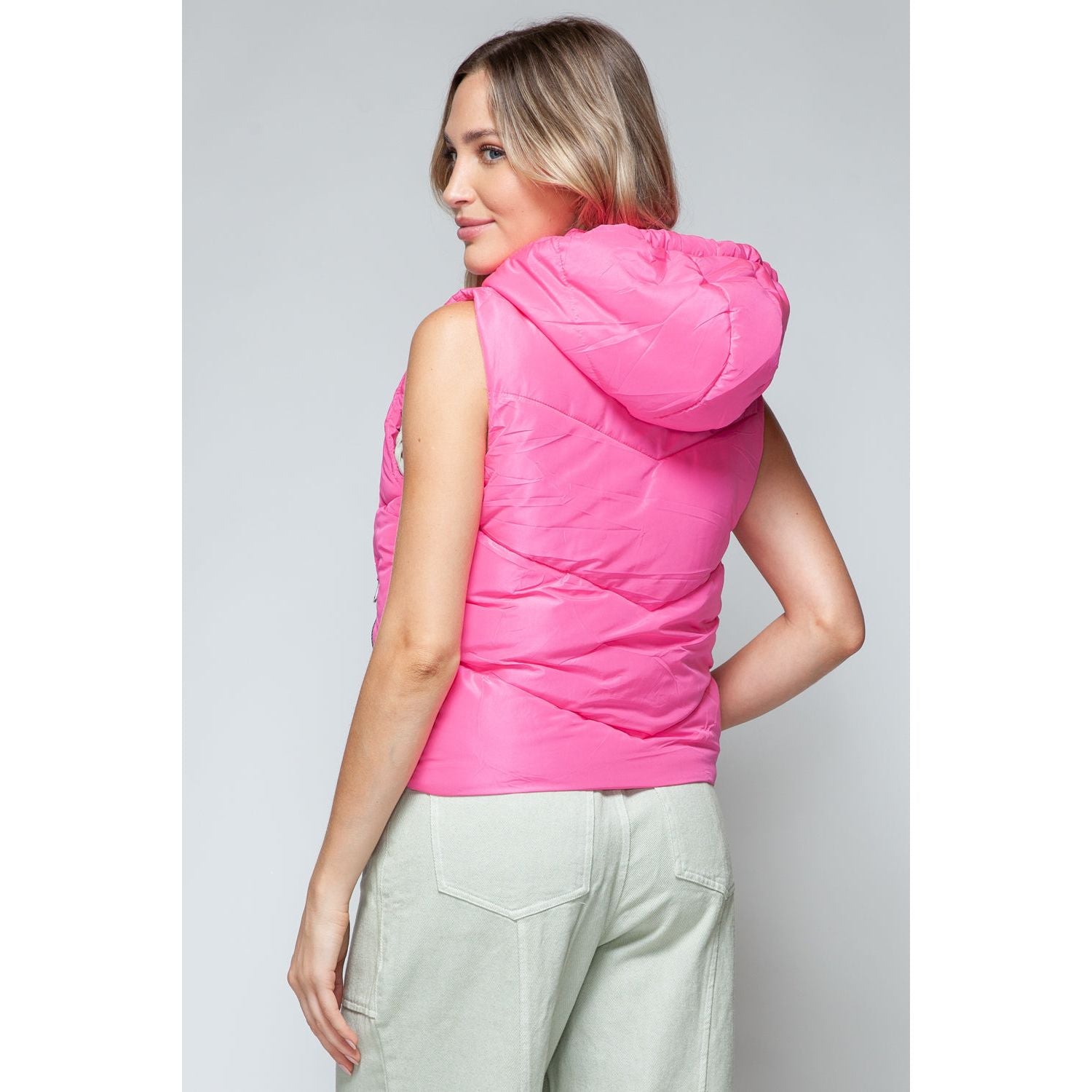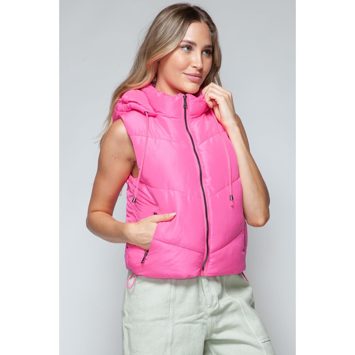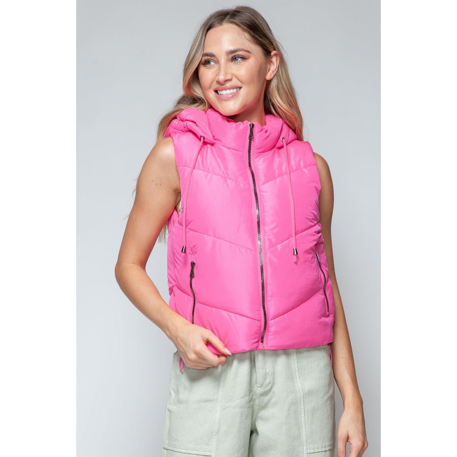 Step up your outerwear game with this zip-up quilted hooded vest. The quilted detailing adds a touch of texture and style to your look while keeping you warm and cozy. The hood provides extra coverage and protection against the cold wind. This versatile vest is perfect for layering over your favorite tops for a trendy and practical outfit. The zip-up feature ensures easy wear and allows you to adjust your comfort level. Whether you're heading out for a casual day or a brisk outdoor adventure, this quilted hooded vest is a must-have addition to your wardrobe.