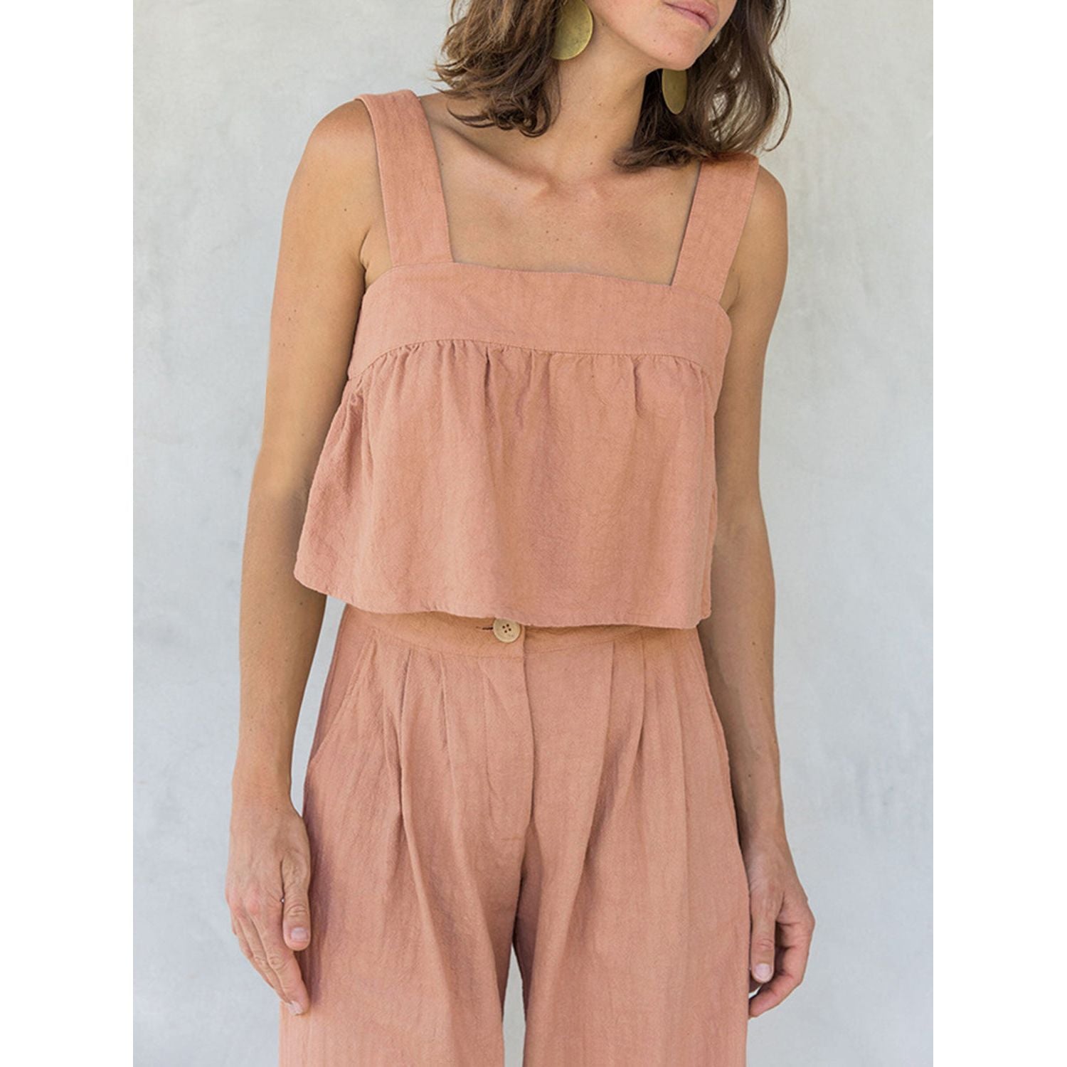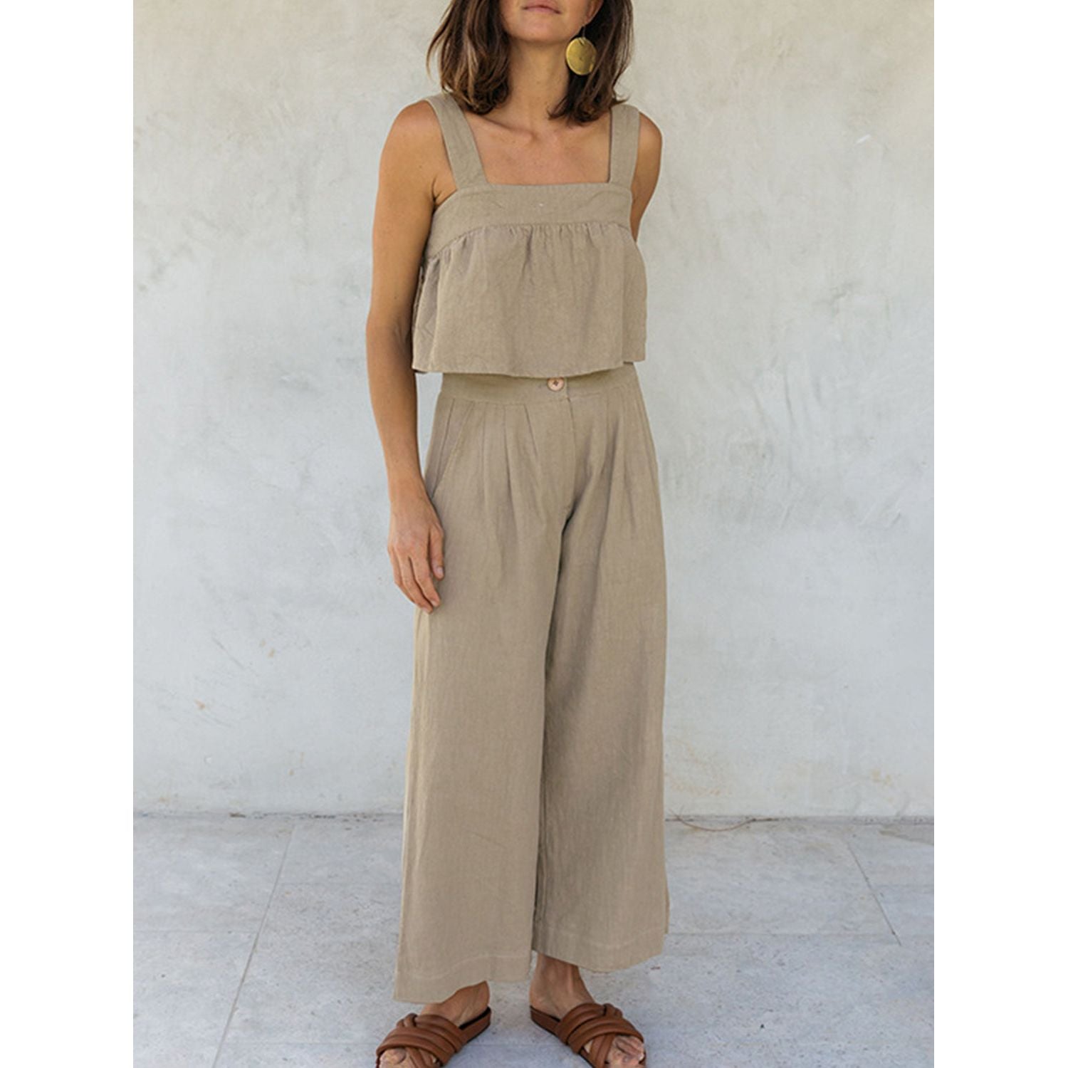 Square Neck Wide Strap Top and Pants Set