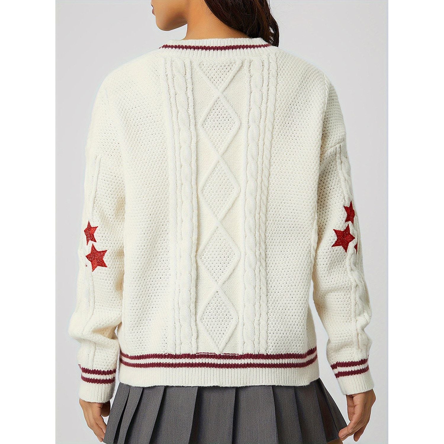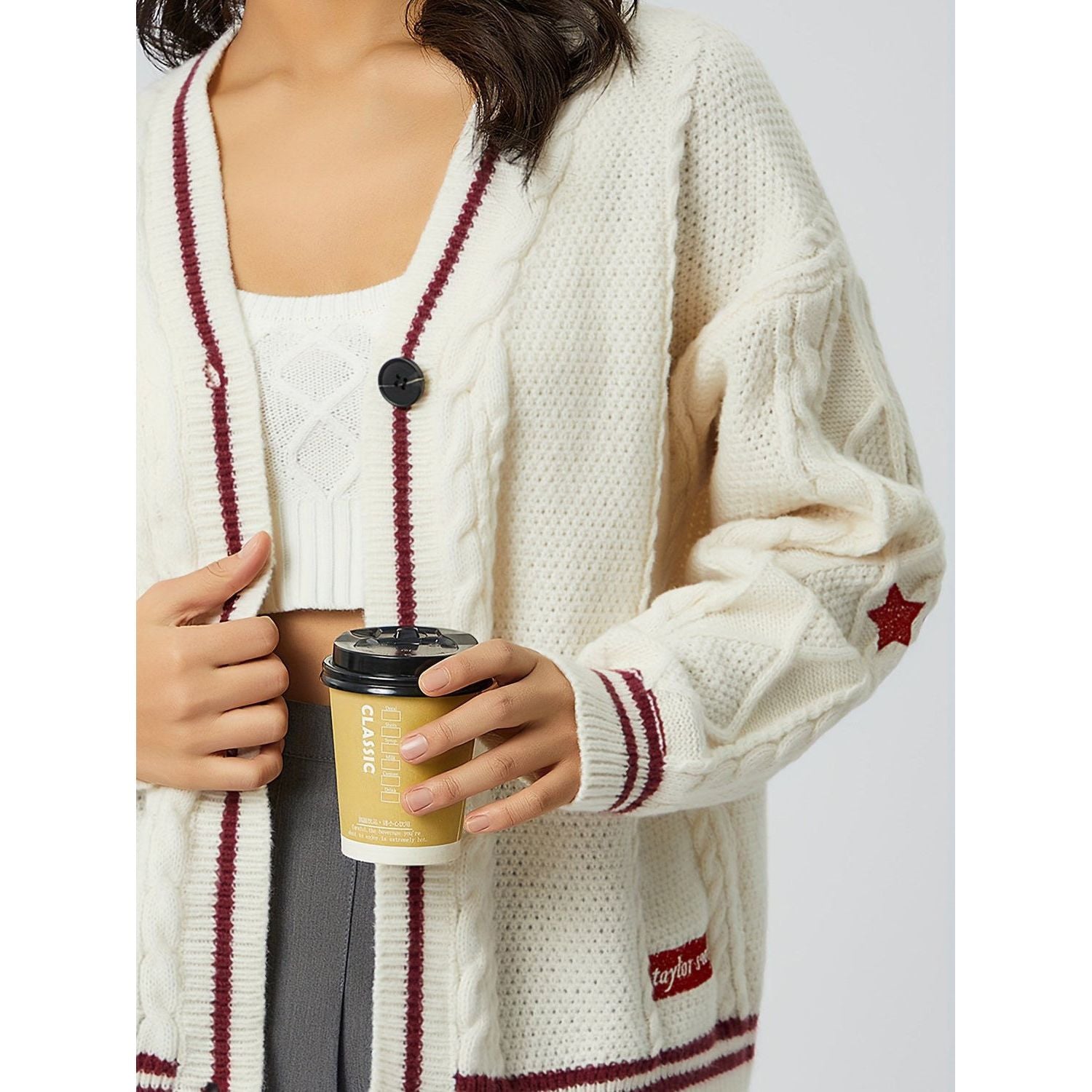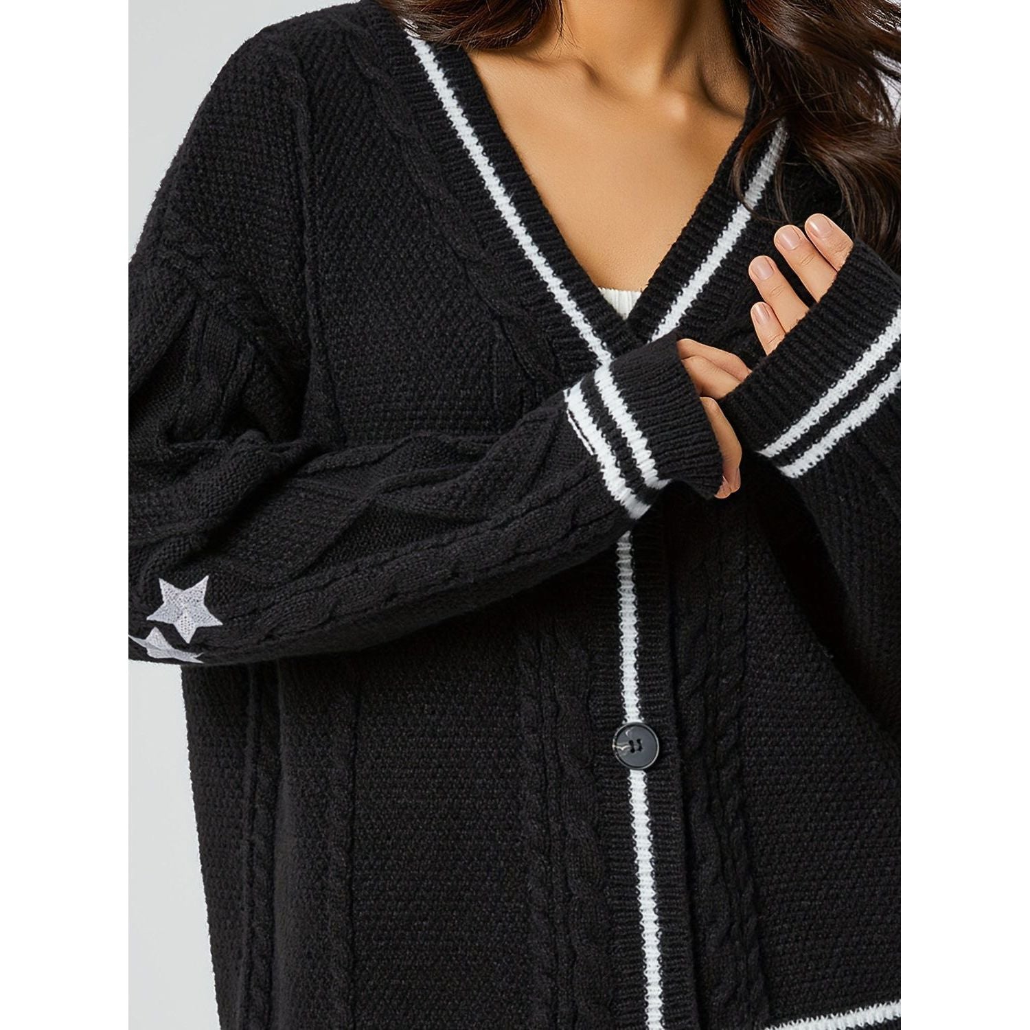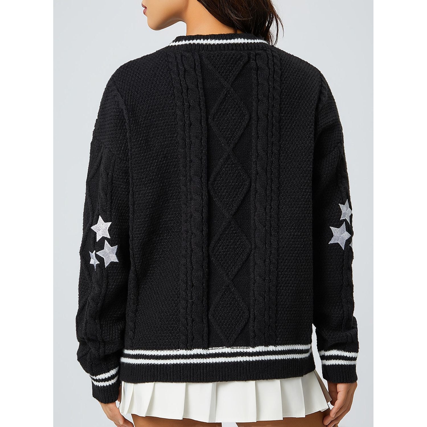 Star Embroidered V-Neck Long Sleeve Cardigan