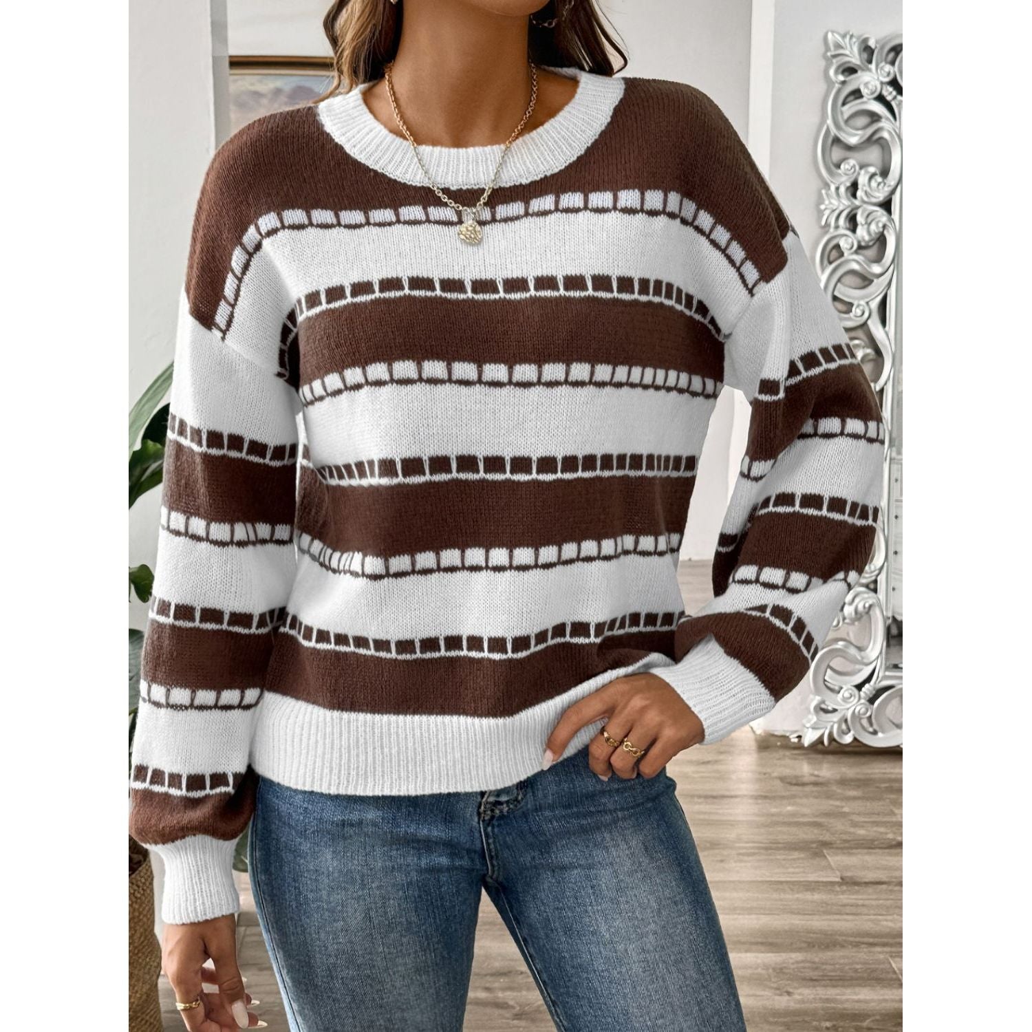 Striped Round Neck Long Sleeve Sweater