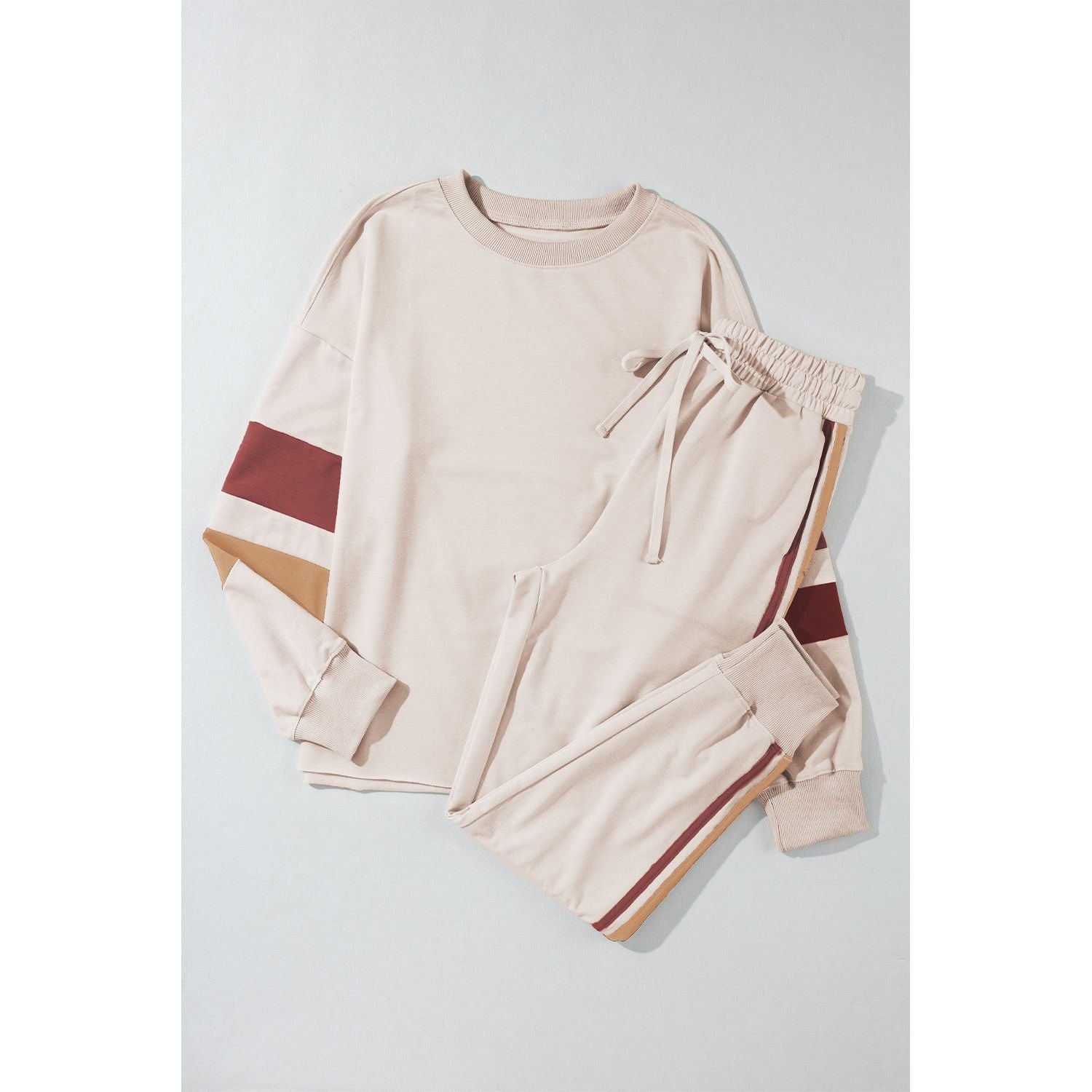 Striped Round Neck Sweatshirt and Drawstring Joggers Set