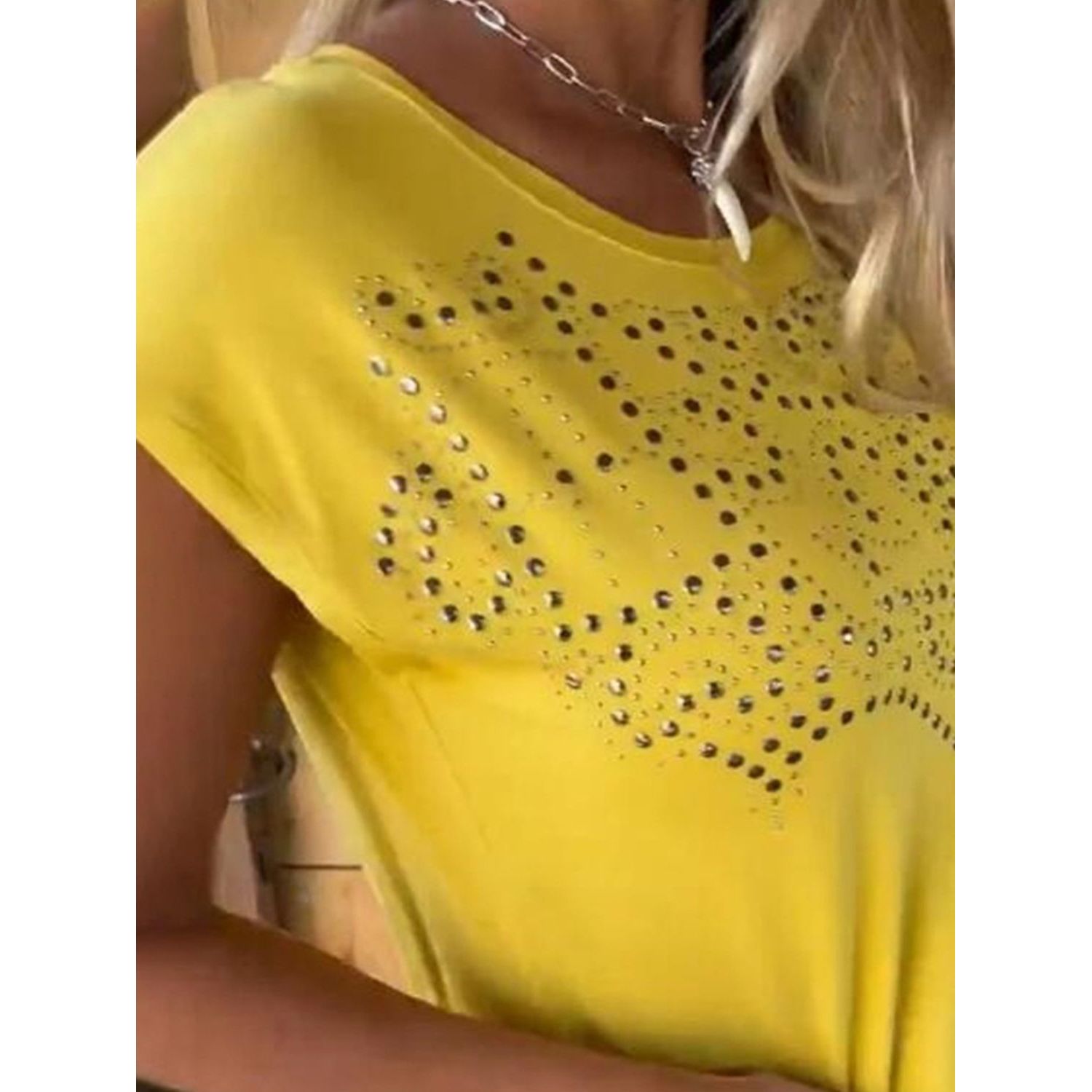 Studded Fringe Round Neck Cap Sleeve T-Shirt