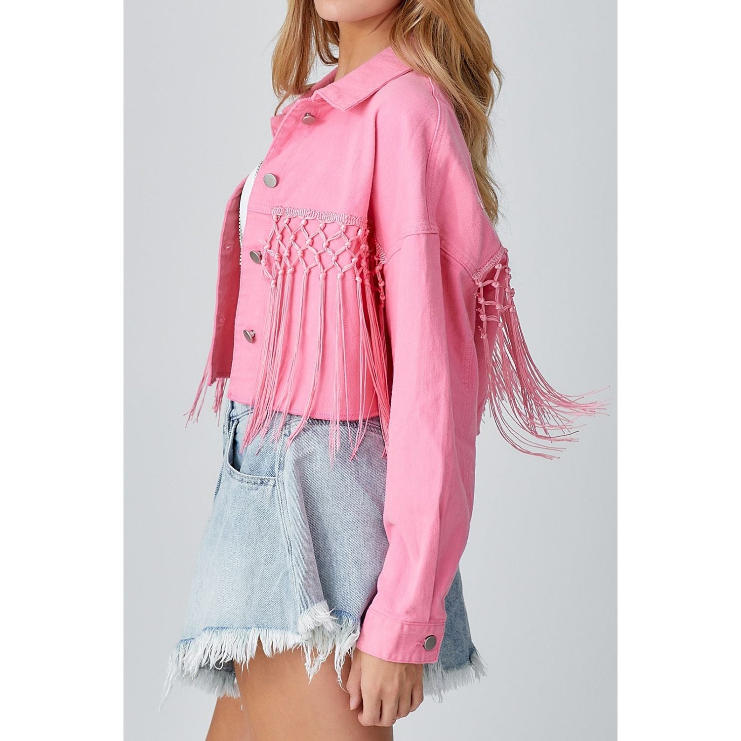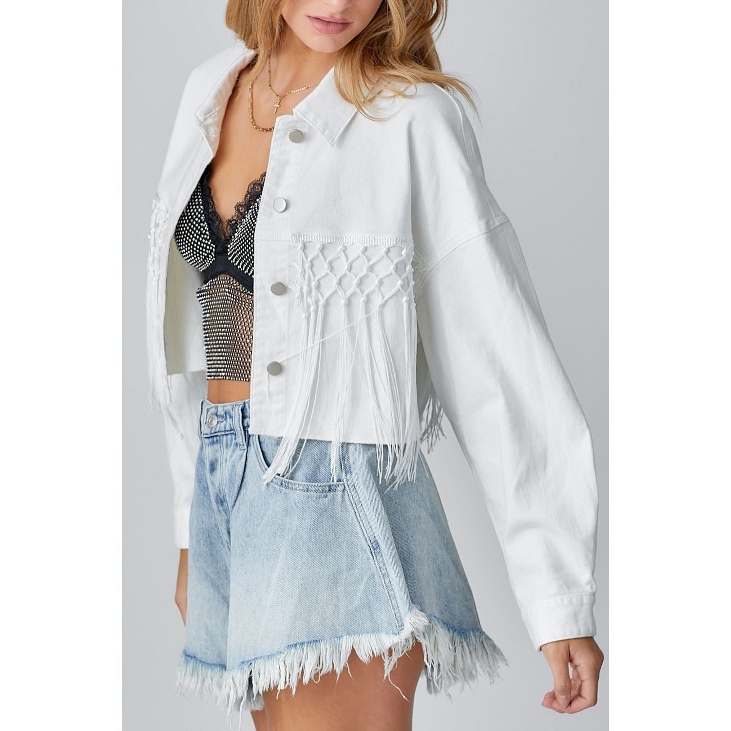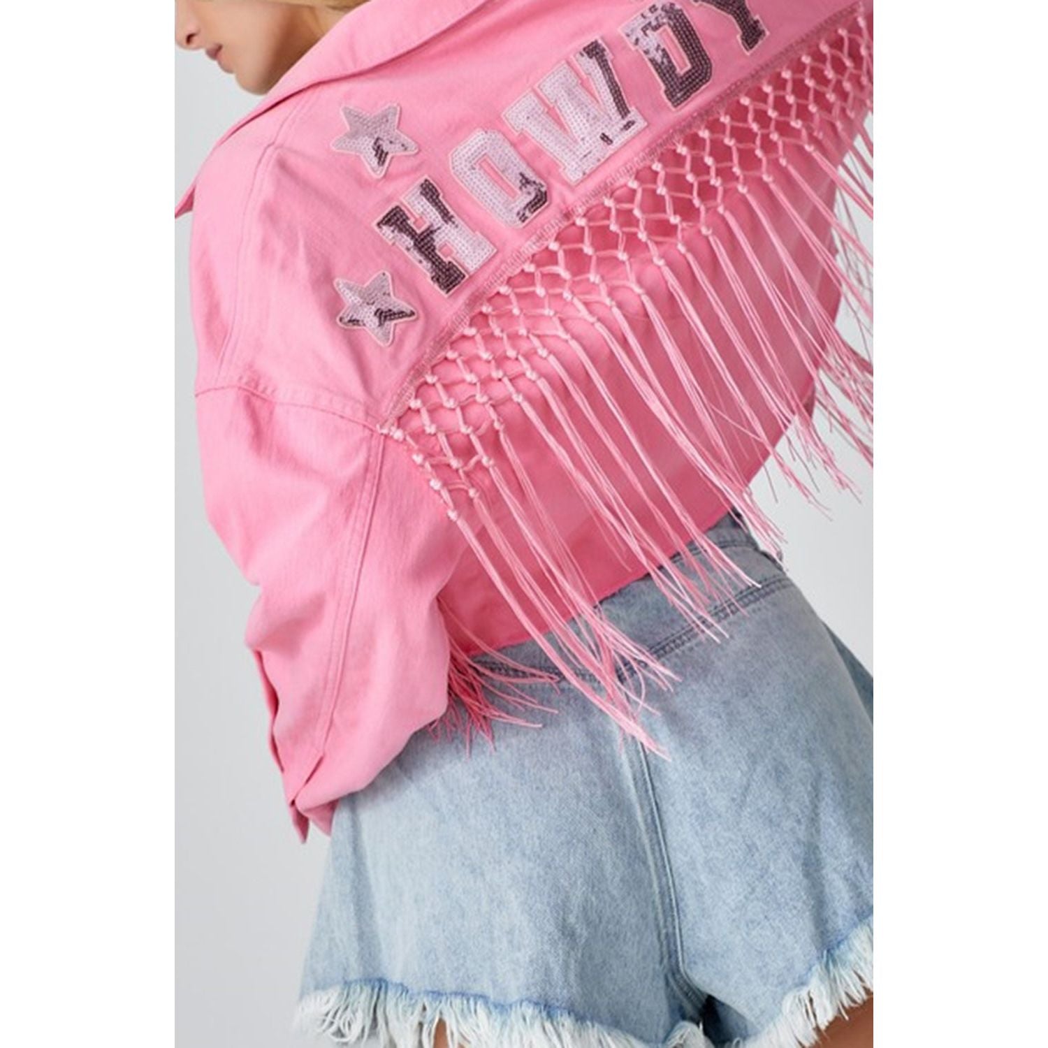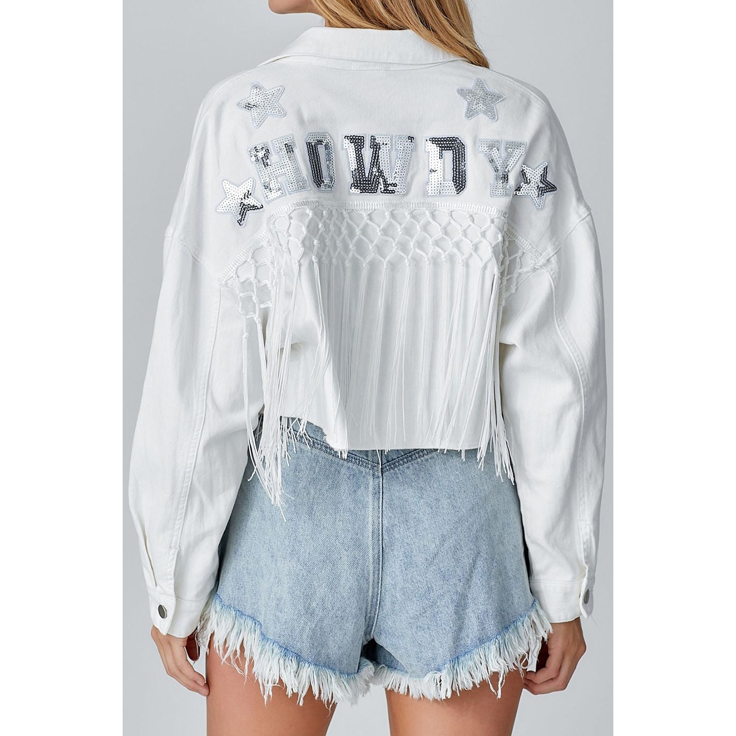 Tassel Sequin Letter Long Sleeve Denim Jacket
