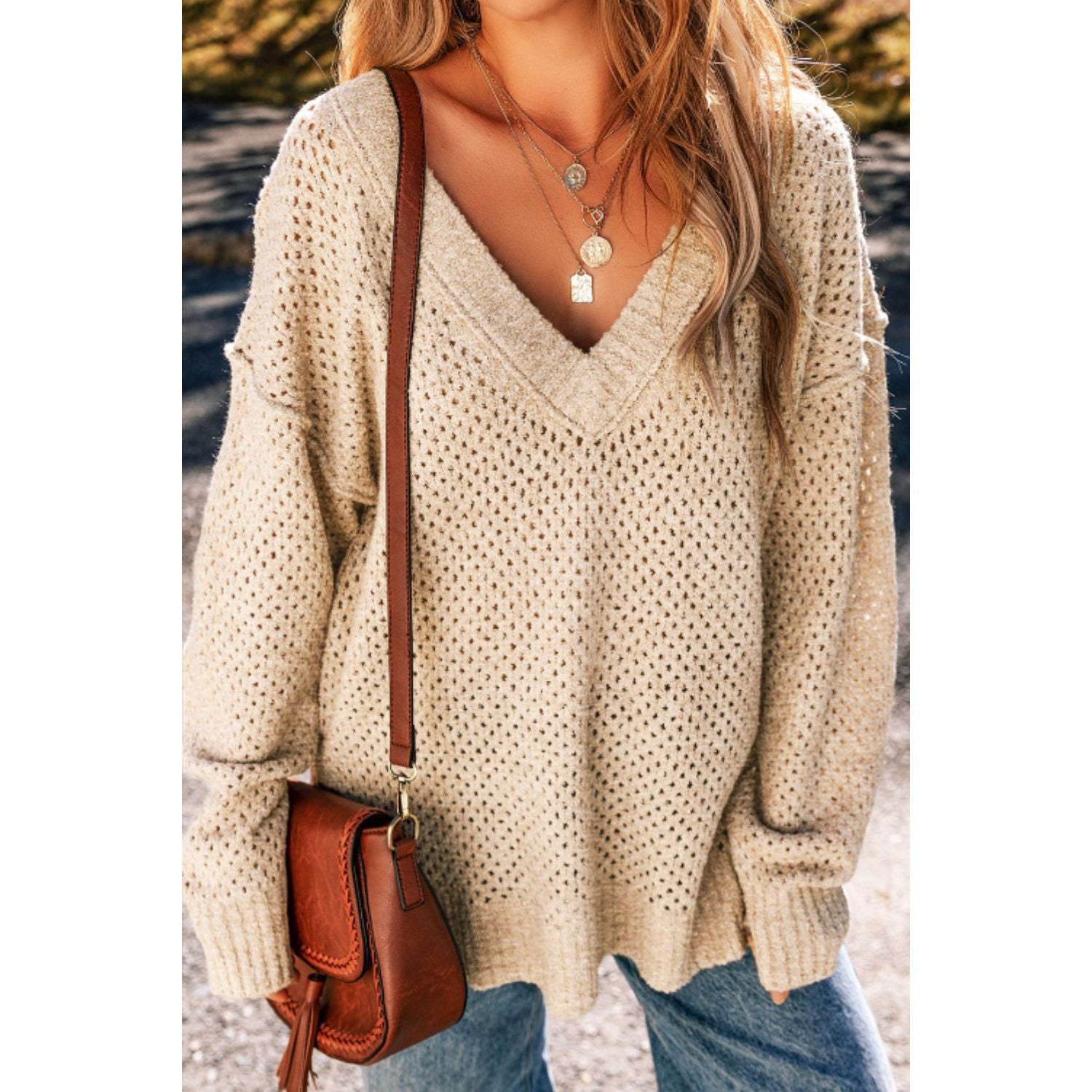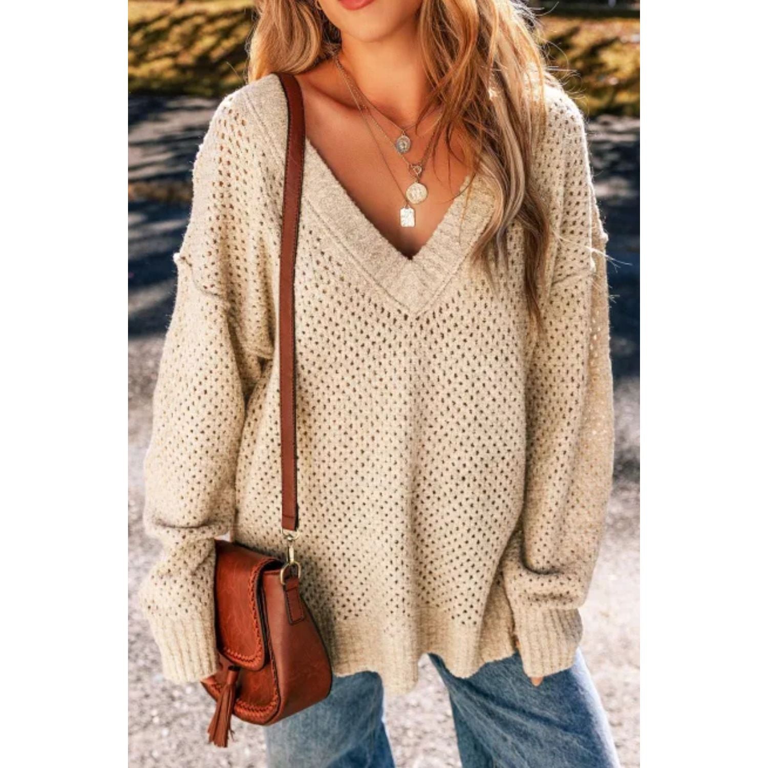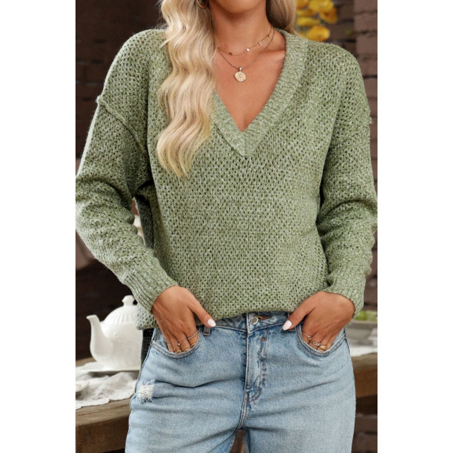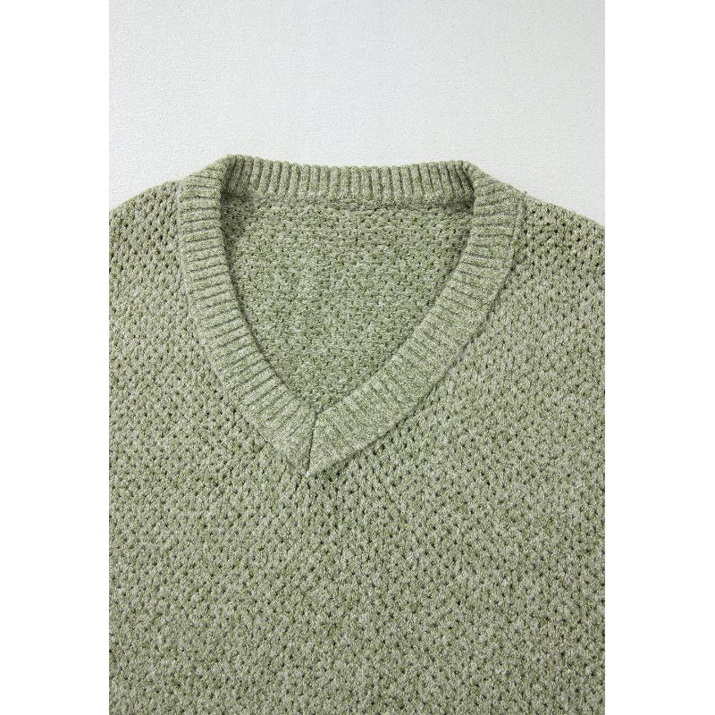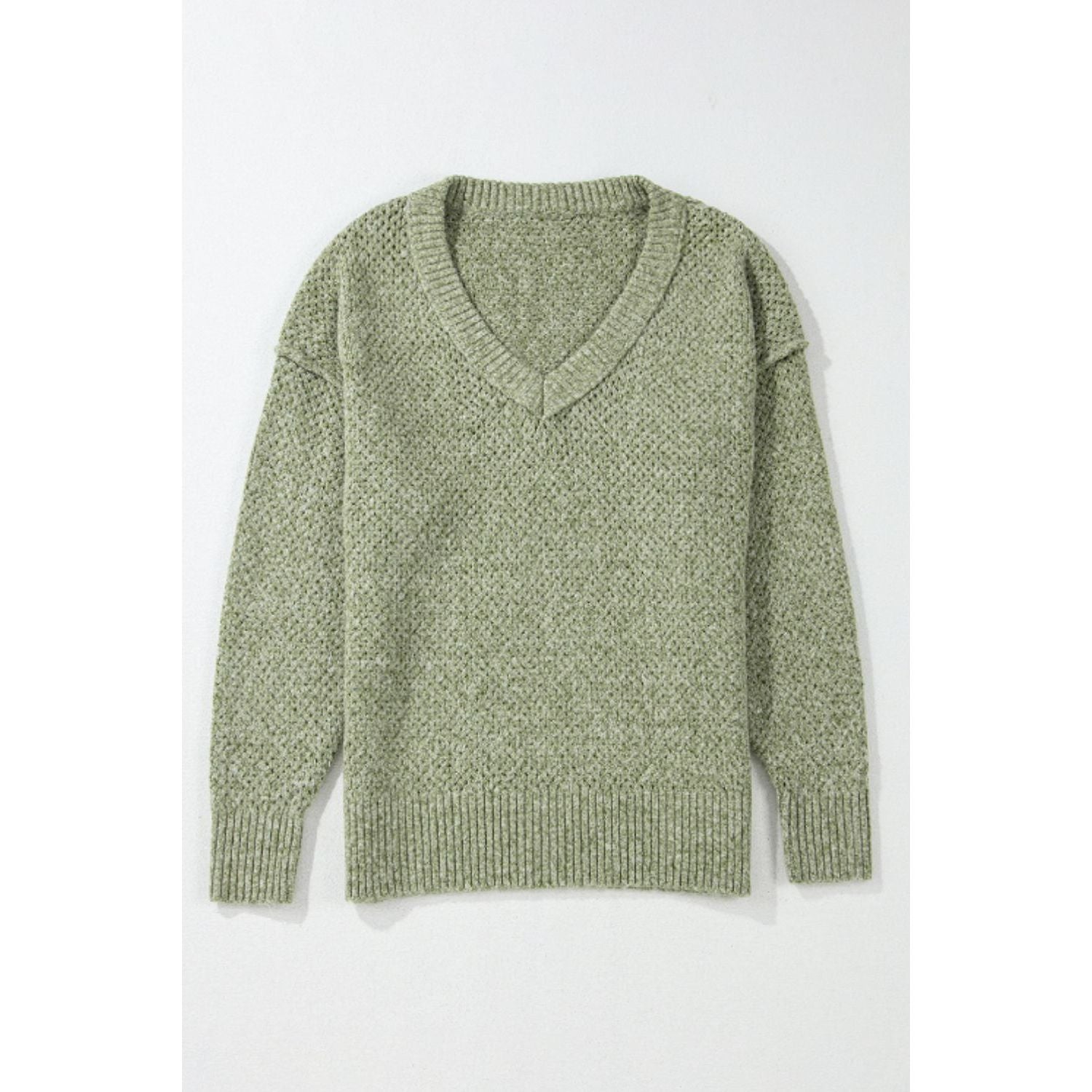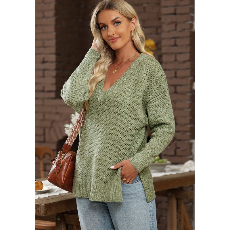 V-Neck Dropped Shoulder Long Sleeve Sweater