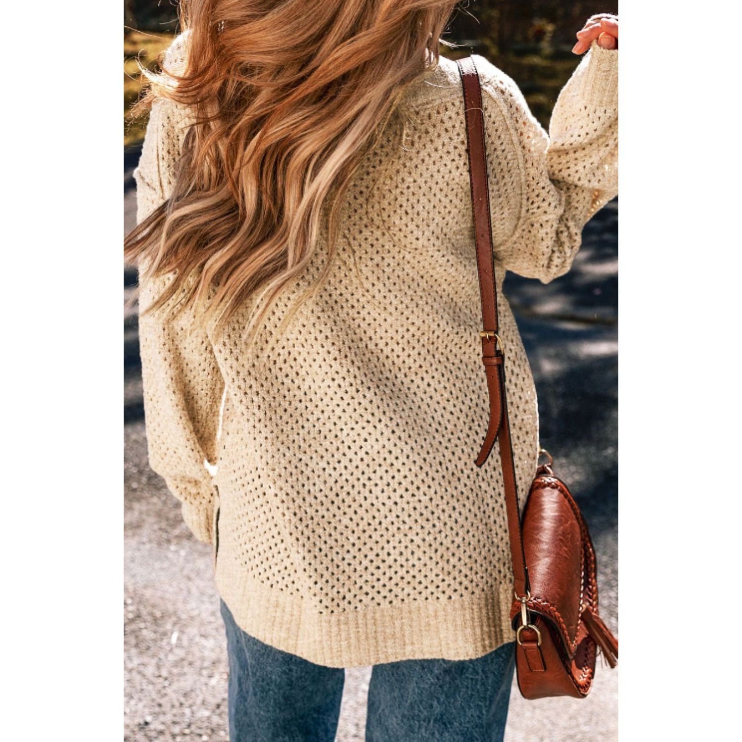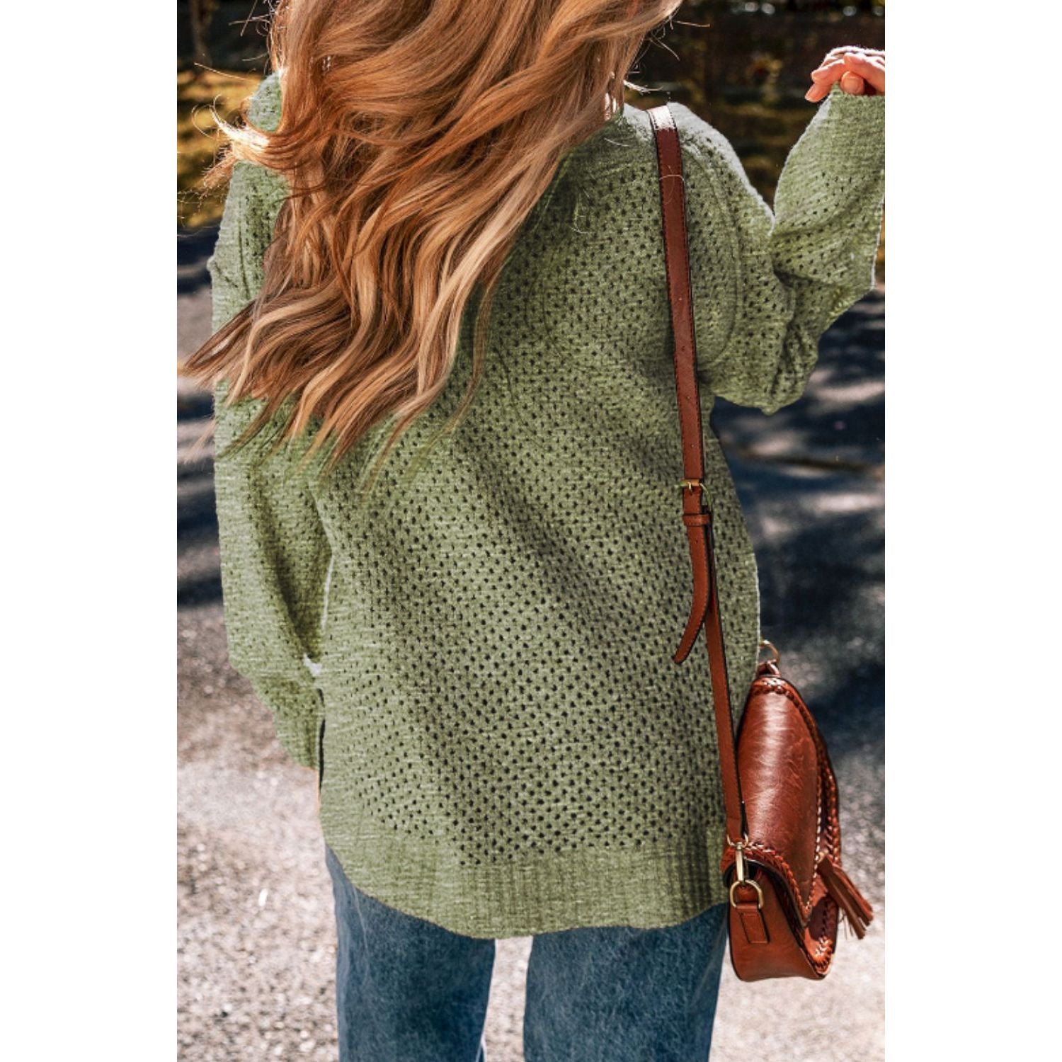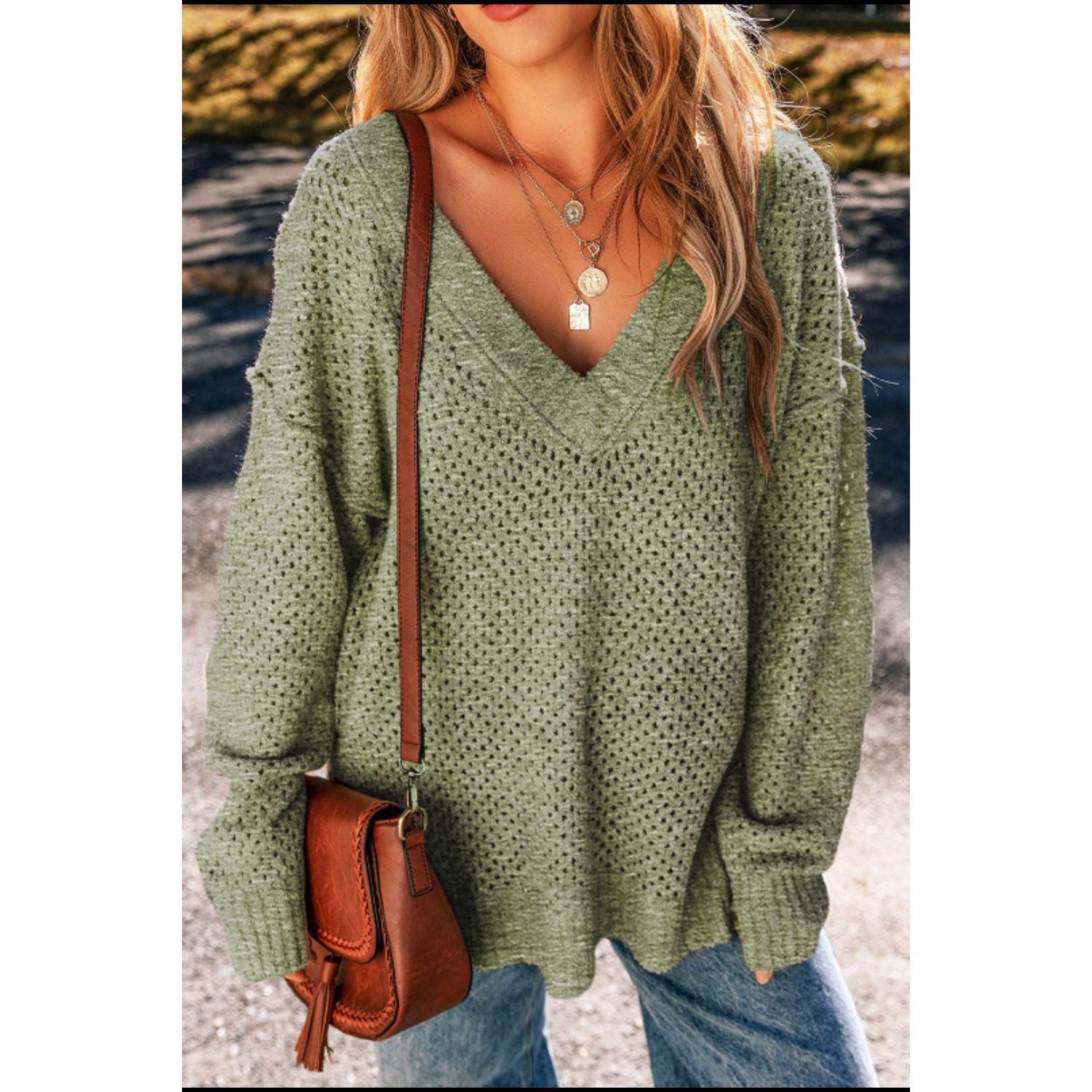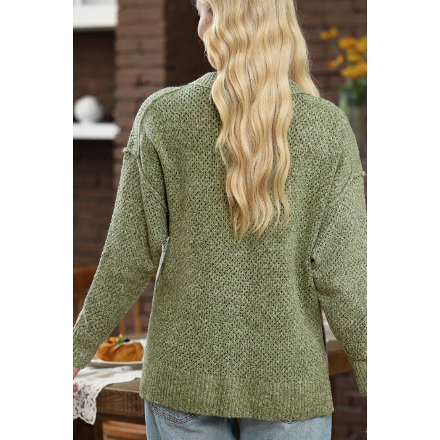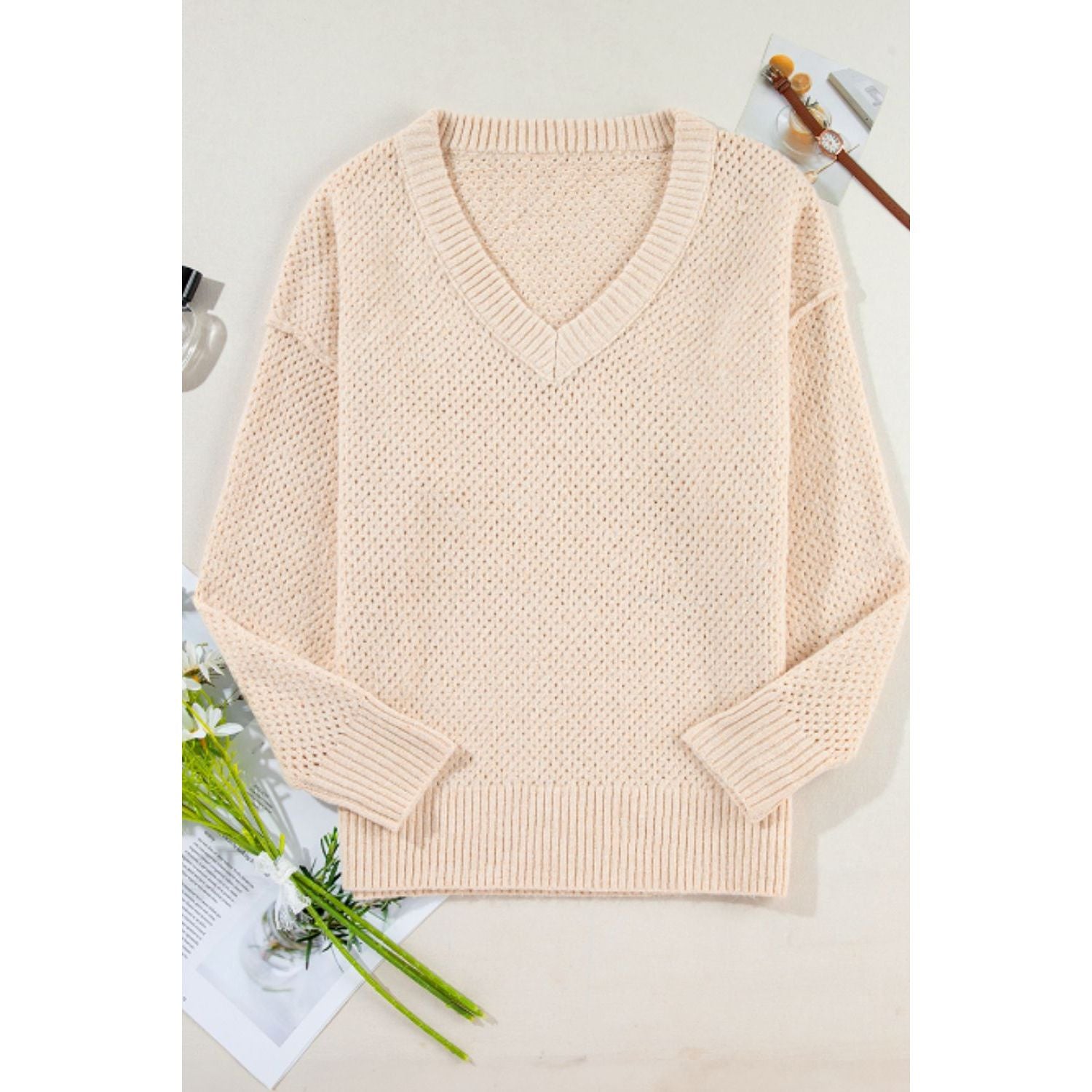 V-Neck Dropped Shoulder Long Sleeve Sweater