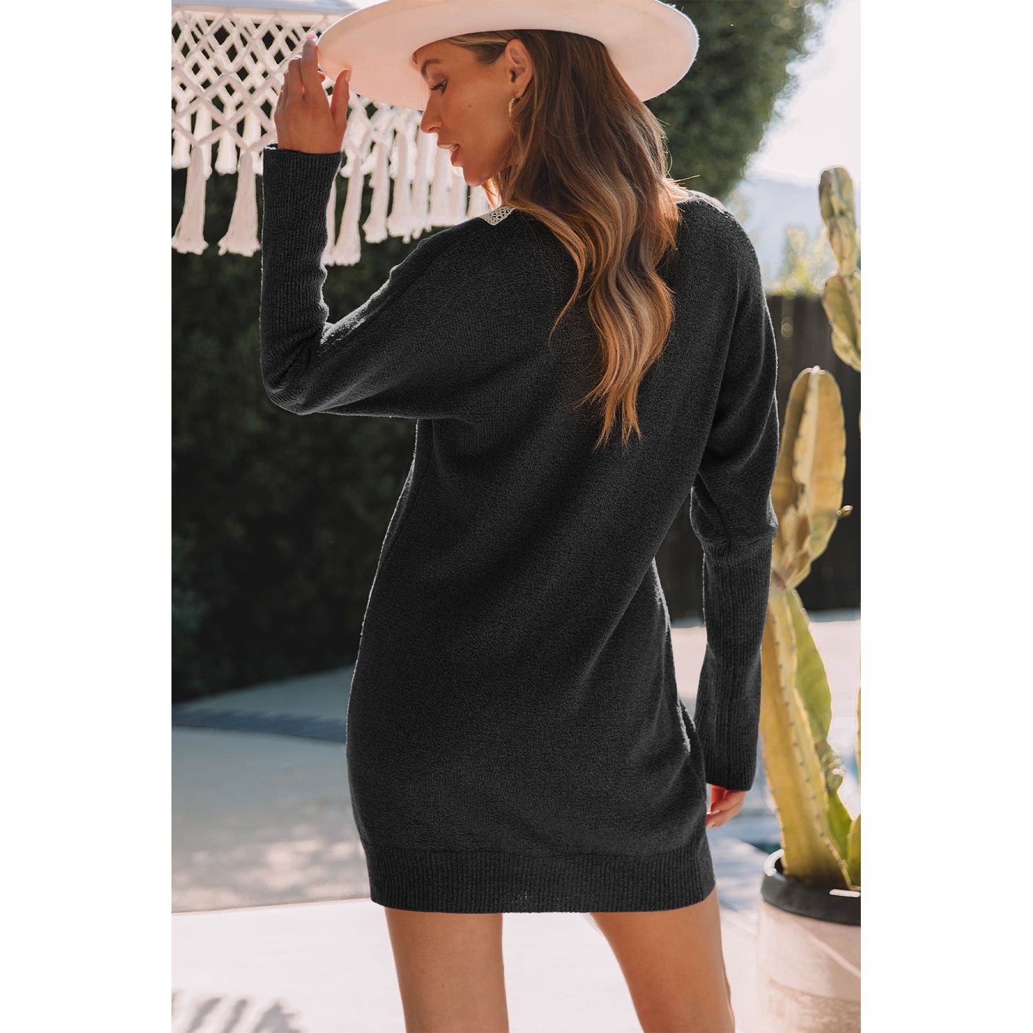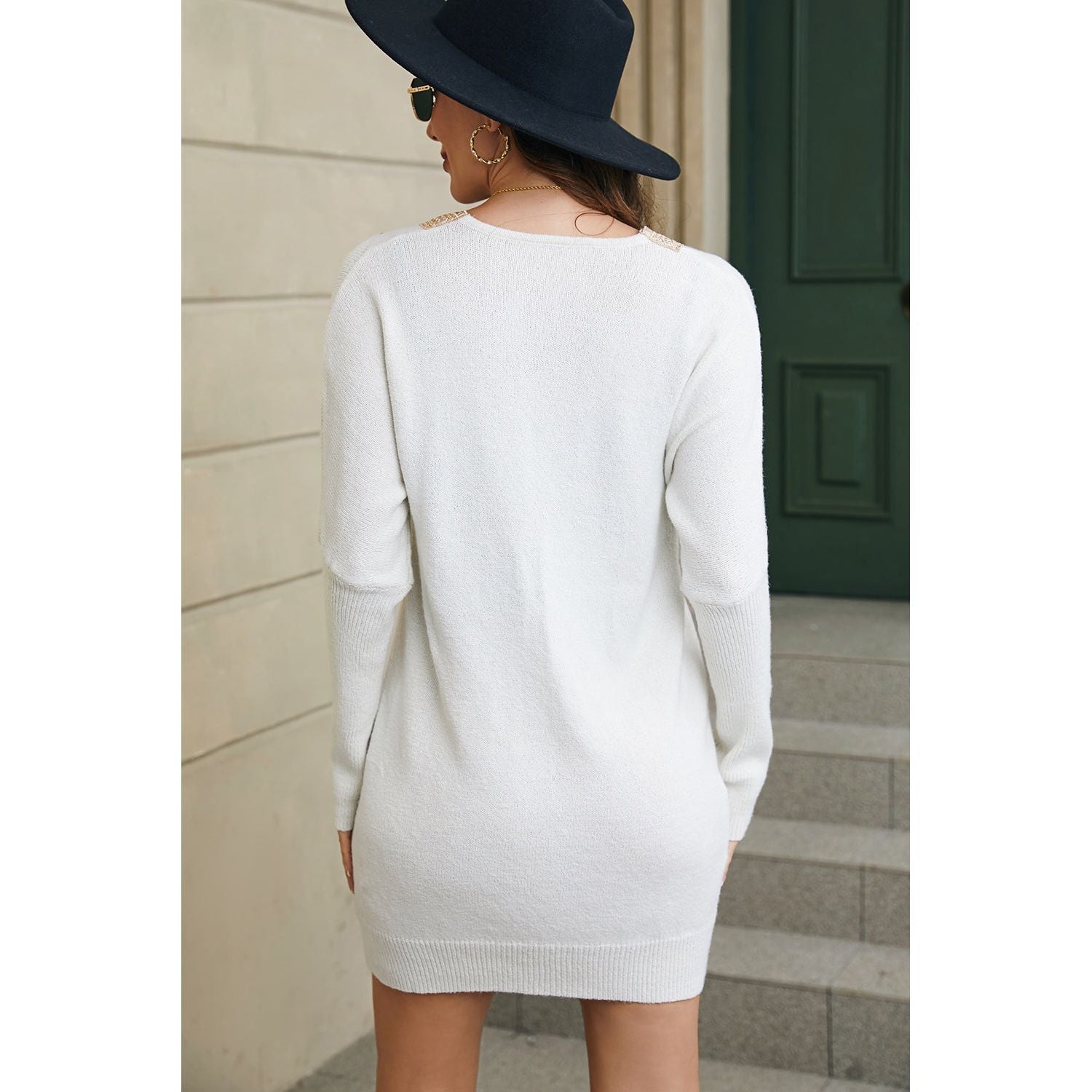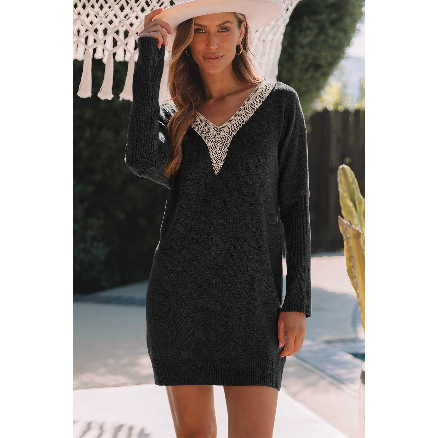 V-Neck Long Sleeve Mini Sweater Dress
