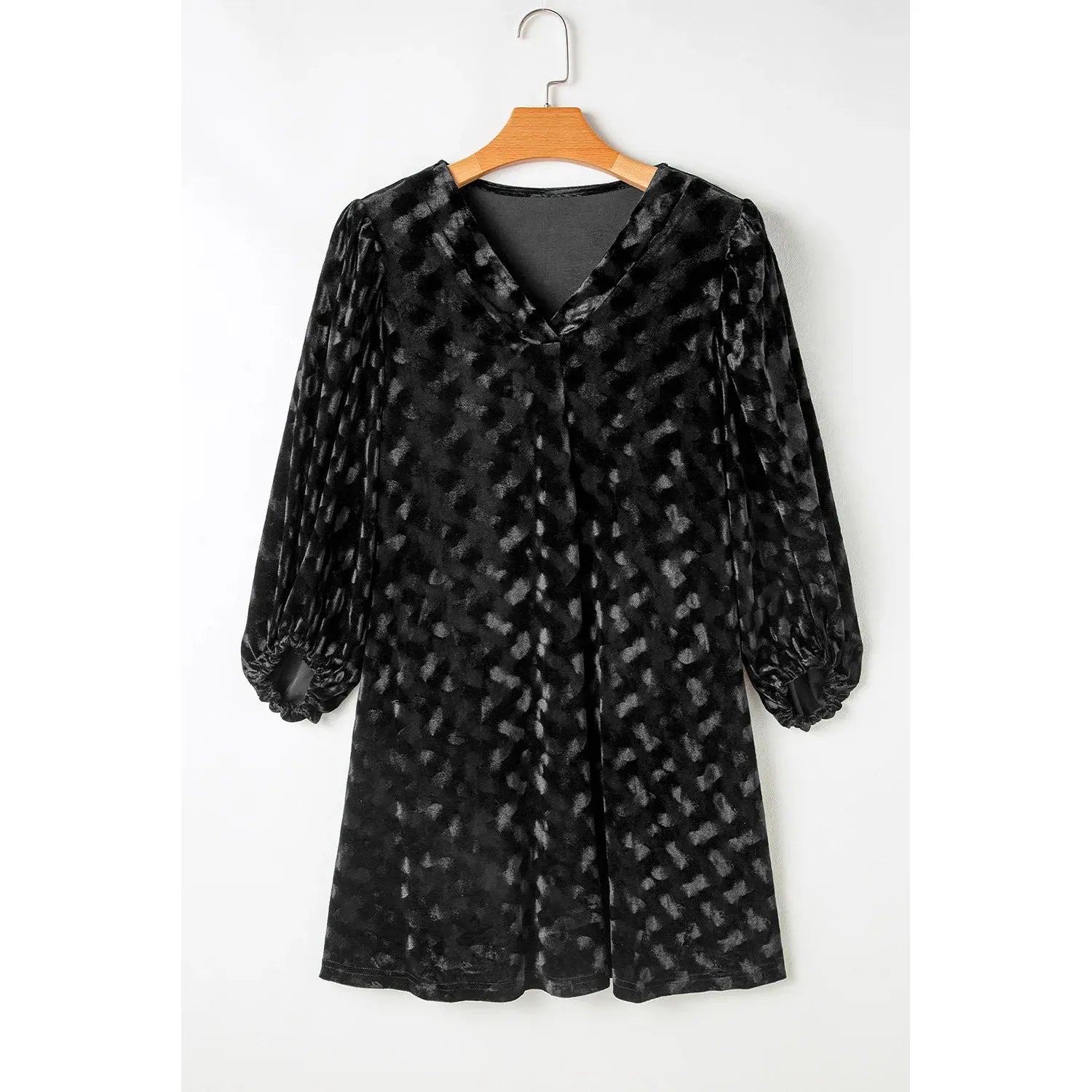 V-Neck Three-Quarter Sleeve Velvet Mini Dress