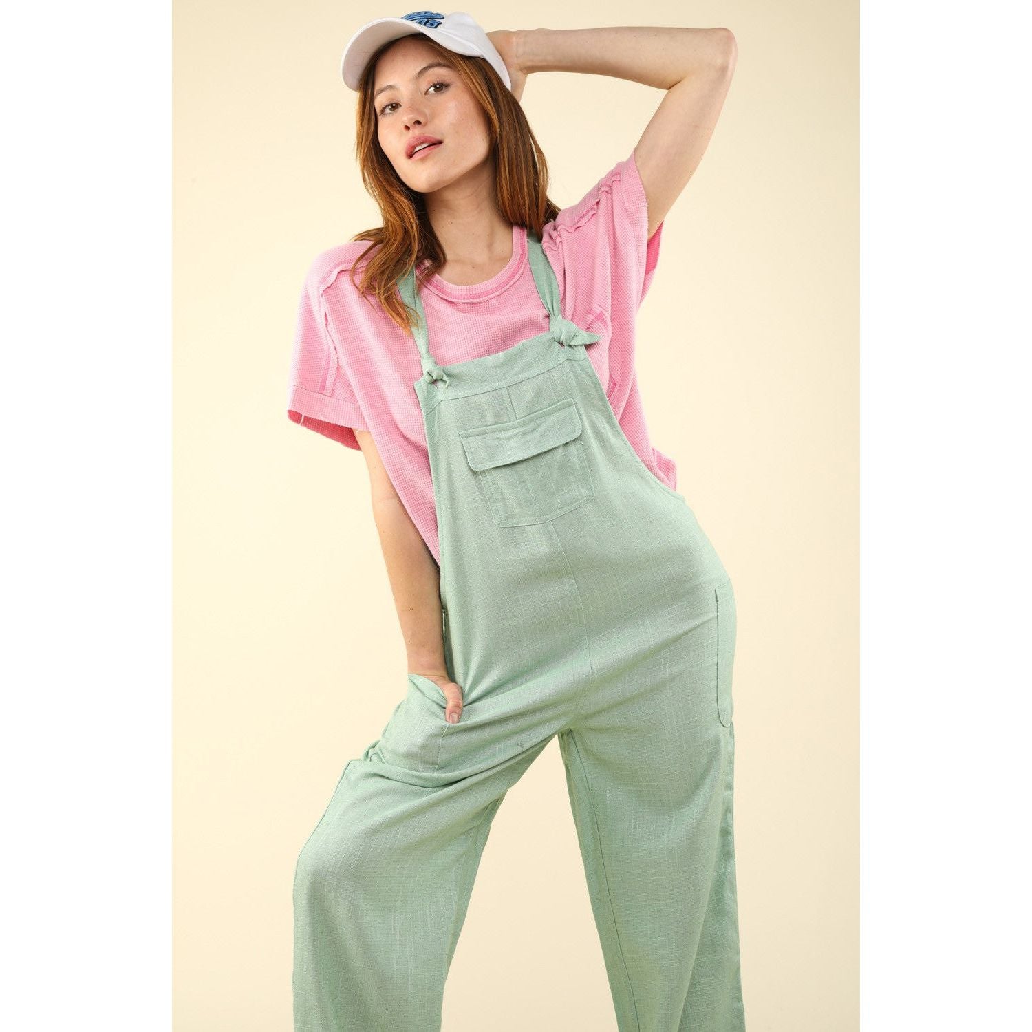 This Knot Strap Jumpsuit with Pockets is the perfect blend of comfort and style. Its trendy knot strap detailing adds a touch of uniqueness, while the pockets provide convenience. Whether you're running errands or going out for a casual lunch, this jumpsuit has got you covered. Made from high-quality materials, it ensures durability and a flattering fit. Dress it up with heels for a night out or pair it with sneakers for a more laid-back look. Say goodbye to worrying about what to wear, as this jumpsuit is a versatile and effortless choice.