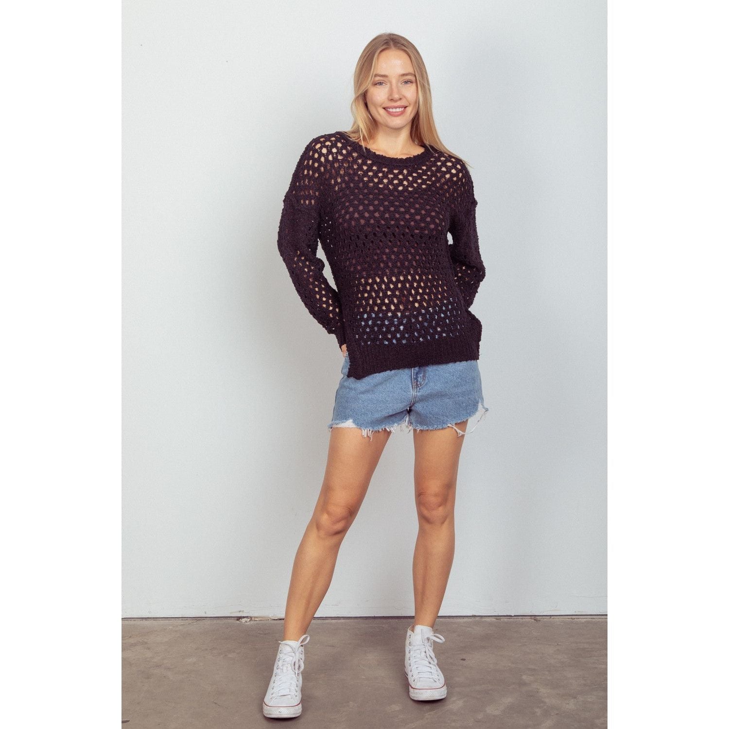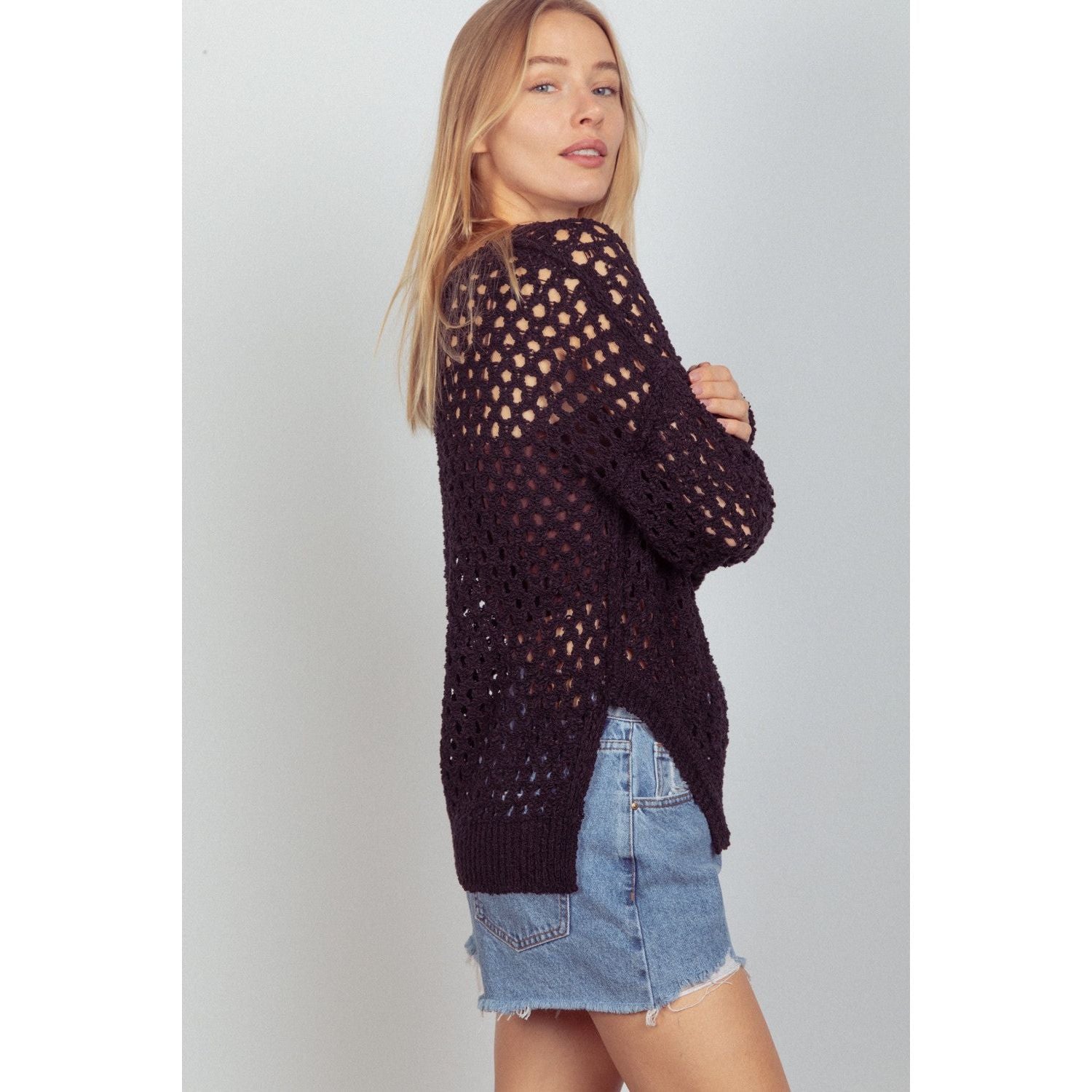 The openwork slit knit cover up is a stylish and versatile piece that adds a touch of sophistication to any outfit. Made from a breathable knit fabric, this cover up is perfect for layering over your favorite tank top or swimsuit. The openwork design adds a trendy and modern twist, while the side slits provide added mobility and flair. Whether you're lounging by the pool or going for a beachside stroll, this cover up is the perfect addition to your summer wardrobe. Elevate your look with the chic and functional openwork slit knit cover up for a stylish yet comfortable ensemble. Stay cool and stylish with this versatile cover up that effortlessly transitions from day to night with ease.