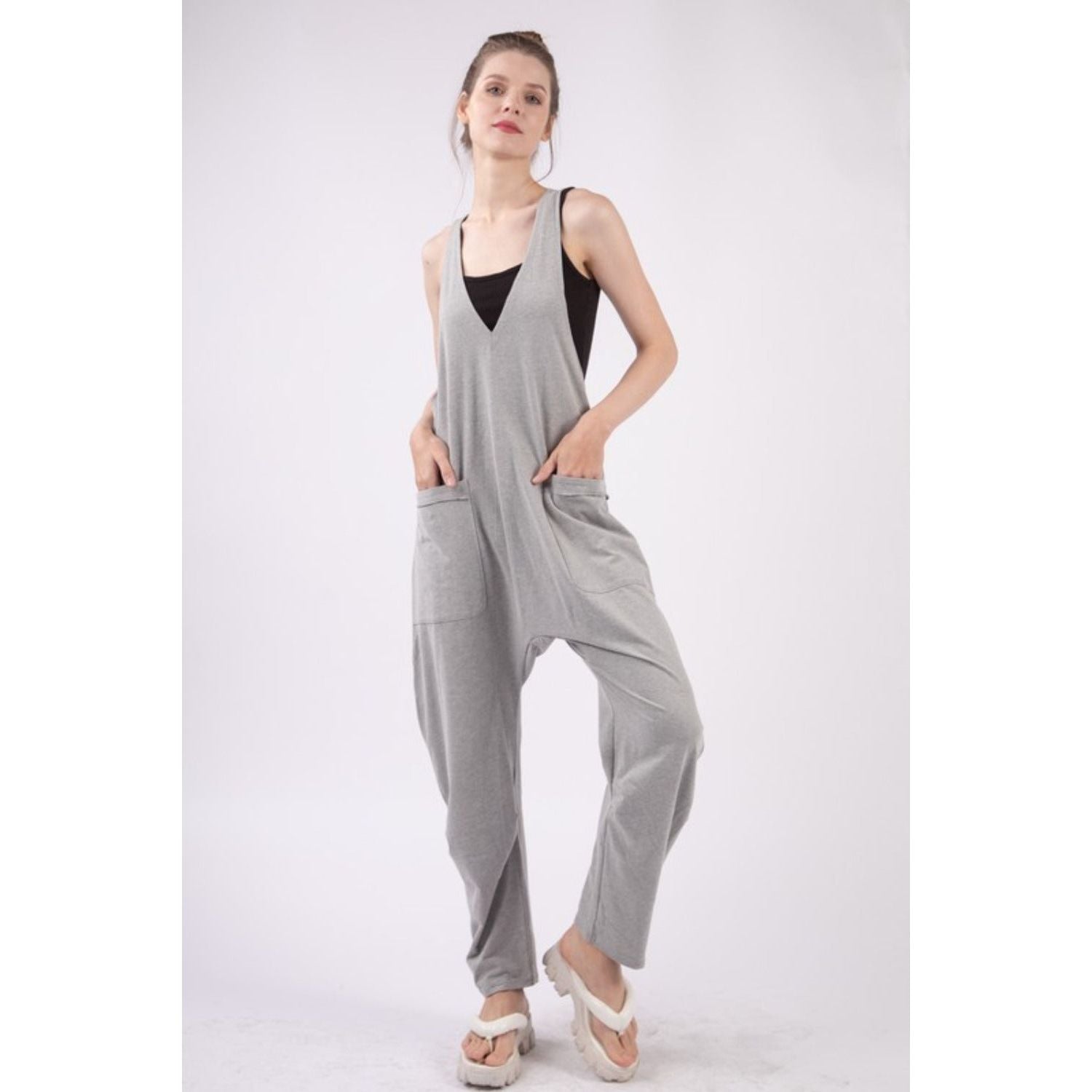 VERY J Plunge Sleeveless Jumpsuit with Pockets