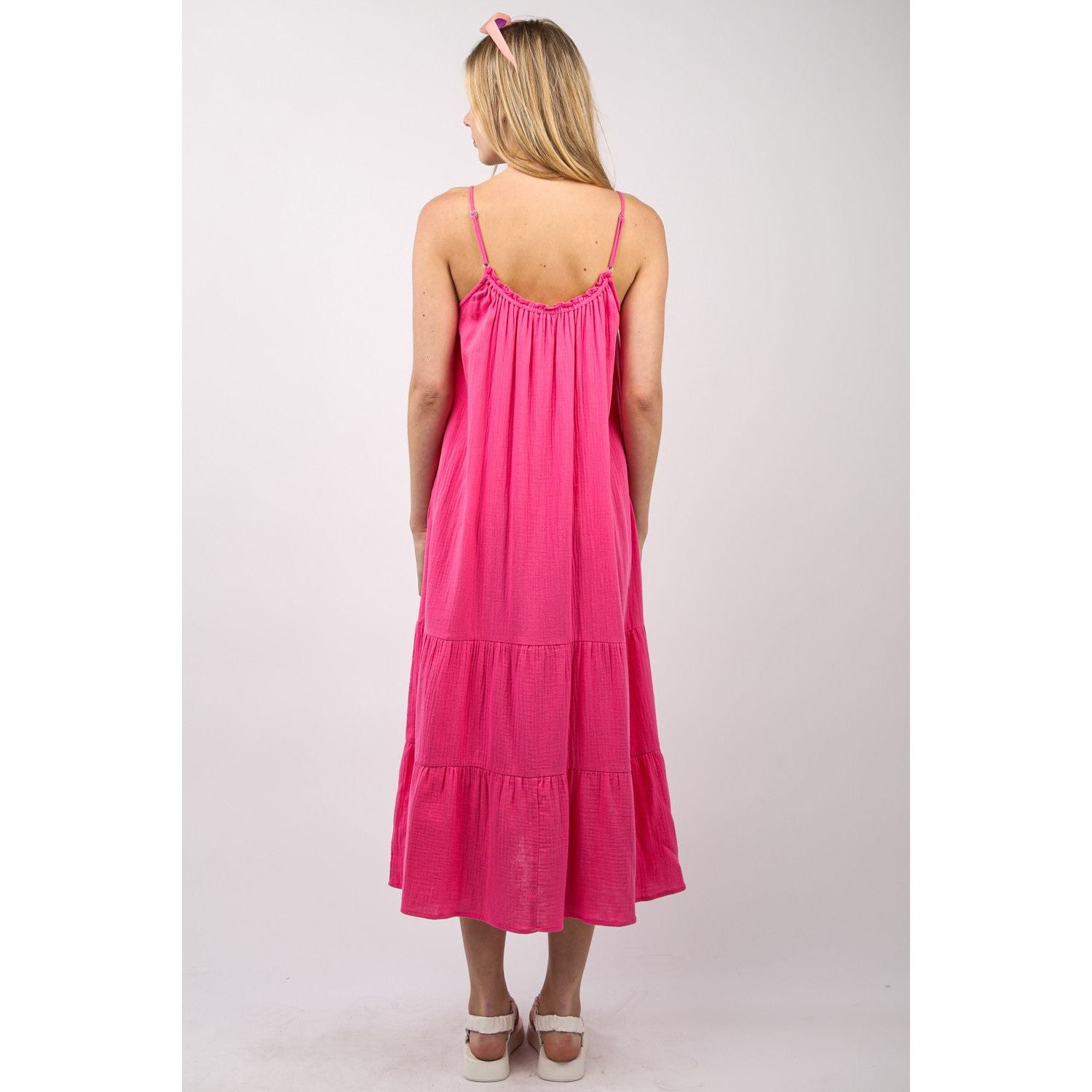 You have a versatile and comfortable Comfy Cotton Gauze A-Line Midi Dress that is perfect for summer with its cool comfort and sleeveless design. The side pockets add functionality to the vintage maxi long dress. The Skin Friendly Spring Bloomcore Dress is ideal for a soft and feminine look, especially with the sleeveless tiered layers and ruffle with baby hemming details. The adjustable straps and lining make this dress even more practical and easy to wear. Enjoy the stylish and breezy feel of this lovely piece in your wardrobe!