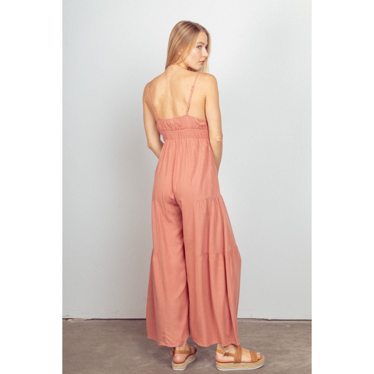 VERY J Sleeveless Ruched Wide Leg Jumpsuit