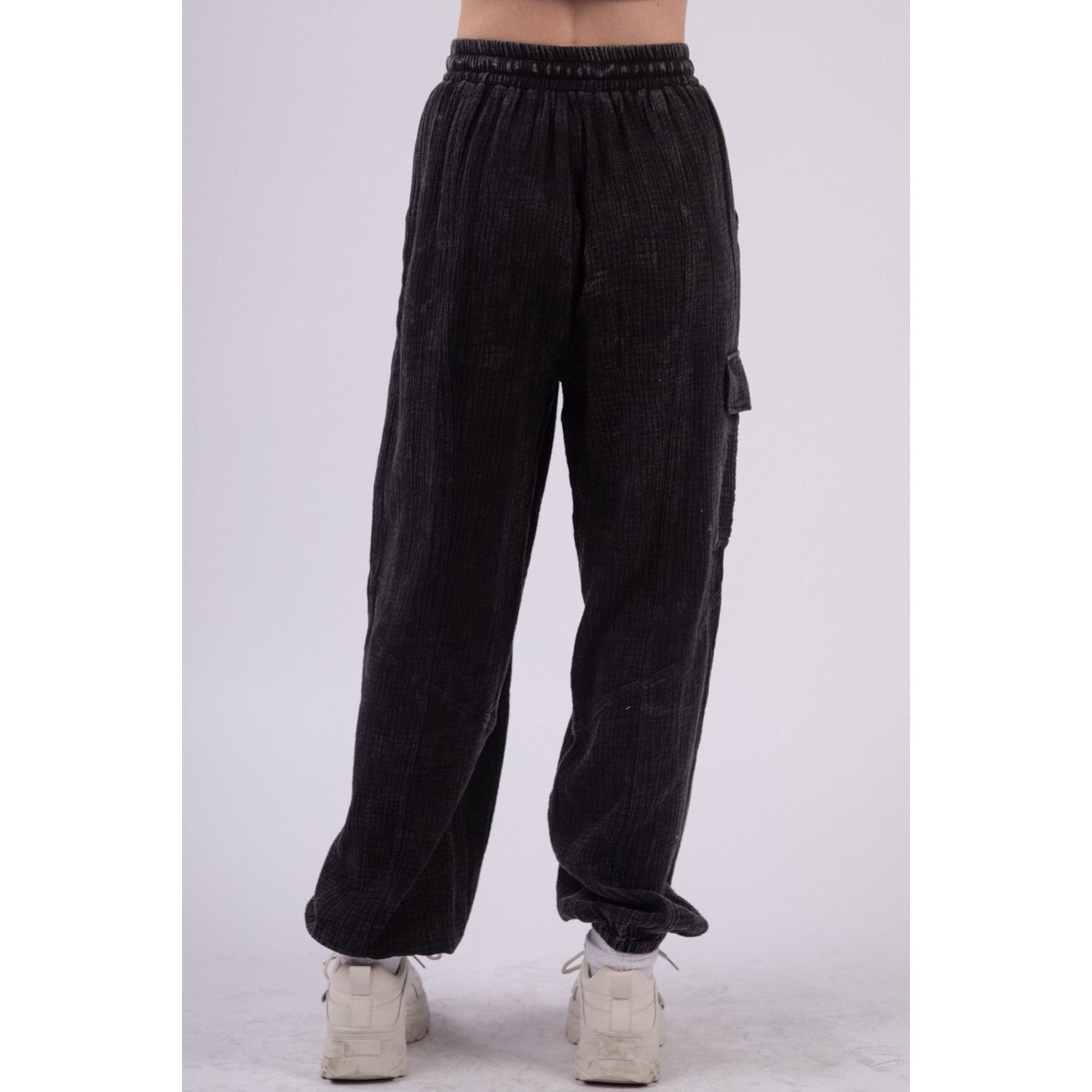 Washed Woven Crinkle Gauze Drawstring Pants offer a casual and relaxed style with a touch of texture. The washed gauze fabric provides a soft and comfortable feel, while the crinkle texture adds visual interest and dimension to the pants. The drawstring waist allows for a customizable fit and adds a laid-back vibe to the design. Perfect for a day out or lounging at home, these pants combine style and comfort effortlessly. Pair them with a simple tee or blouse for a relaxed yet chic look. Embrace the casual elegance of the Washed Woven Crinkle Gauze Drawstring Pants for a versatile and comfortable addition to your wardrobe.