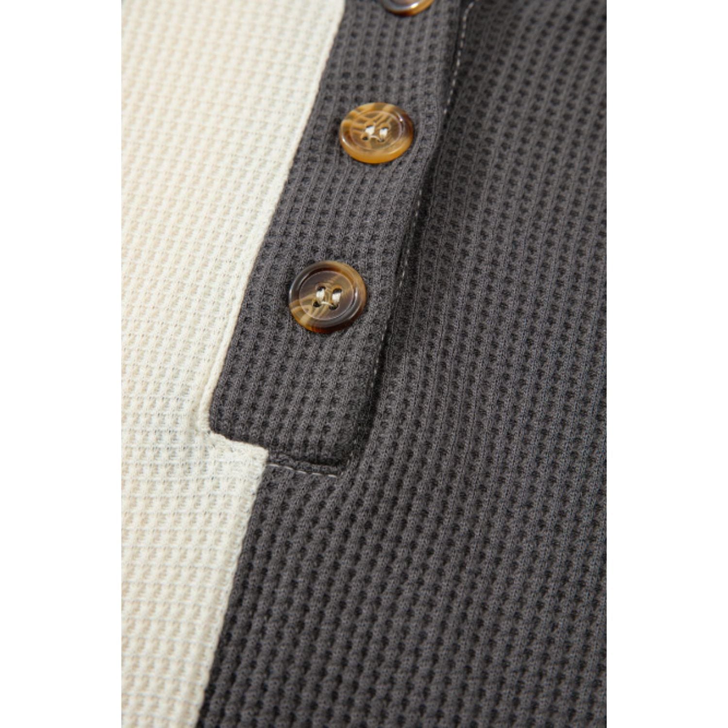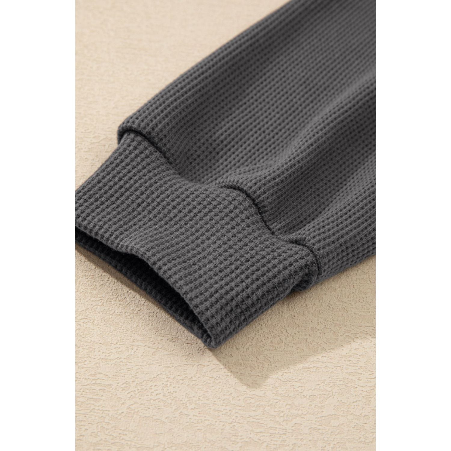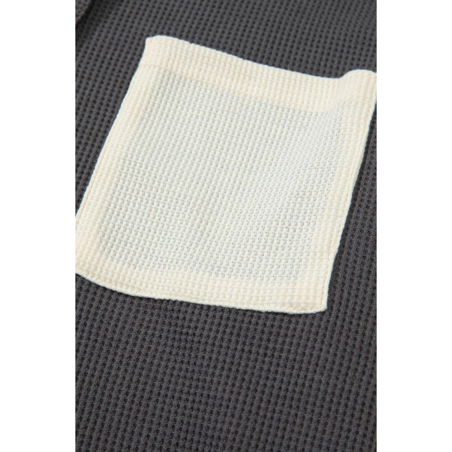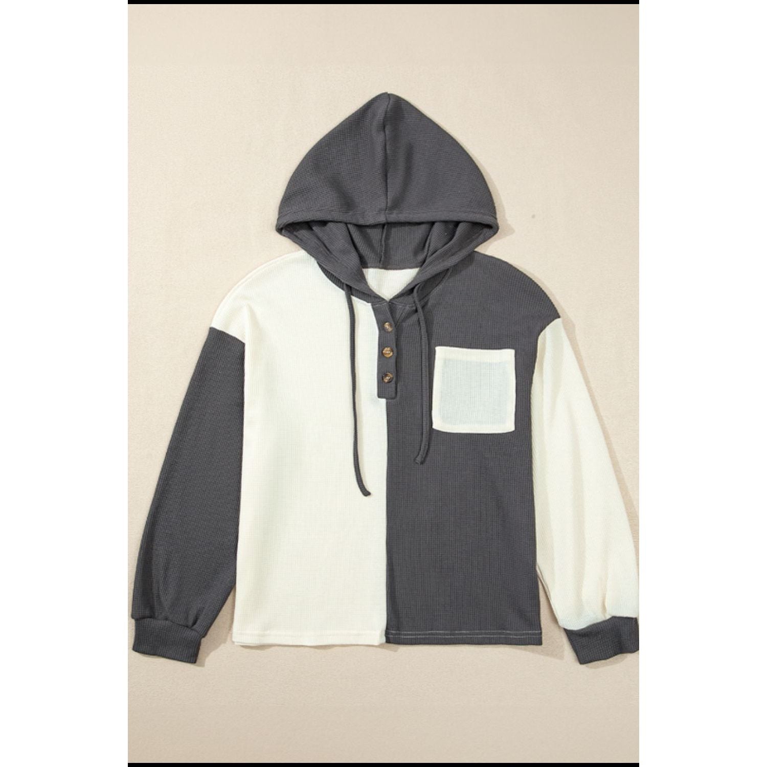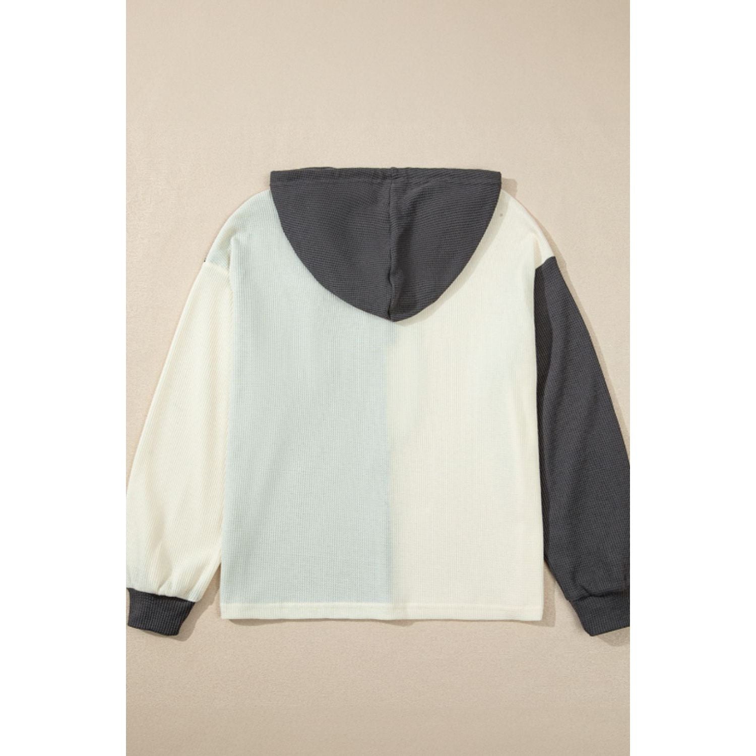 Waffle-Knit Two-Tone Long Sleeve Hoodie