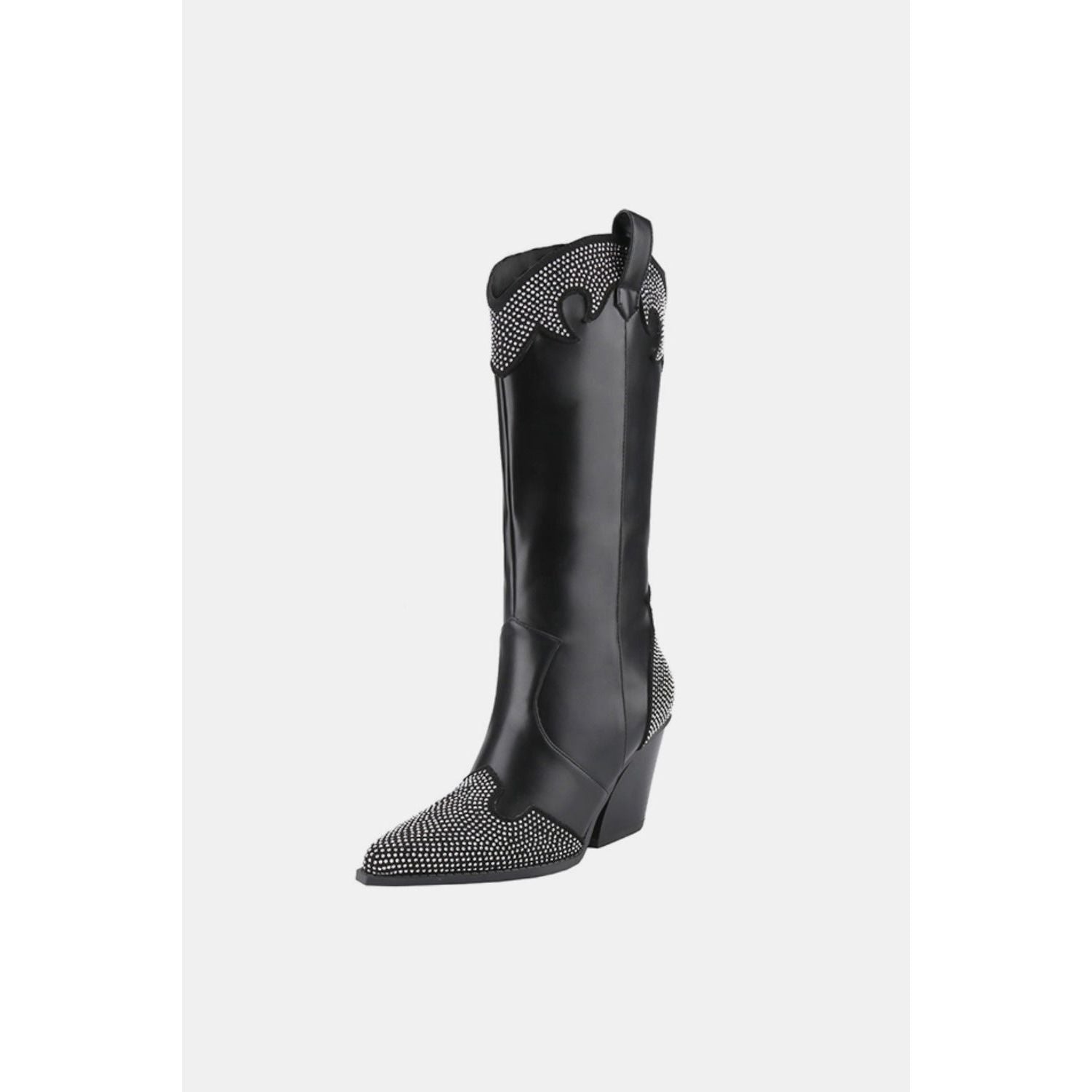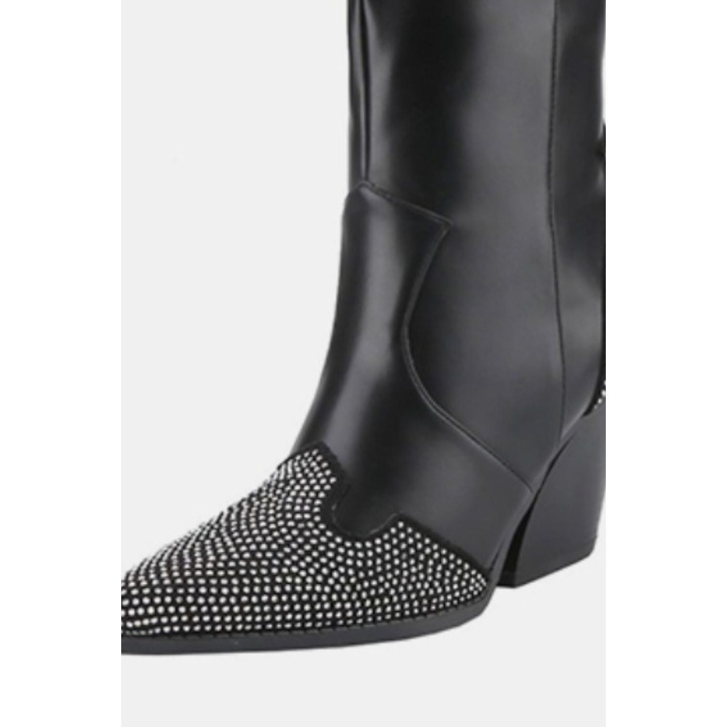 Weeboo Chunky Heel Rhinestone Decor Western Boots