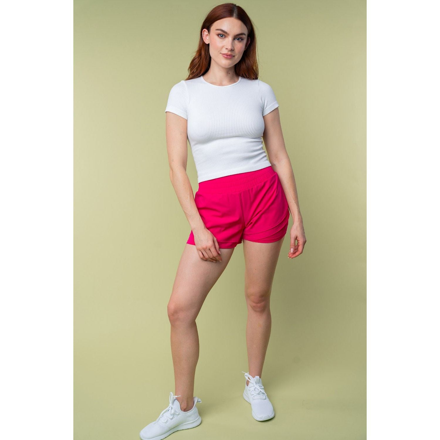 The high-waisted solid knit shorts are a versatile and practical addition to your wardrobe. The elastic waist ensures a comfortable and secure fit, while the built-in cycling shorts provide added coverage and flexibility. With convenient side pockets, you can easily carry essentials on the go. The smocked waistband adds a stylish touch and ensures a flattering silhouette. Made from lightweight nylon knit fabric, these shorts are perfect for staying cool and comfortable in warm weather. Whether you're running errands or working out, these high-waisted knit shorts offer functionality and style in one sleek design.