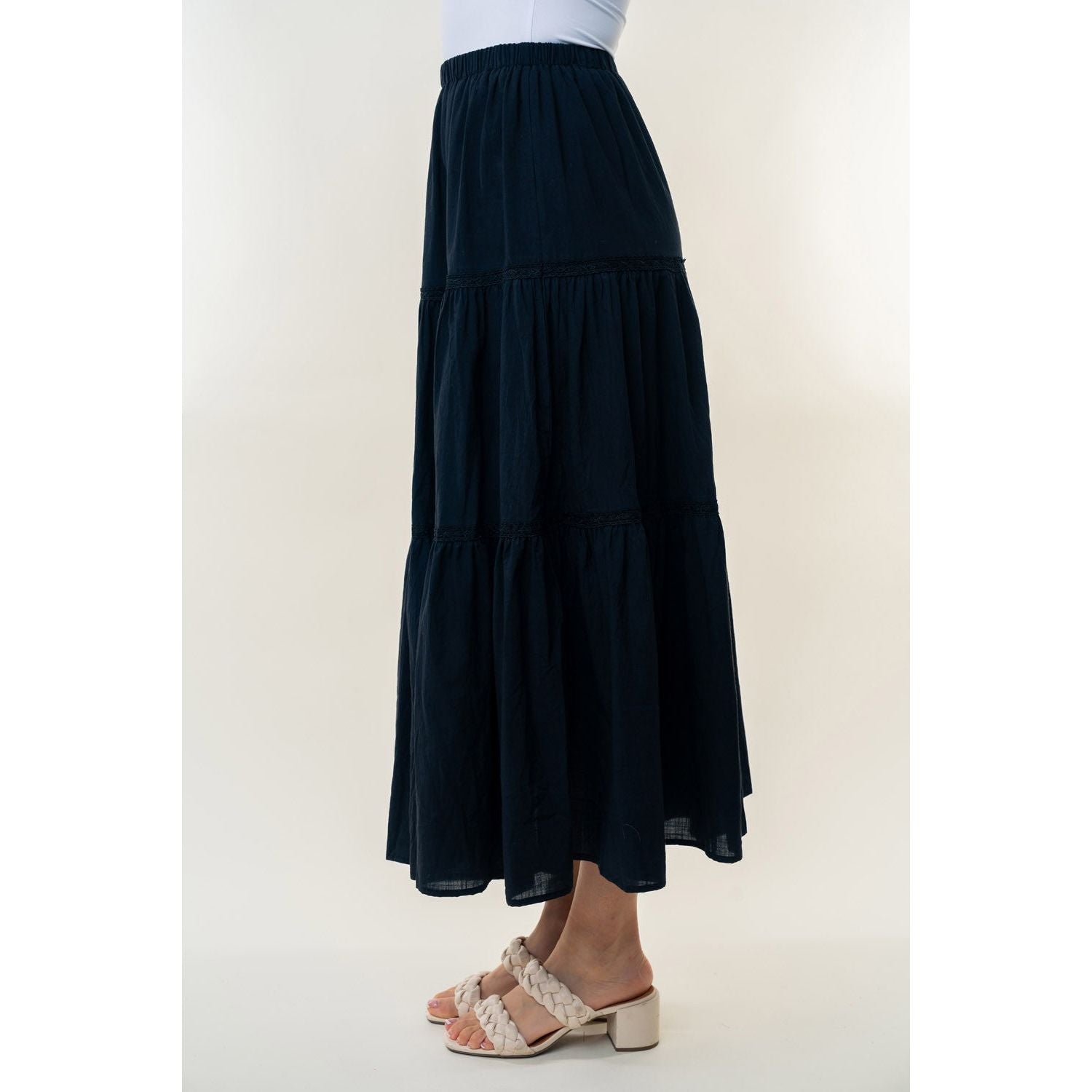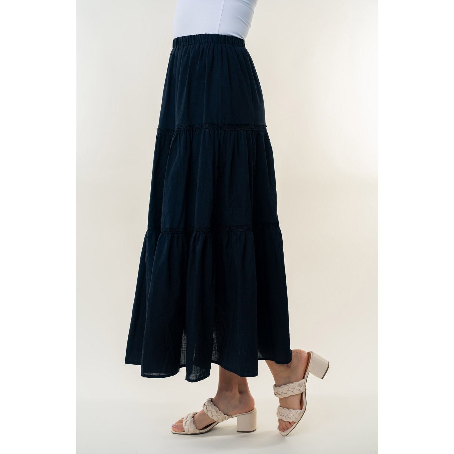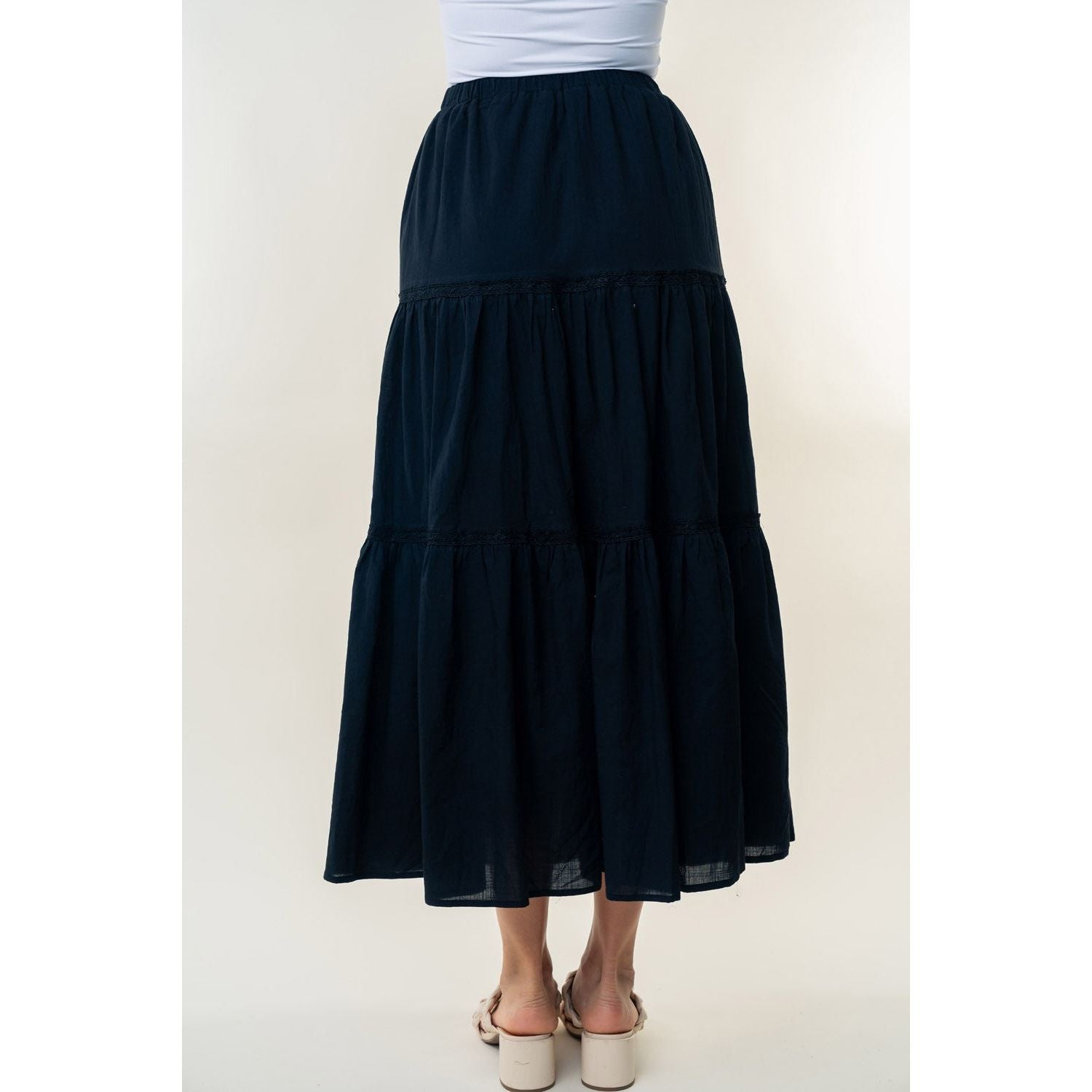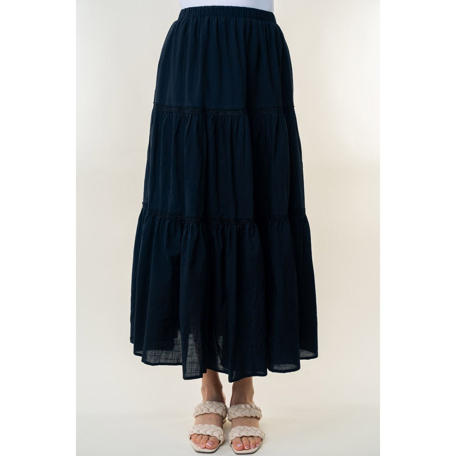 A High Waisted Tiered Maxi Skirt is a stylish and versatile piece that features a high-rise waist and multiple tiers of fabric that create a flowy and feminine silhouette. This type of skirt is often long in length, reaching the ankles or floor, making it perfect for creating a bohemian or romantic look. The high waist accentuates the natural waistline and elongates the legs, while the tiered design adds volume and movement to the skirt. Pair it with a fitted top or a tucked-in blouse for a flattering and stylish outfit that can be dressed up or down for various occasions. The High Waisted Tiered Maxi Skirt is a chic and elegant choice that can add a touch of drama to your wardrobe.