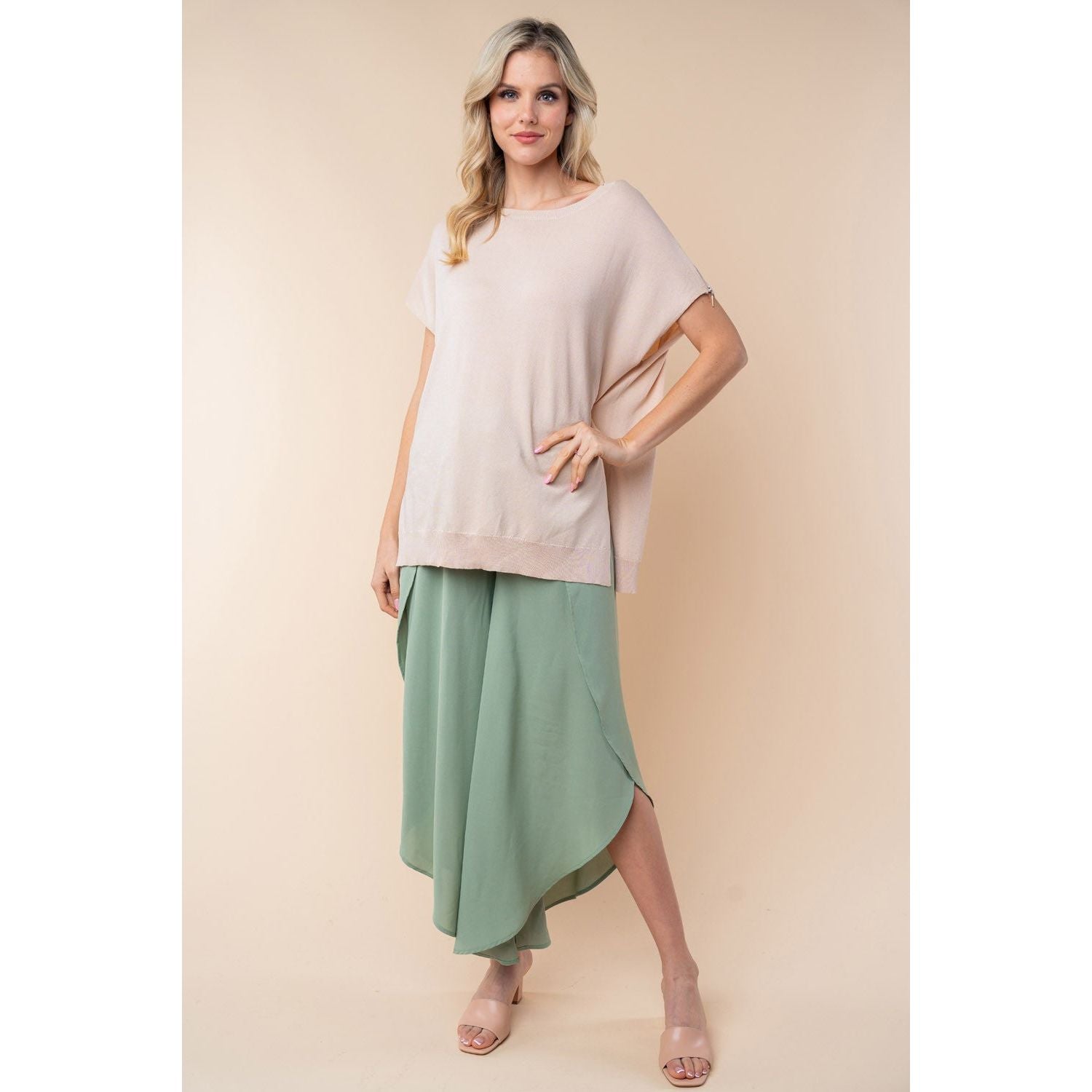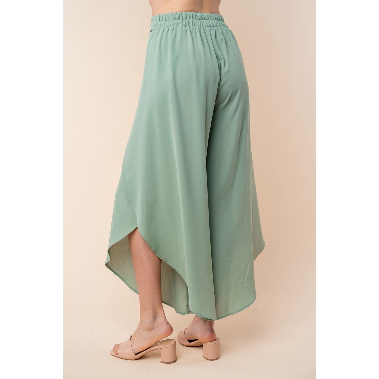 These high-waisted solid woven pants are a versatile and stylish choice for any wardrobe. The elastic waist ensures a comfortable fit, while the built-in shorts provide added coverage and flexibility. The wide tulip hem adds a touch of elegance and movement to the design. Crafted from a lightweight woven material, these pants are perfect for staying cool and chic in warmer weather. Whether dressed up with a blouse and heels or dressed down with a casual top and sneakers, these pants are a fashionable and effortless option for any occasion. Elevate your look with these high-waisted woven pants that balance comfort and style flawlessly.