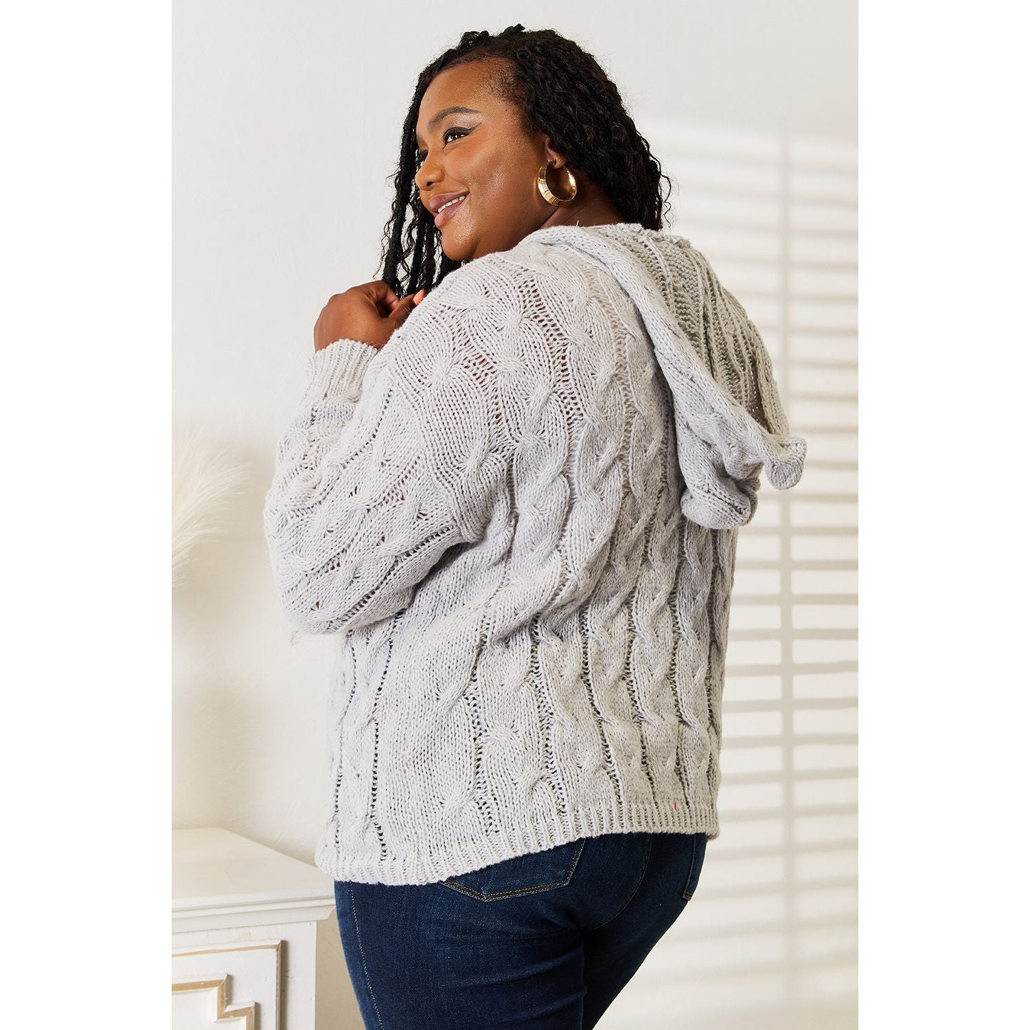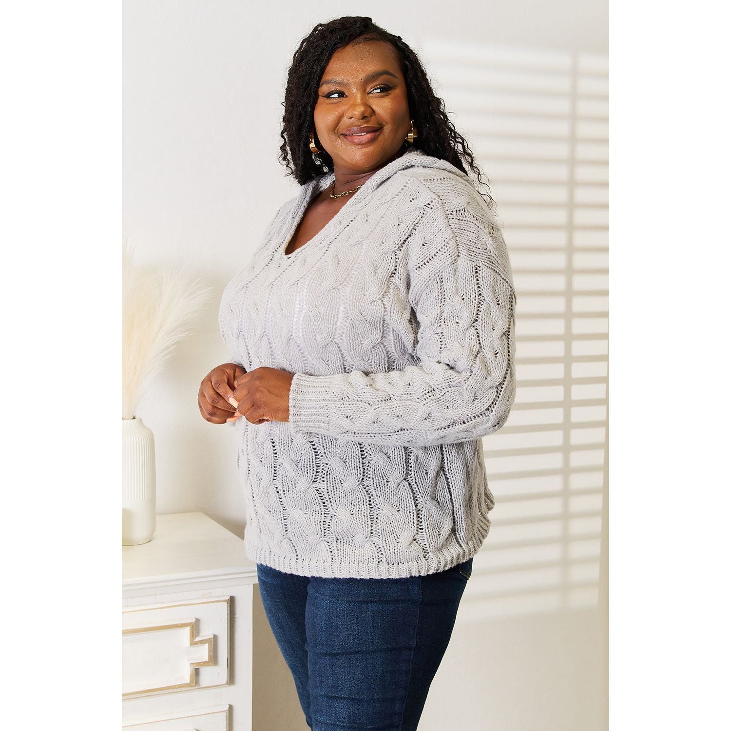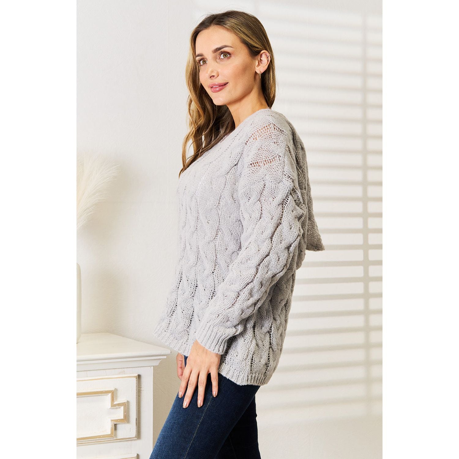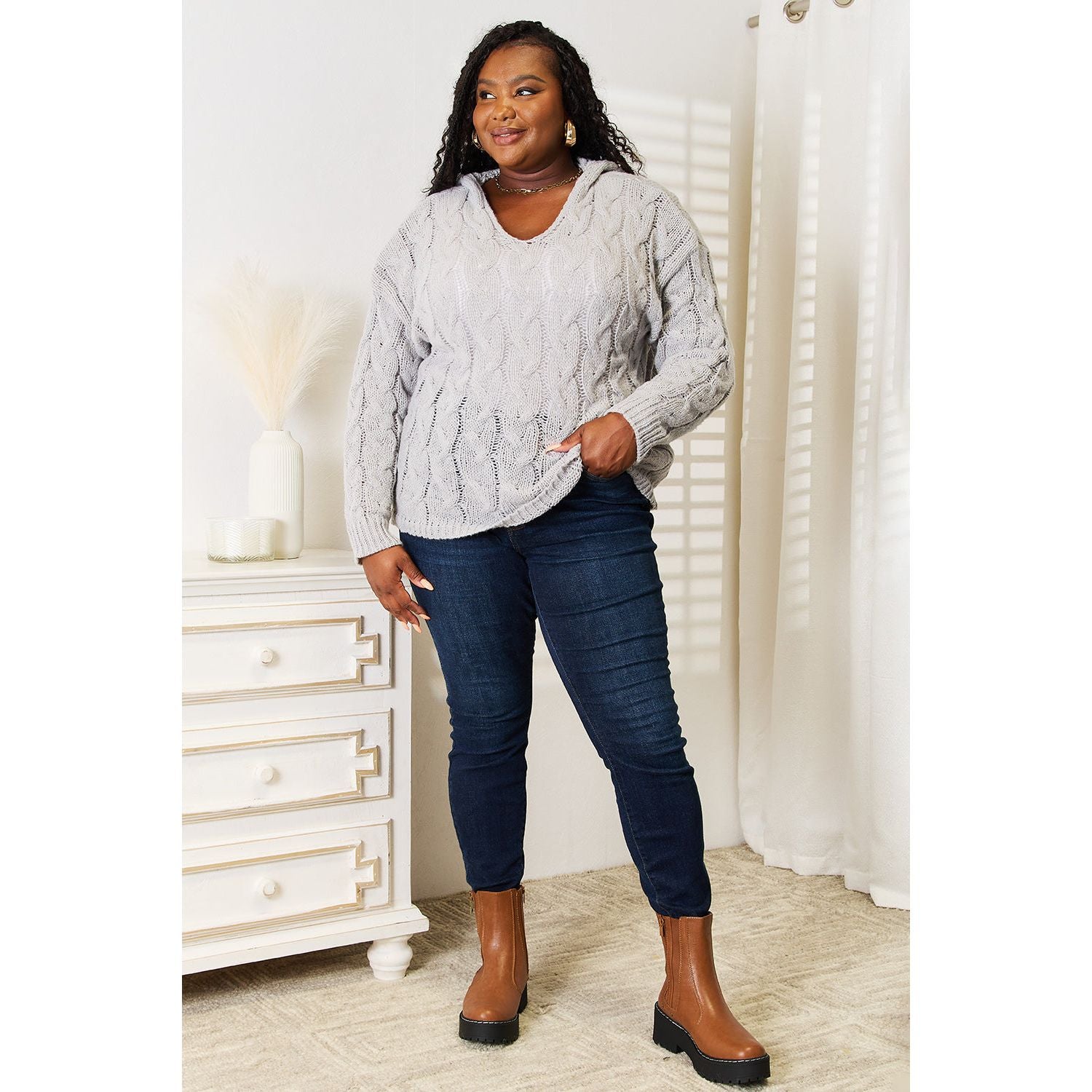 Stay warm and stylish in this cable-knit hooded sweater. The intricate cable-knit pattern adds a classic touch to this cozy sweater, while the hood provides extra warmth and comfort. Perfect for chilly days, this sweater is a must-have addition to your winter wardrobe.