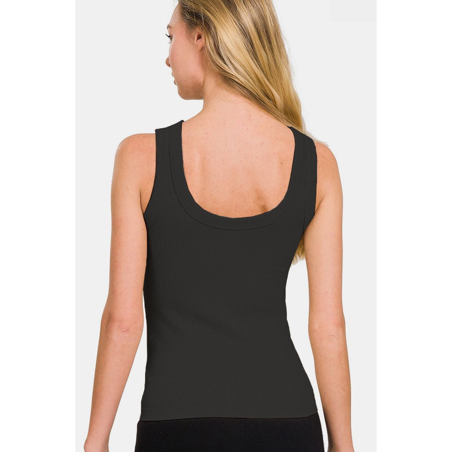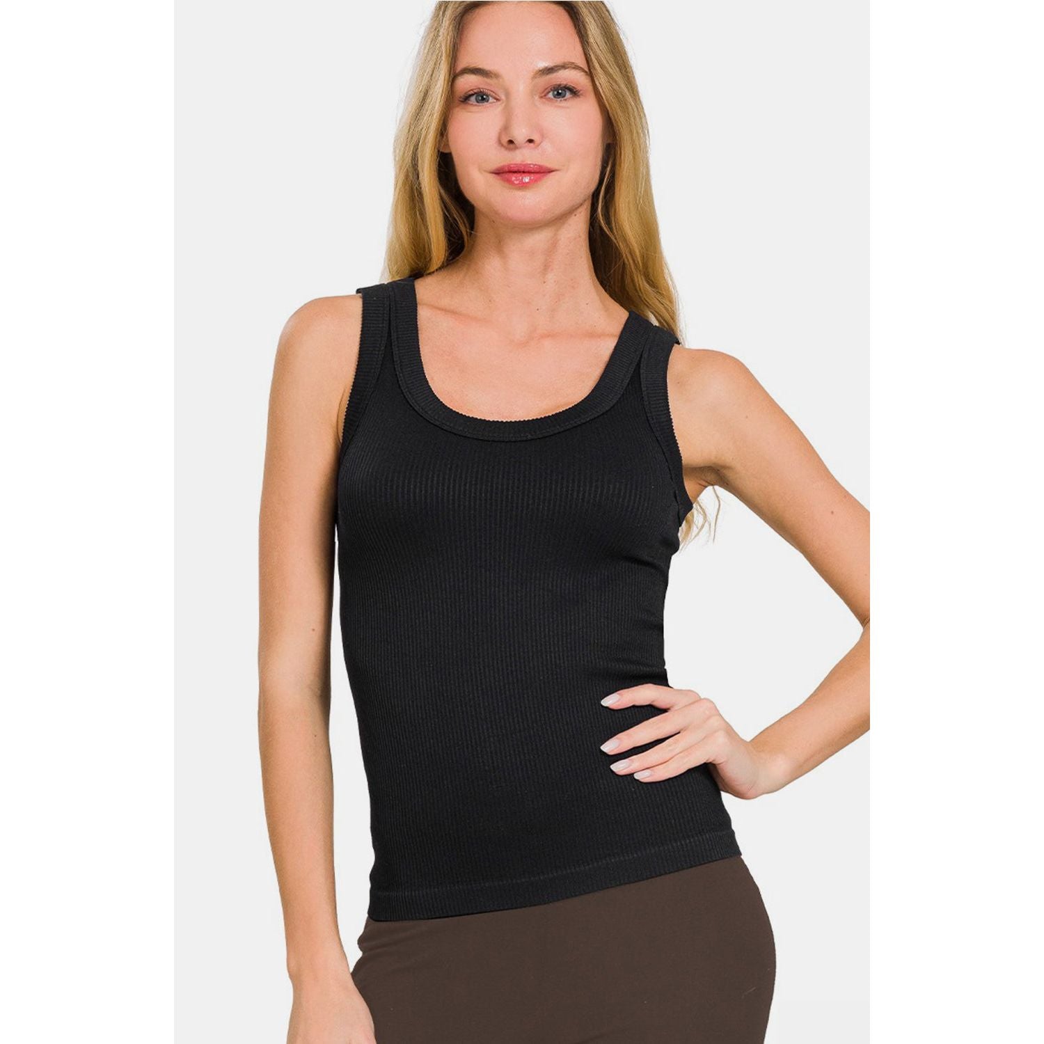 Zenana 2 Way Neckline Washed Ribbed Tank