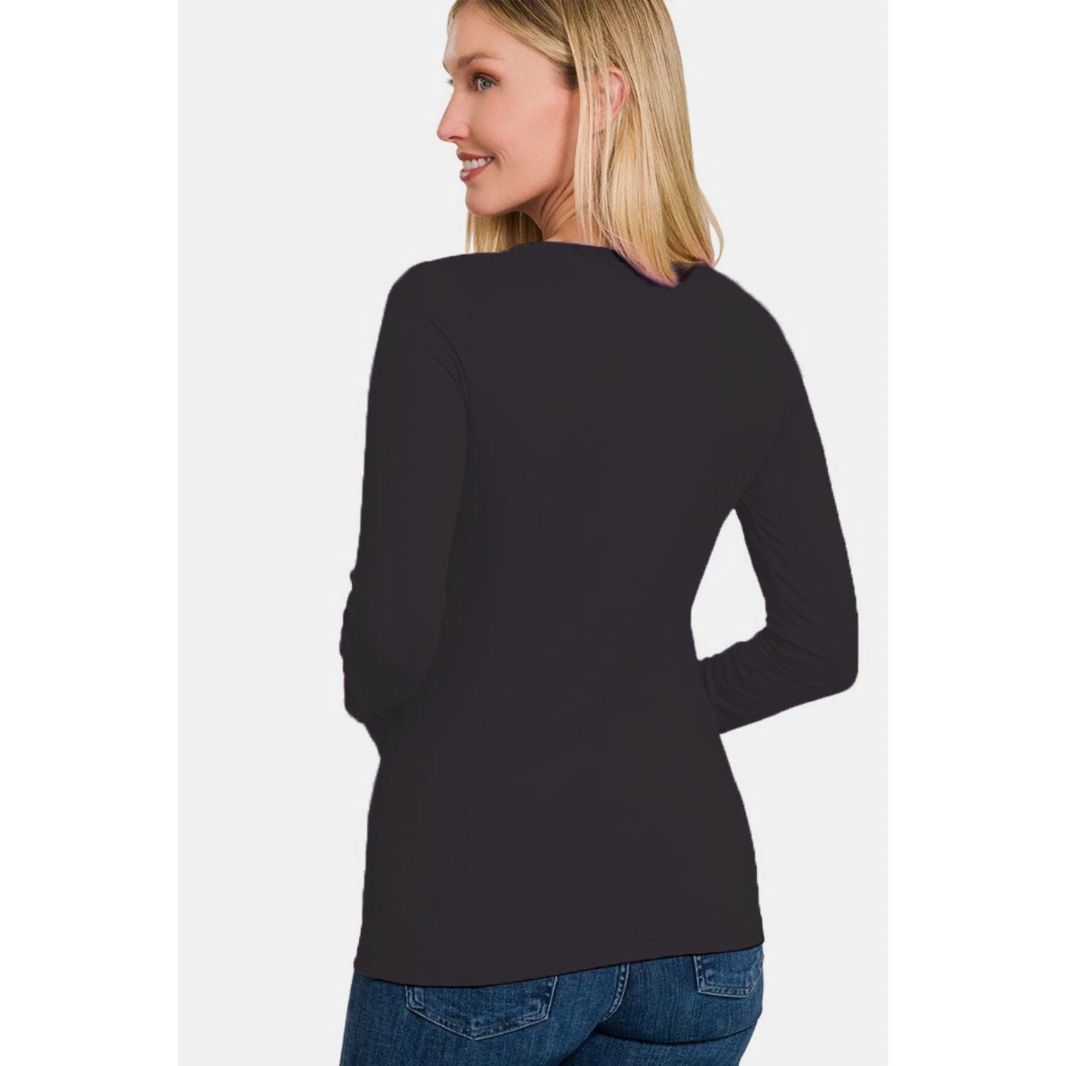 Zenana Ful Size Brushed Microfiber Long Sleeve Round Neck T-Shirt