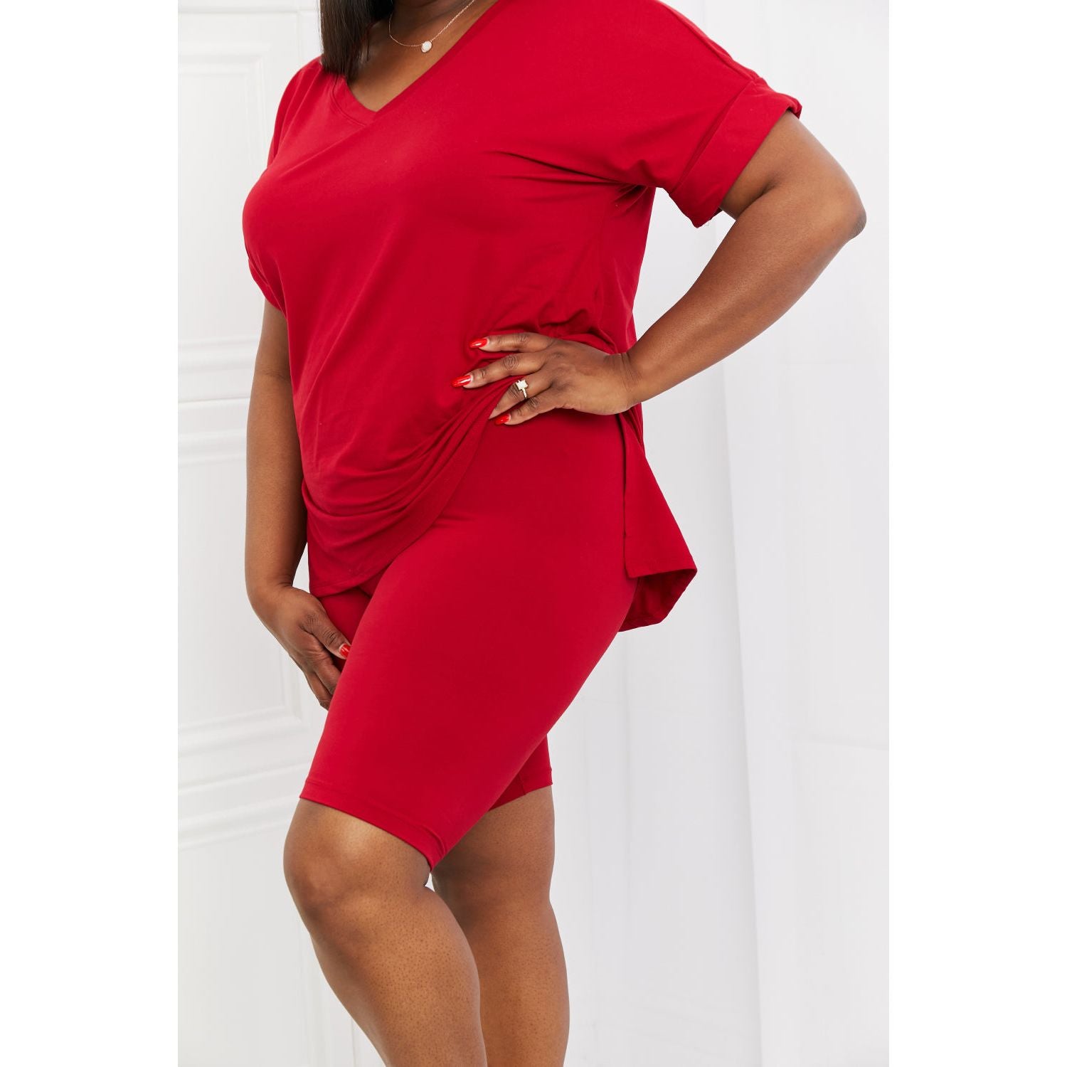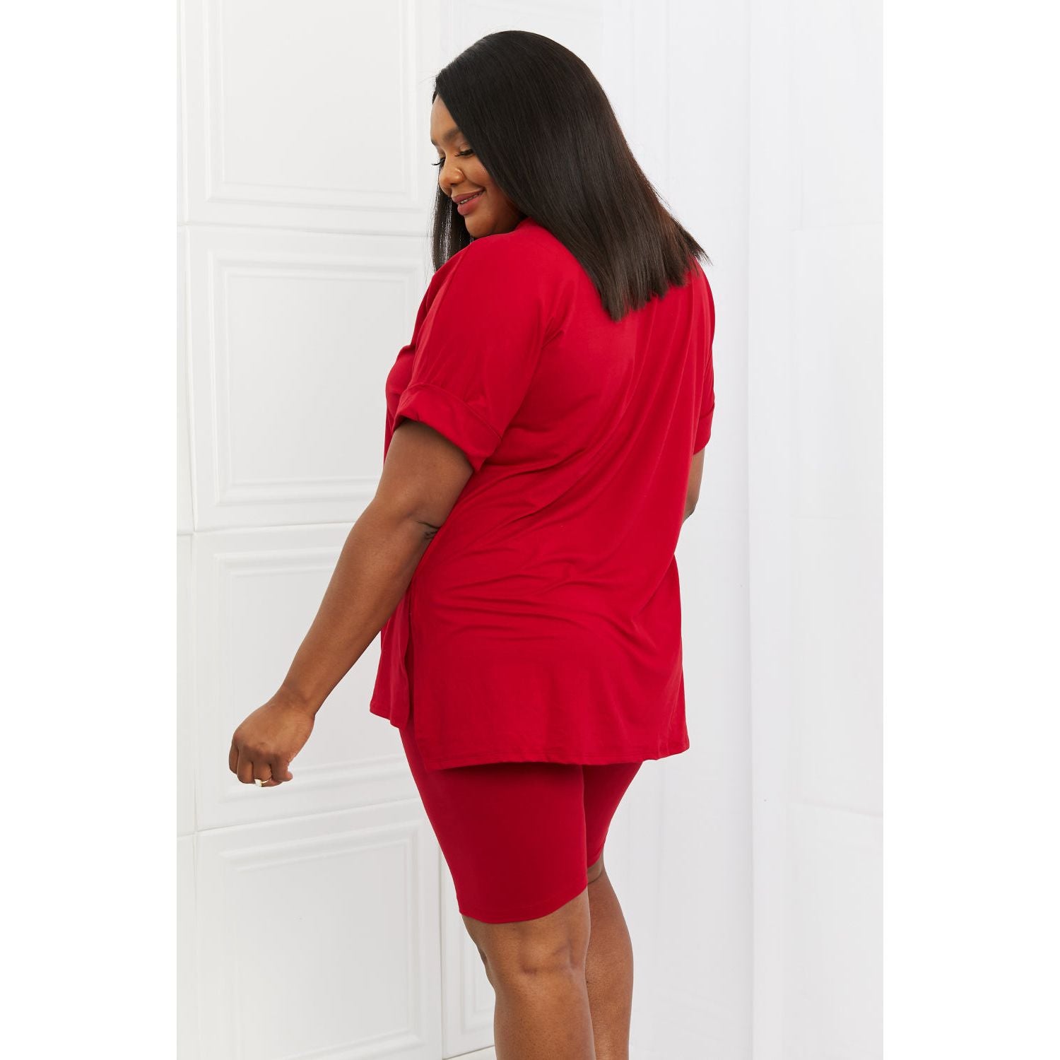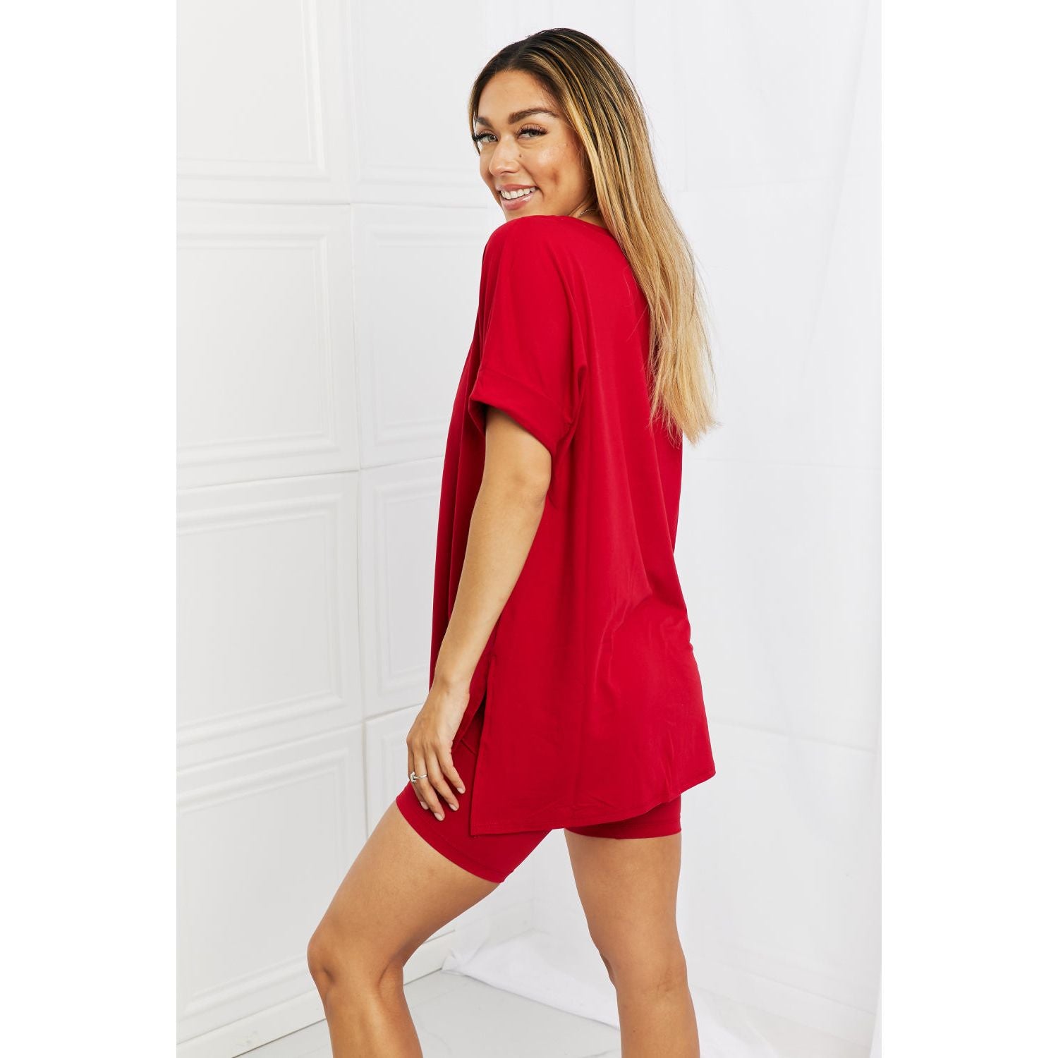 Quiet moments may be few and far between but comfort doesn't have to be! Your skin will love this set, which comes with a brushed DTY microfiber top and biker shorts. The high-low hem top allows for an easy front tuck to emphasize your waist, and the high rise biker shorts were made for comfort. Mix and match or wear together.
