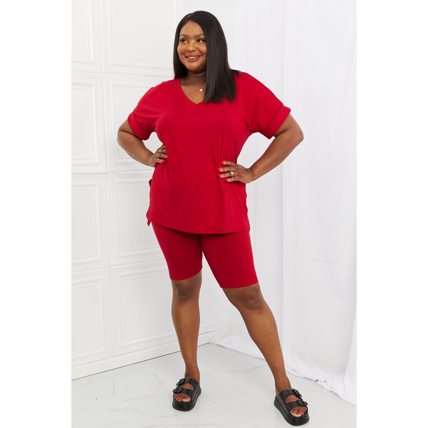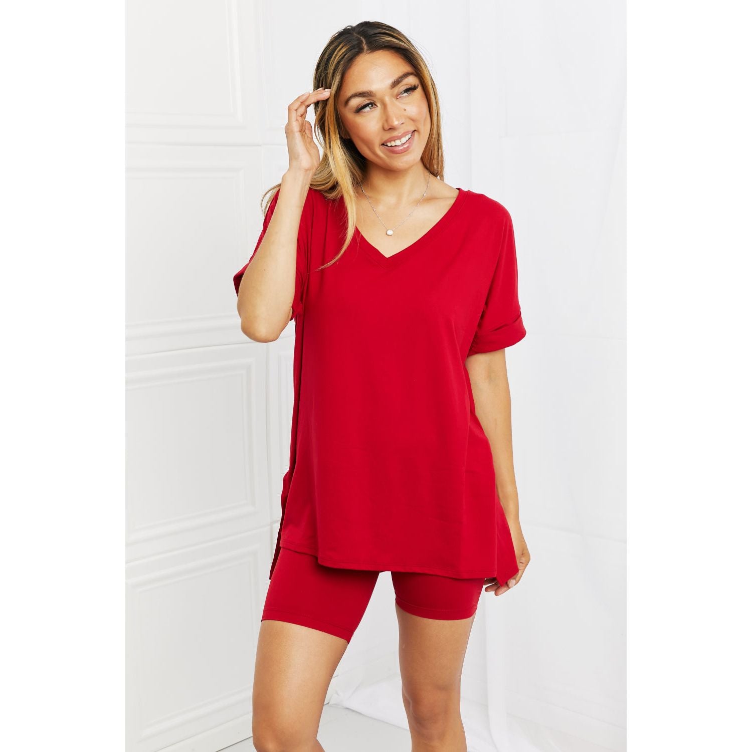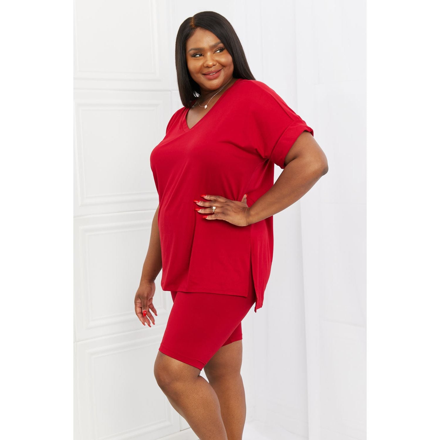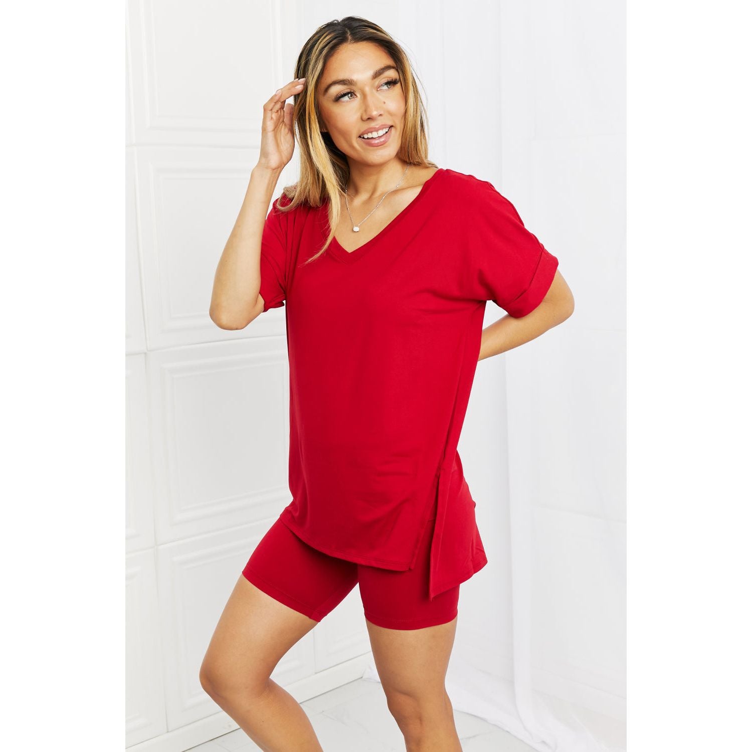 Quiet moments may be few and far between but comfort doesn't have to be! Your skin will love this set, which comes with a brushed DTY microfiber top and biker shorts. The high-low hem top allows for an easy front tuck to emphasize your waist, and the high rise biker shorts were made for comfort. Mix and match or wear together.