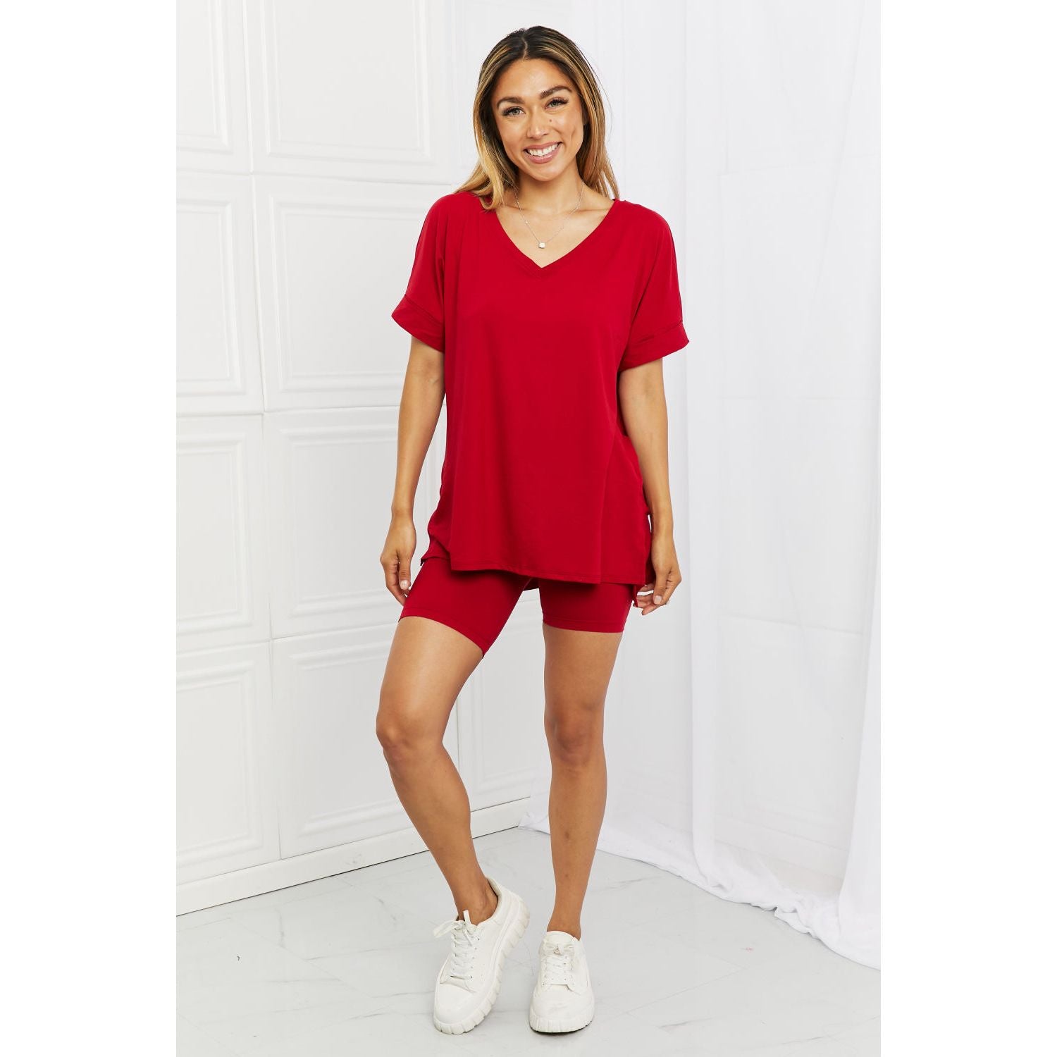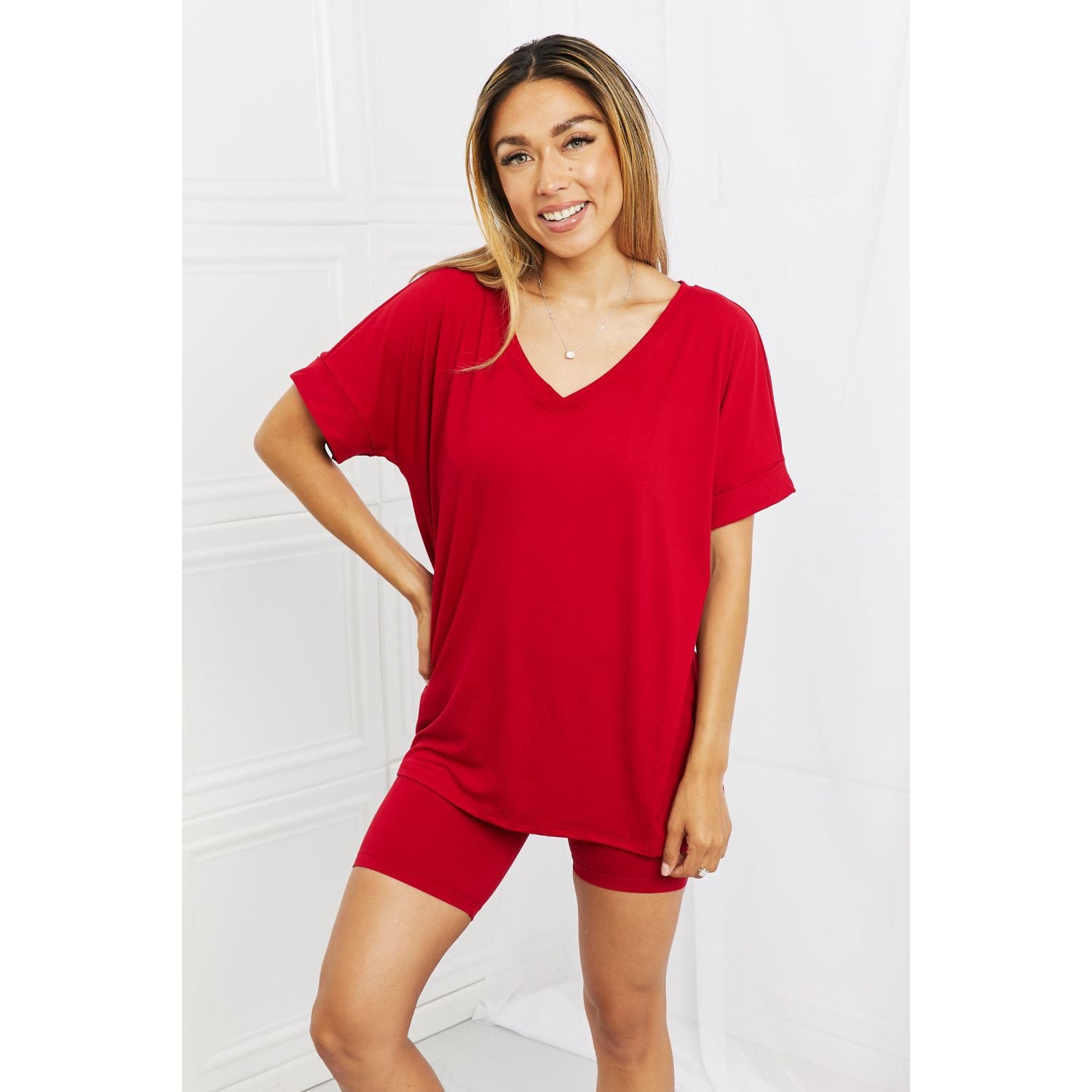 Zenana Full Size Quiet Moments Brushed Lounge Set in Burgundy