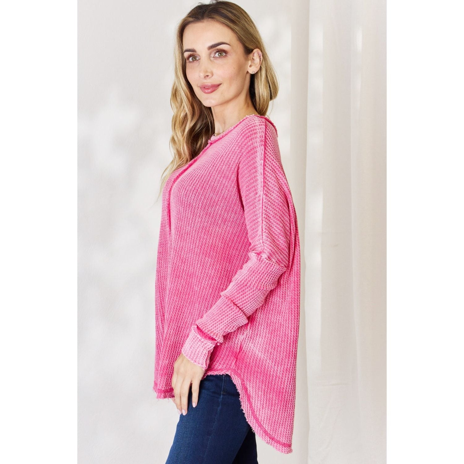 Zenana Oversized Washed Waffle Long Sleeve Top