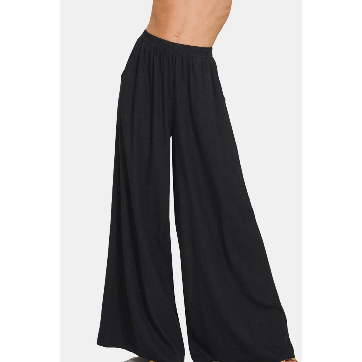 The Pleated Linen Blend Wide Leg Pants are a sophisticated and chic addition to your wardrobe. The pleated design adds a touch of elegance and movement to these wide-leg pants. Made from a linen blend fabric, they offer breathability and comfort for all-day wear. The wide-leg silhouette is both stylish and flattering, providing a relaxed yet polished look. Perfect for both casual and dressy occasions, these pants can be dressed up with heels or styled casually with sandals. Elevate your outfit with the timeless and versatile Pleated Linen Blend Wide Leg Pants for a fashionable and on-trend ensemble.