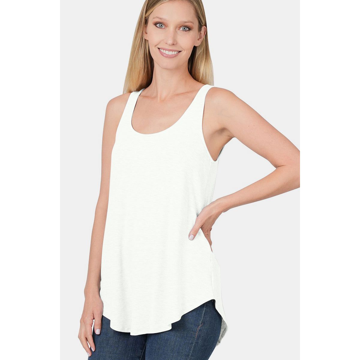 Zenana Round Neck Curved Hem Tank