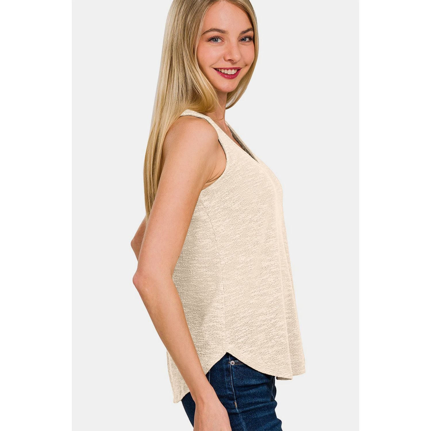 The V-Neck Curved Hem Tank is a versatile and essential piece for any wardrobe. Featuring a flattering V-neckline and a stylish curved hem, this tank top offers a modern and chic look. Perfect for layering or wearing on its own, this top can be dressed up or down for various occasions. The soft and comfortable fabric ensures all-day comfort while maintaining a sophisticated style. Elevate your outfit with the minimalist and timeless appeal of the V-Neck Curved Hem Tank for a versatile and classic look.