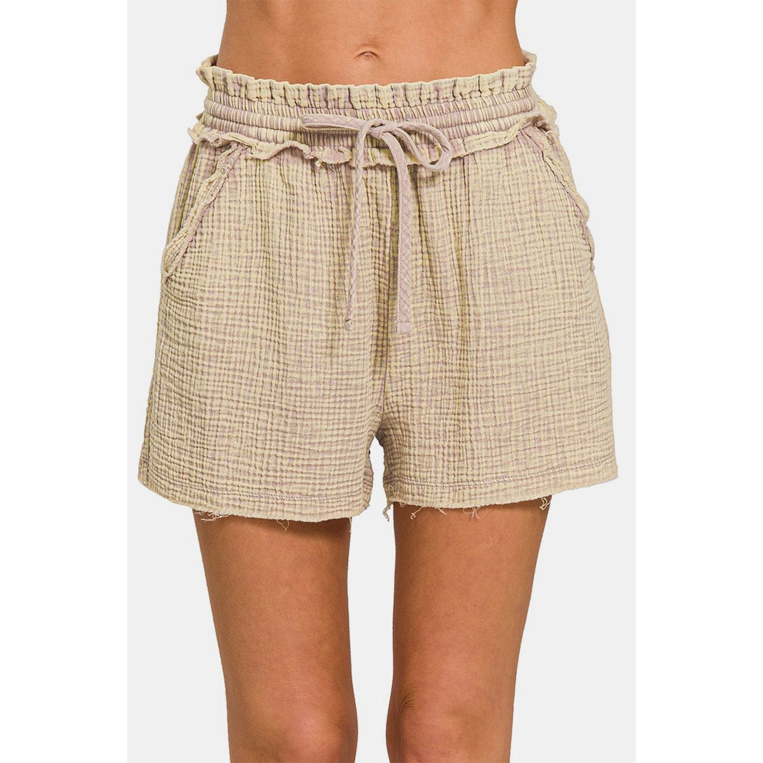 The Washed Frayed Hem Drawstring Shorts are a versatile addition to your summer wardrobe. With a relaxed and casual style, these shorts are perfect for everyday wear. The frayed hem adds a touch of edgy detail to the design. The drawstring waist allows for a comfortable and adjustable fit. Pair these shorts with a tank top and sneakers for a laid-back and effortless look. Whether you're running errands or heading to the beach, these shorts are a chic and practical choice for any summer outing.
