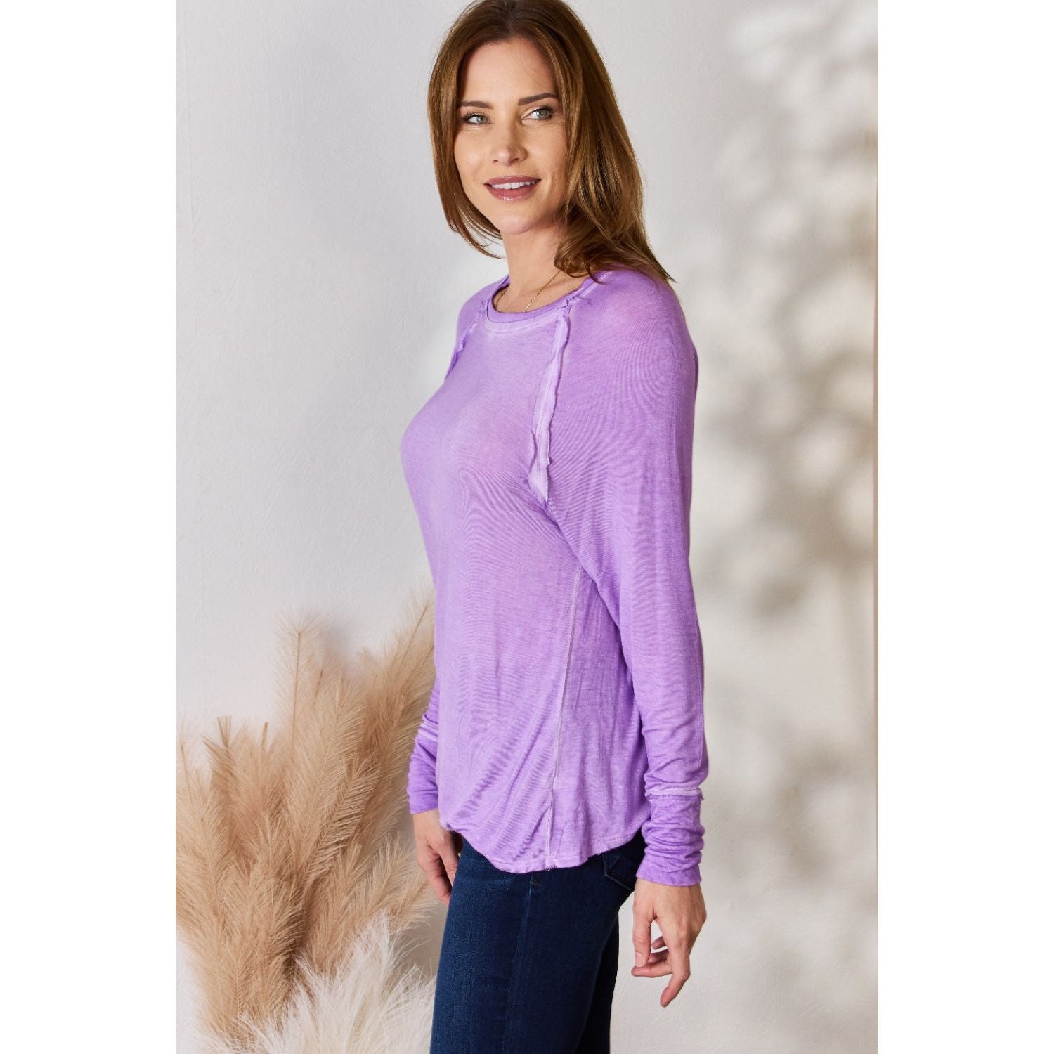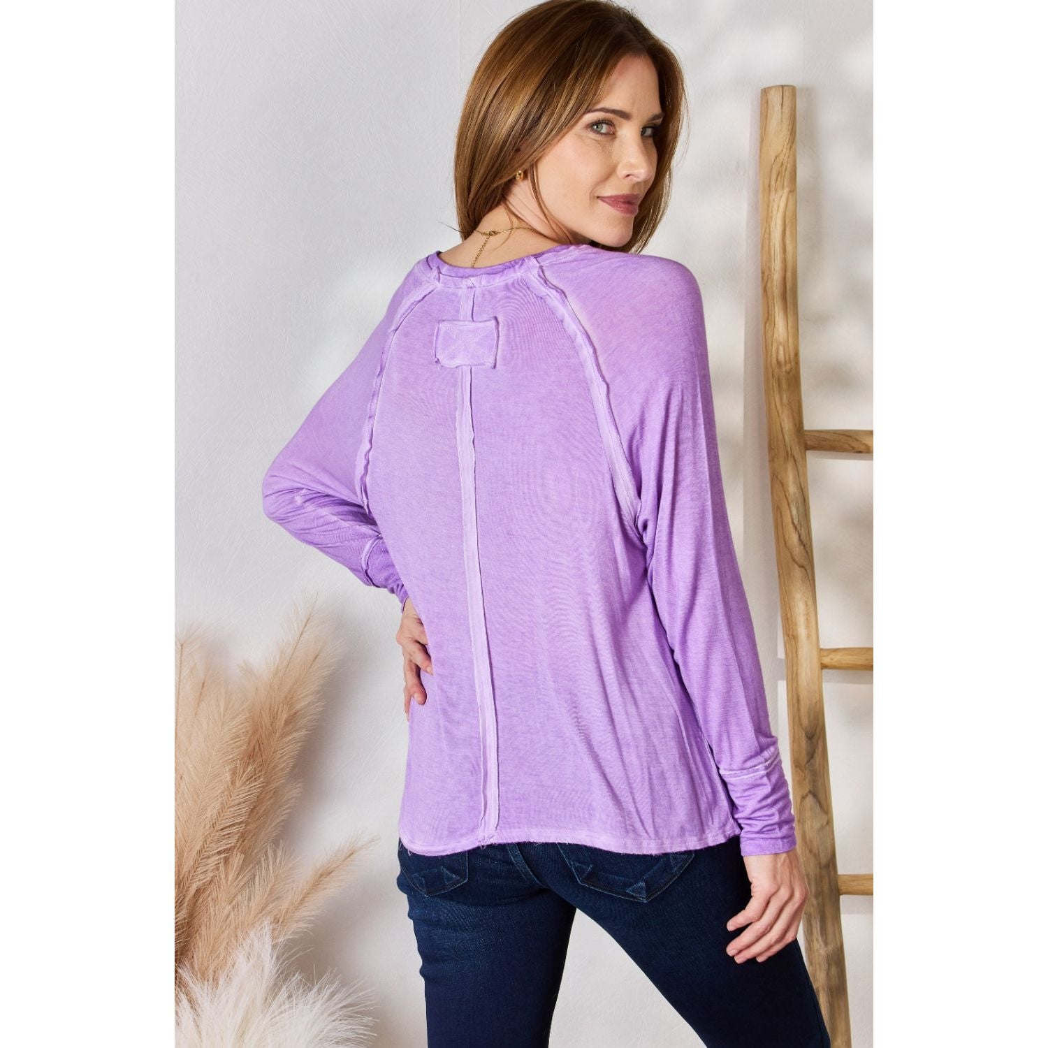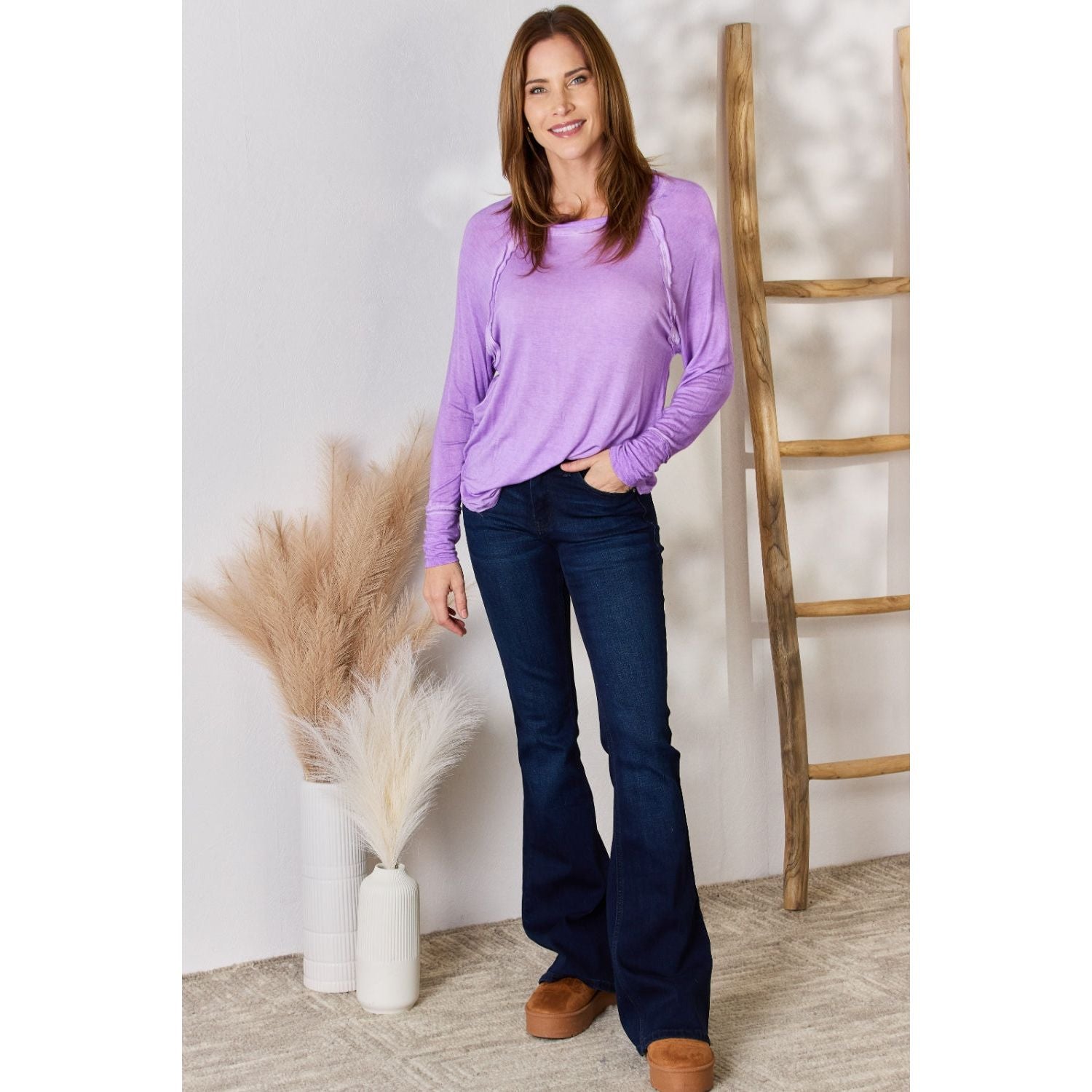 Zenana Washed Scoop Neck Long Sleeve Blouse